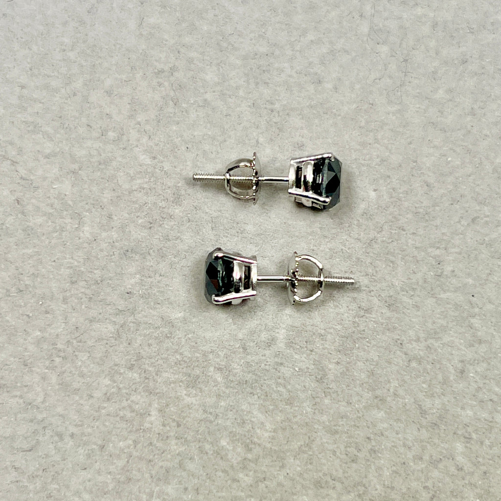EGL USA Certified Genuine Black Diamond Stud Earrings 2.95 Cts Round Brilliant Platinum Screwbacks