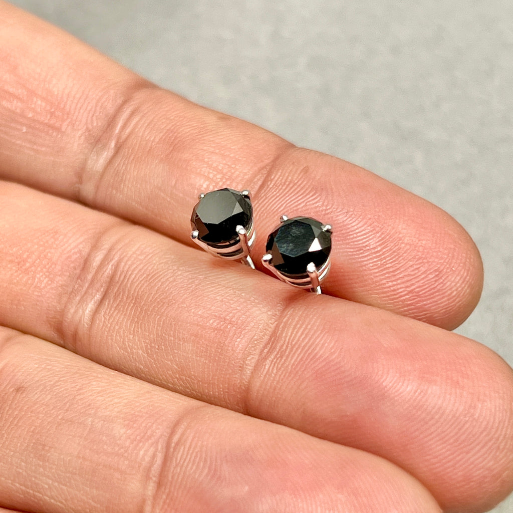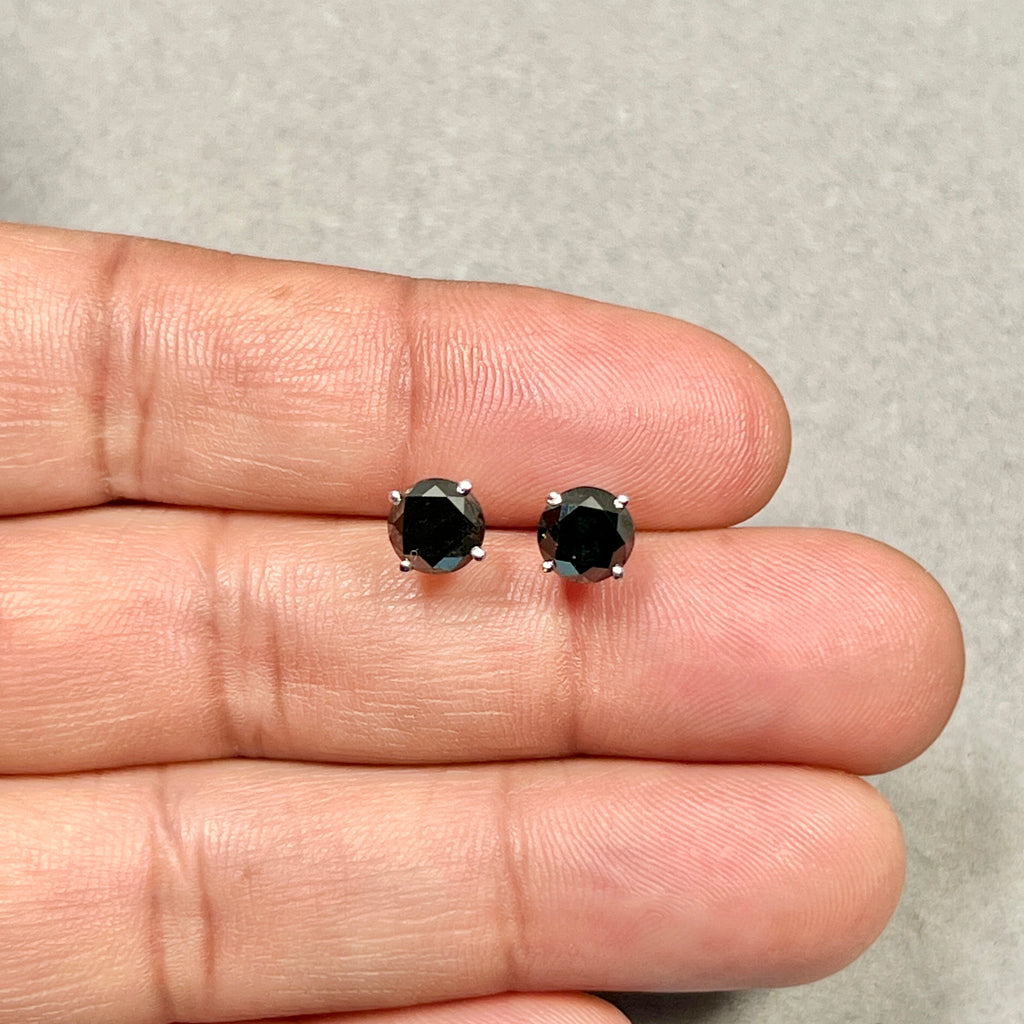 These astounding EGL USA Certified Genuine Black Diamond Stud Earrings feature striking round brilliant black diamonds, each expertly prong set in luxurious platinum. With an approximate total black diamond weight of 2.95 carats, these earrings showcase AA quality genuine black diamonds known for their bold beauty and timeless appeal. Designed with secure screwback posts, these classic studs offer both comfort and peace of mind. The black diamonds are EGL USA certified, with individual appraised values of $785 and $845 respectively (appraisal applies to the diamonds only, not the platinum). Elegant and versatile, these earrings are crafted to complement every look effortlessly.