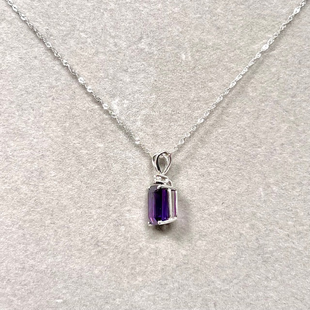 Emerald Cut Amethyst Pendant 14K White Gold – 10x8mm AAA Amethyst with 0.03 Ct Diamond Solitaire Necklace – February Birthstone Jewelry Gift