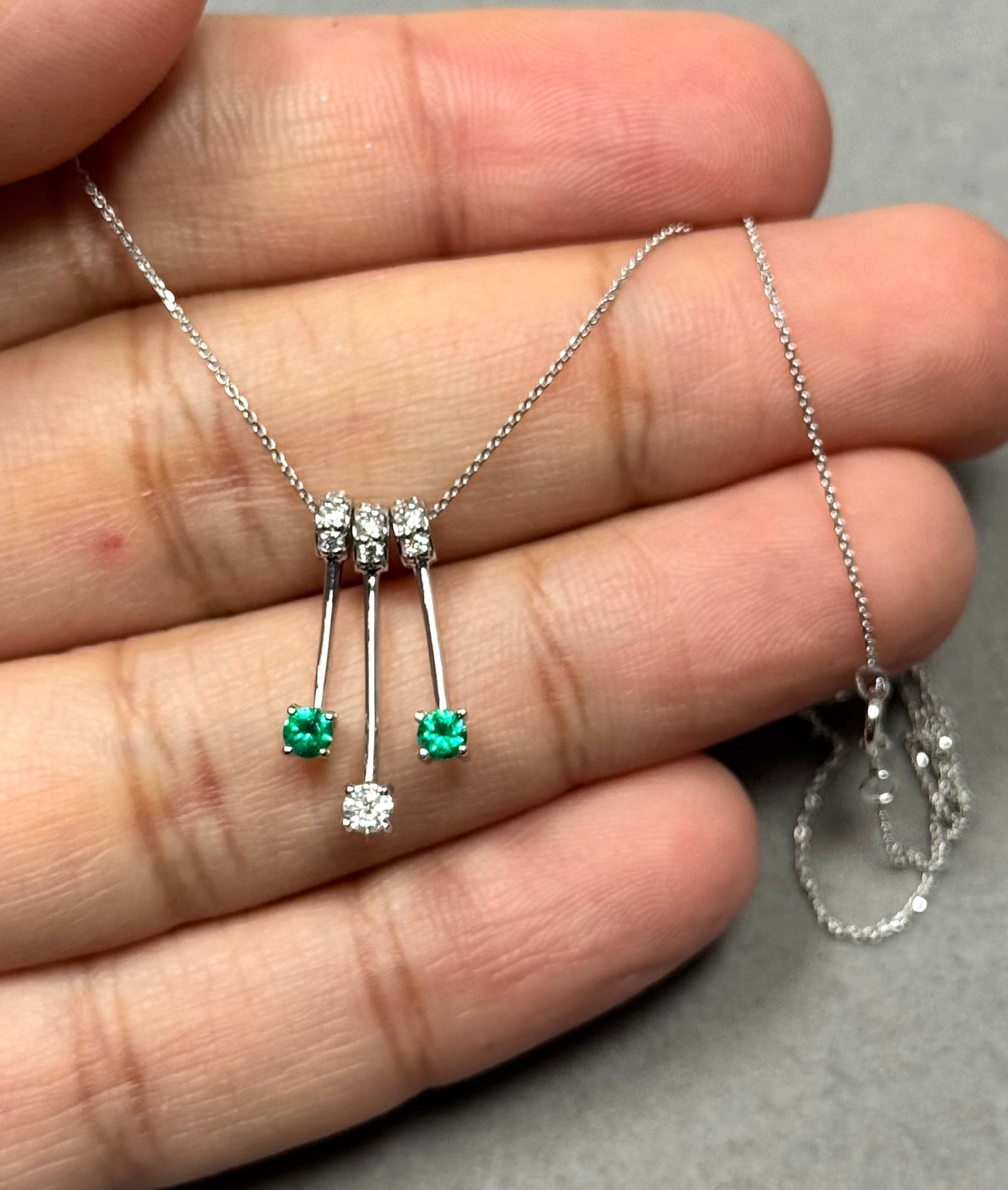 Emerald & Diamond Necklace 14K White Gold | 0.18 ct Emerald + 0.10 ct Diamonds | Natural Gemstone Pendant with 18" Chain