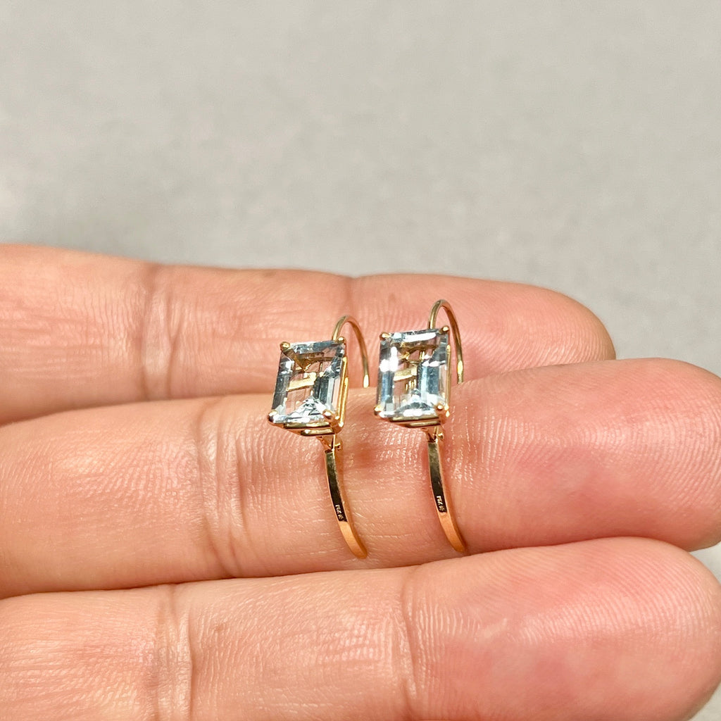 Exploring 2.80 CTS 14K Gold aquamarine studs women favour with emerald cut geometry and sculptural prong rhythm