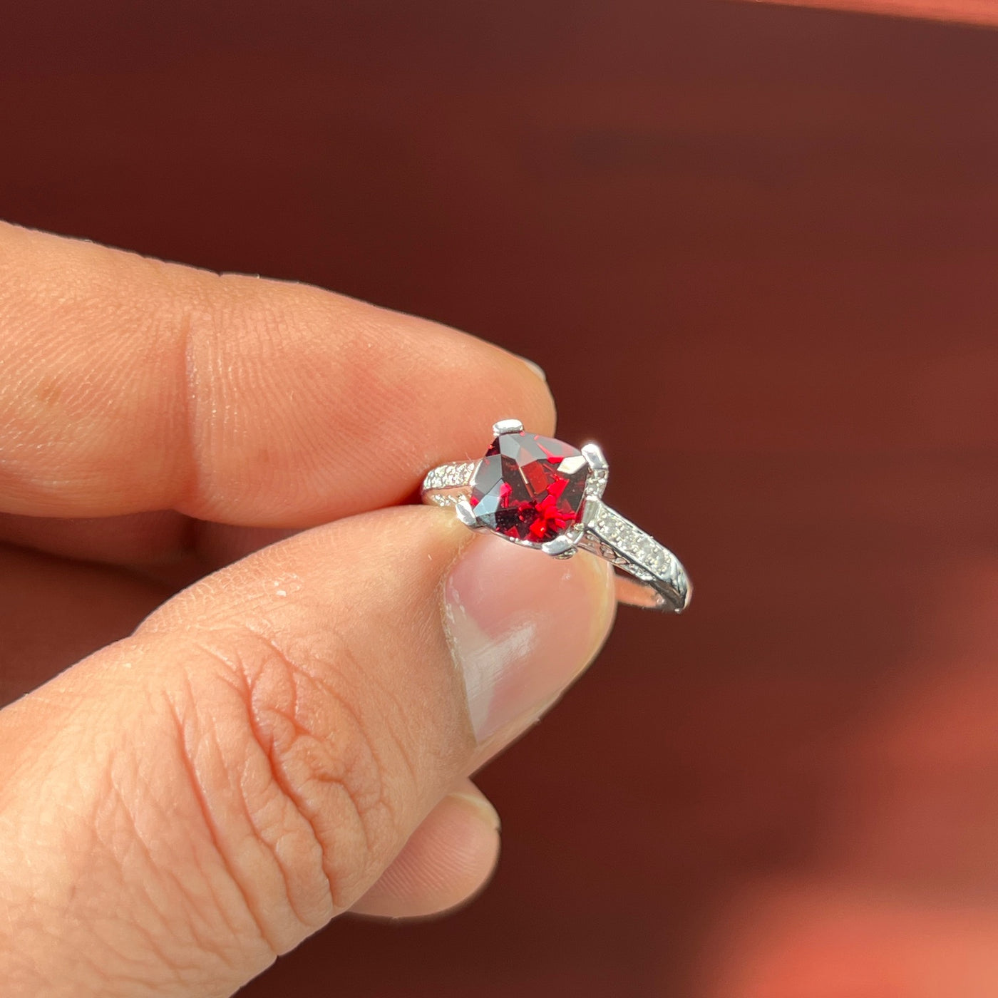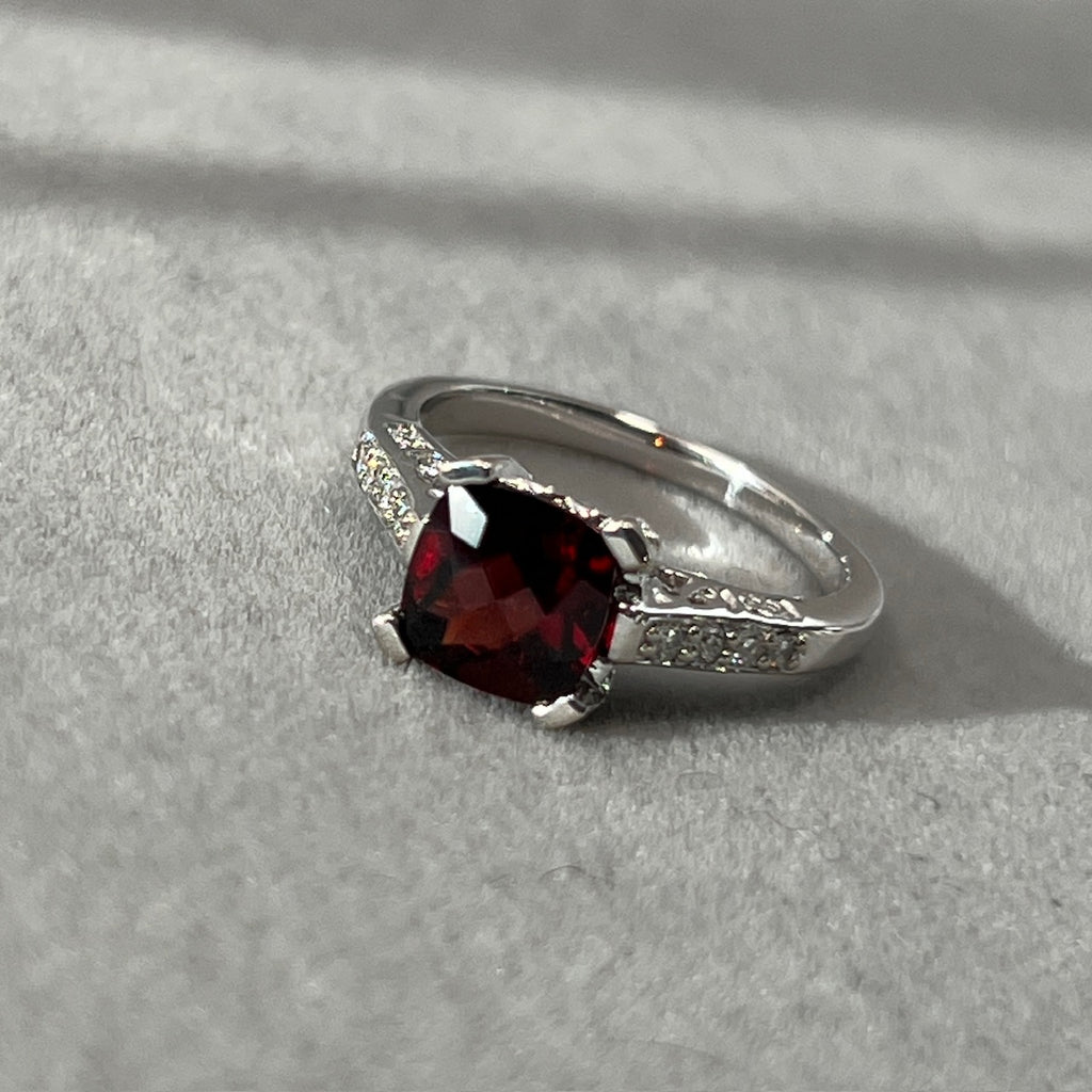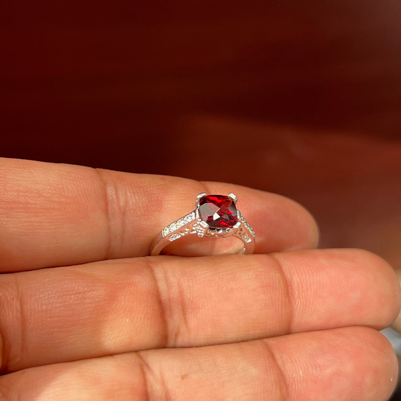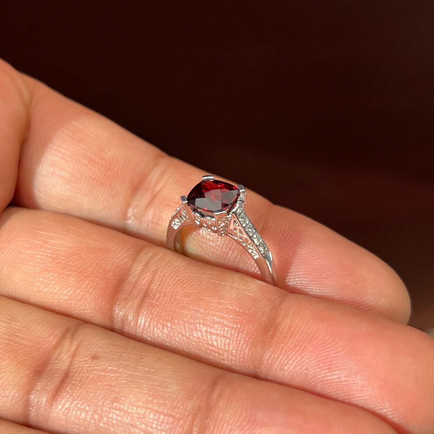 Fashion Ring – Diamond & Garnet Ring in 14K White Gold | Elegant Statement Jewelry for Women Ring Size 6.5