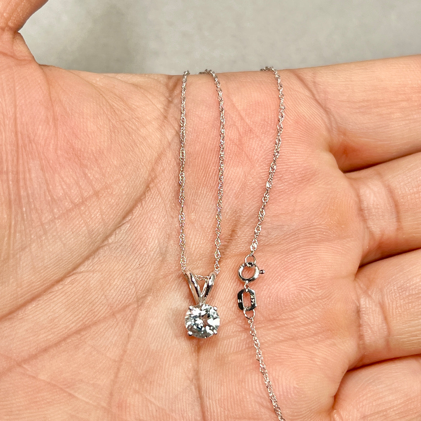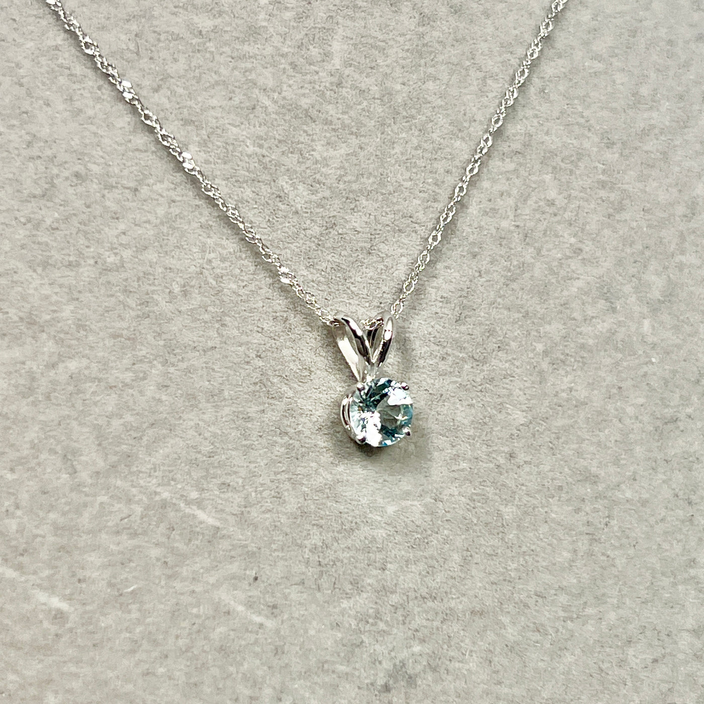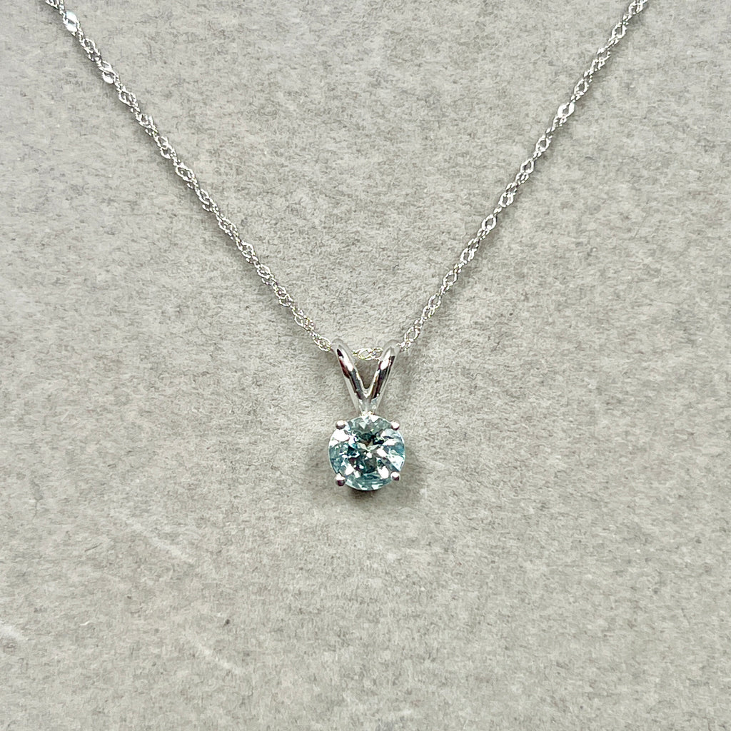 Fine Setting 0.69–0.95 Ct 18K WG Aquamarine Pendant featuring Patina Blue hue and classic prong form