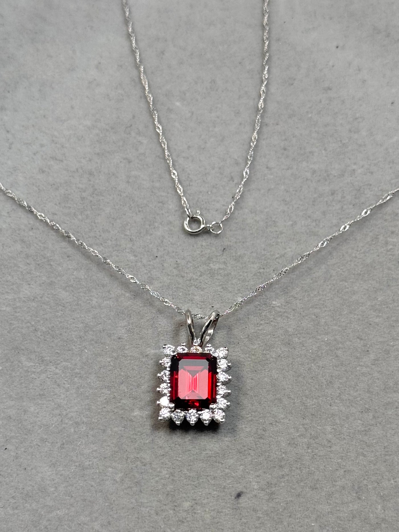 Garnet Diamond Cluster Pendant 14K White Gold | Emerald Cut AAA Garnet 4.12 Cts, 0.54 Ct Diamond Necklace Gift