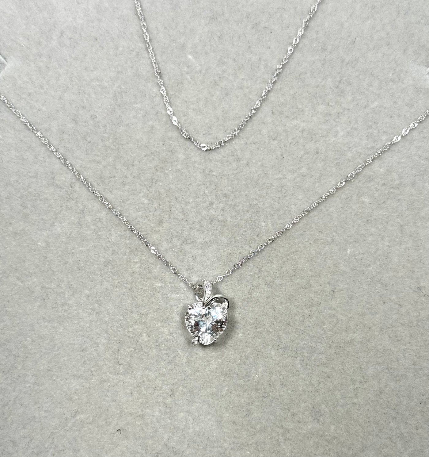 Heart White Topaz Pendant 14K White Gold | 9mm Topaz + Diamond Accent | 3.00 ct Natural Gemstone Necklace with 18” Chain
