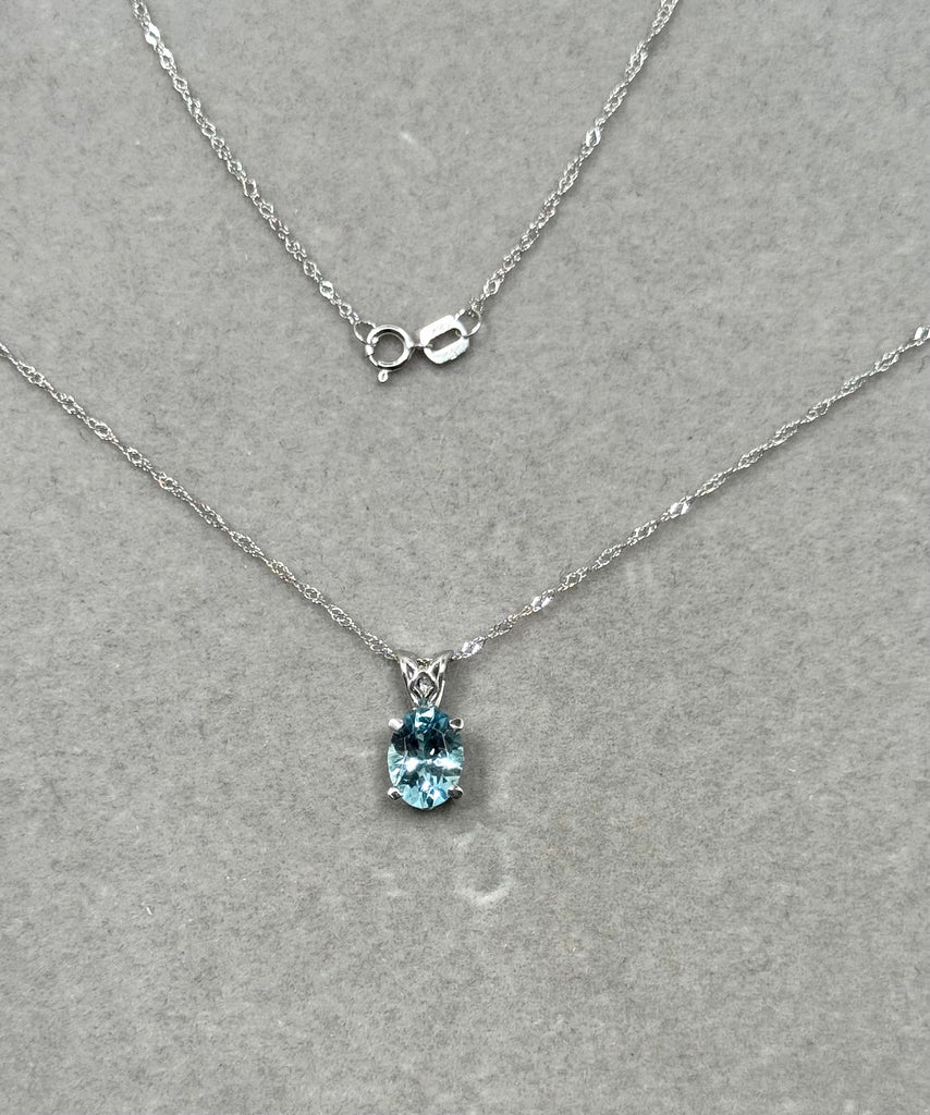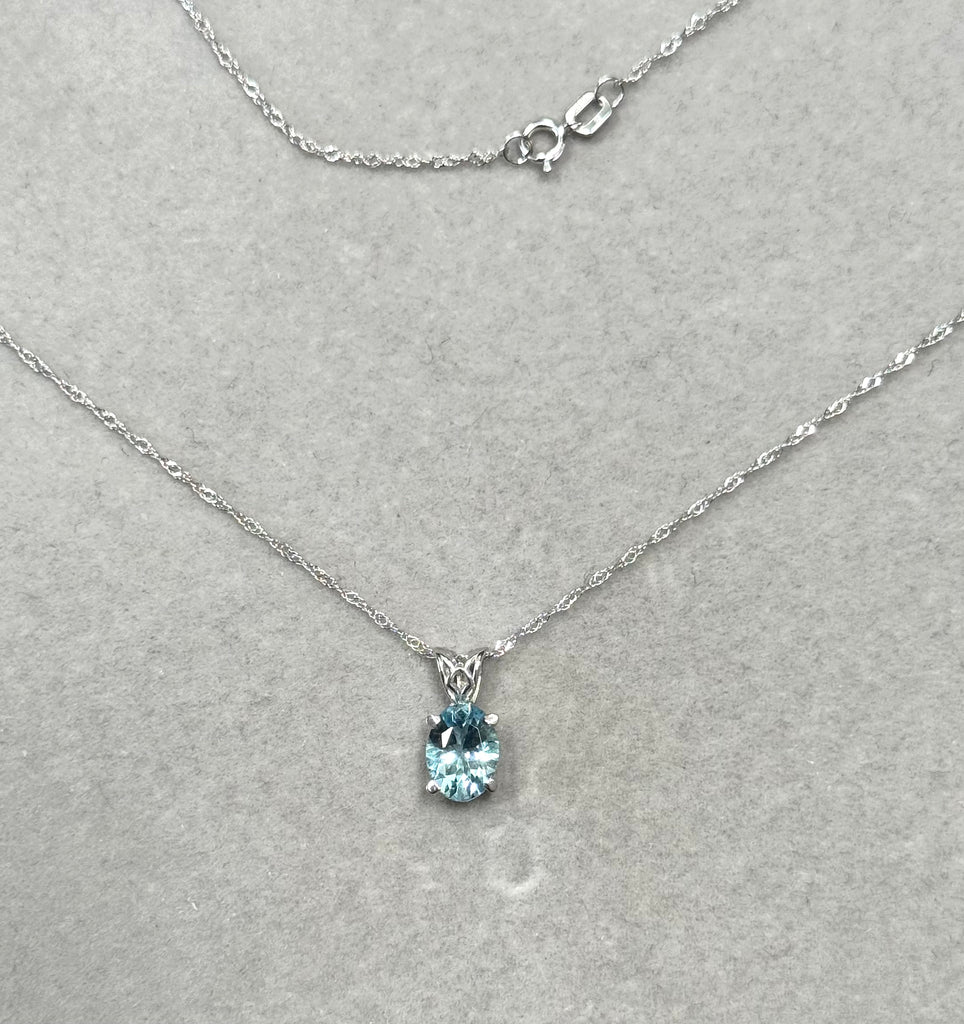 Heirloom Aquamarine Pendant | 8x6 mm Oval Scroll Design in Solid Platinum