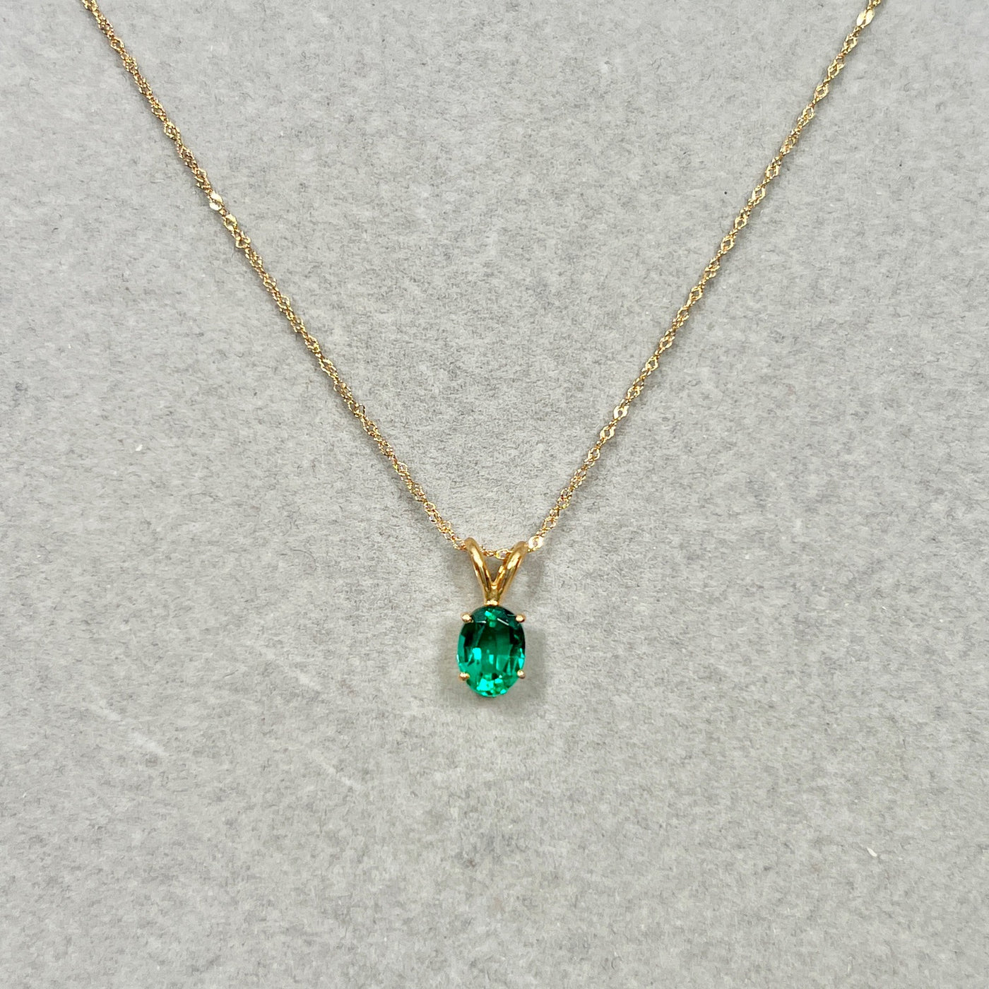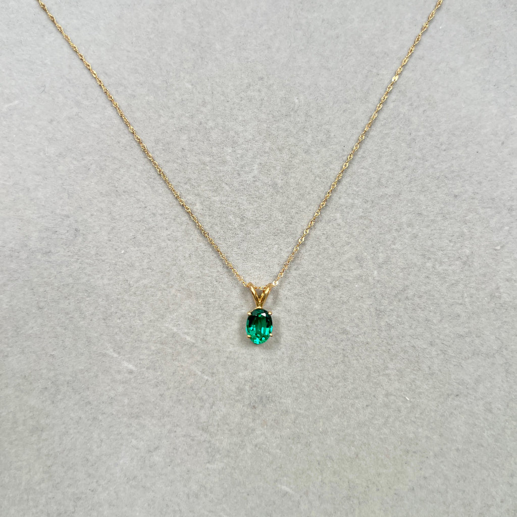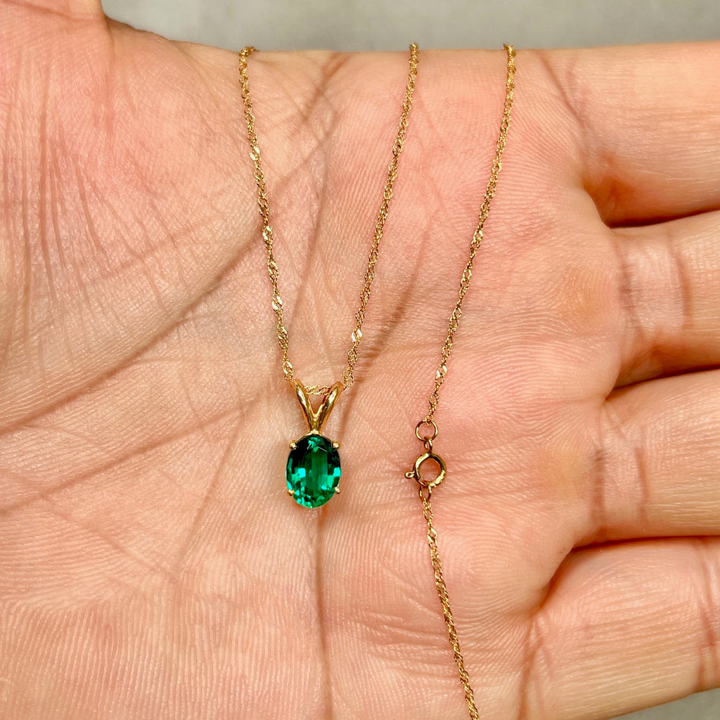 Lab Created Emerald Solitaire Pendant 8x6mm 0.98–1.28 Ct | 14K Yellow Gold Oval Emerald Necklace | AAA Green Emerald Pendant
