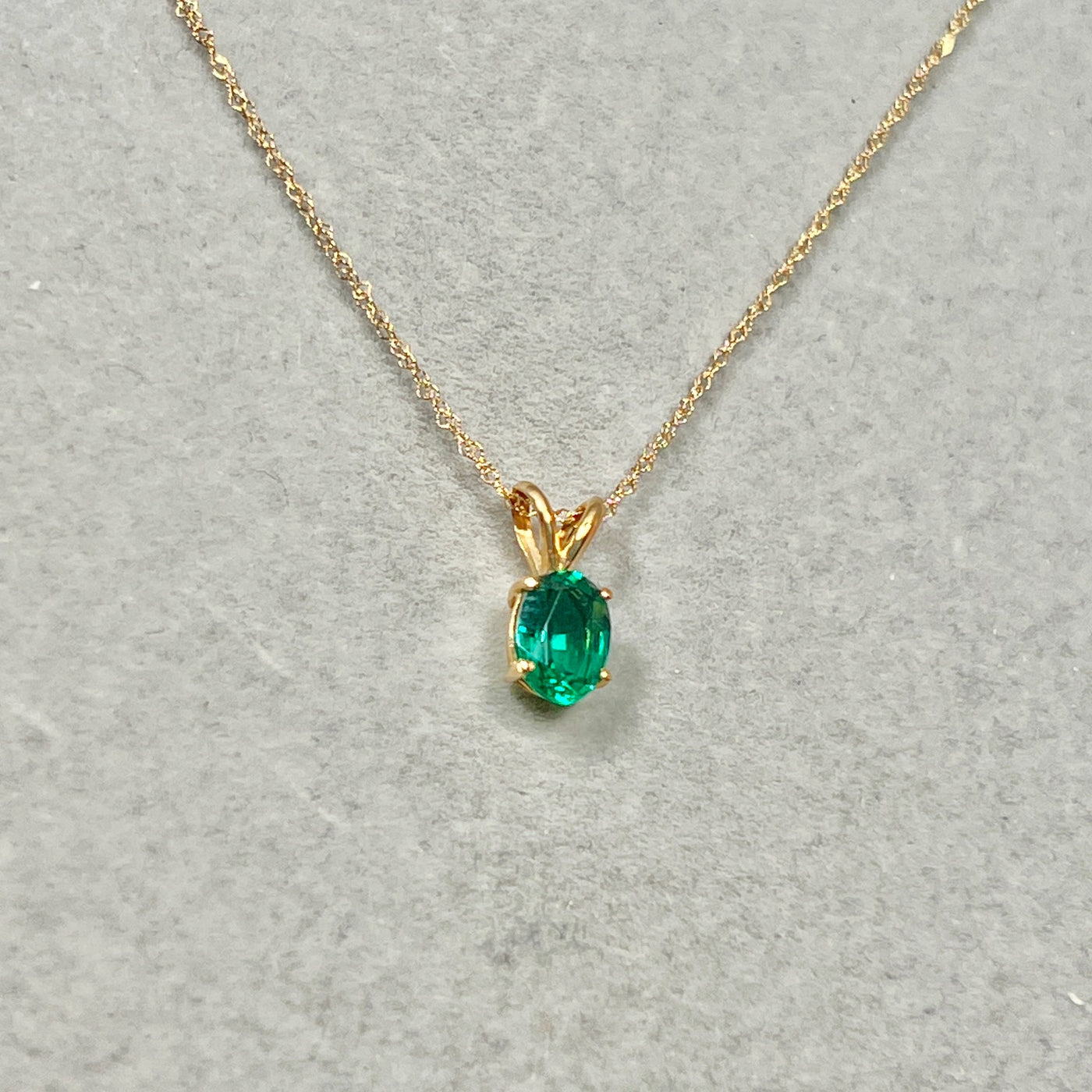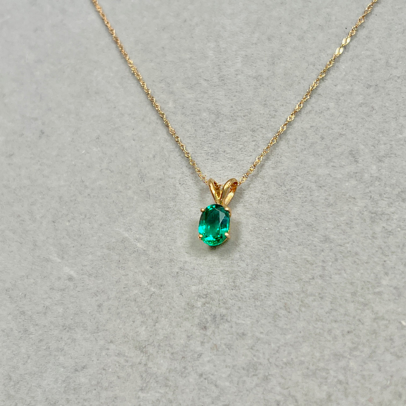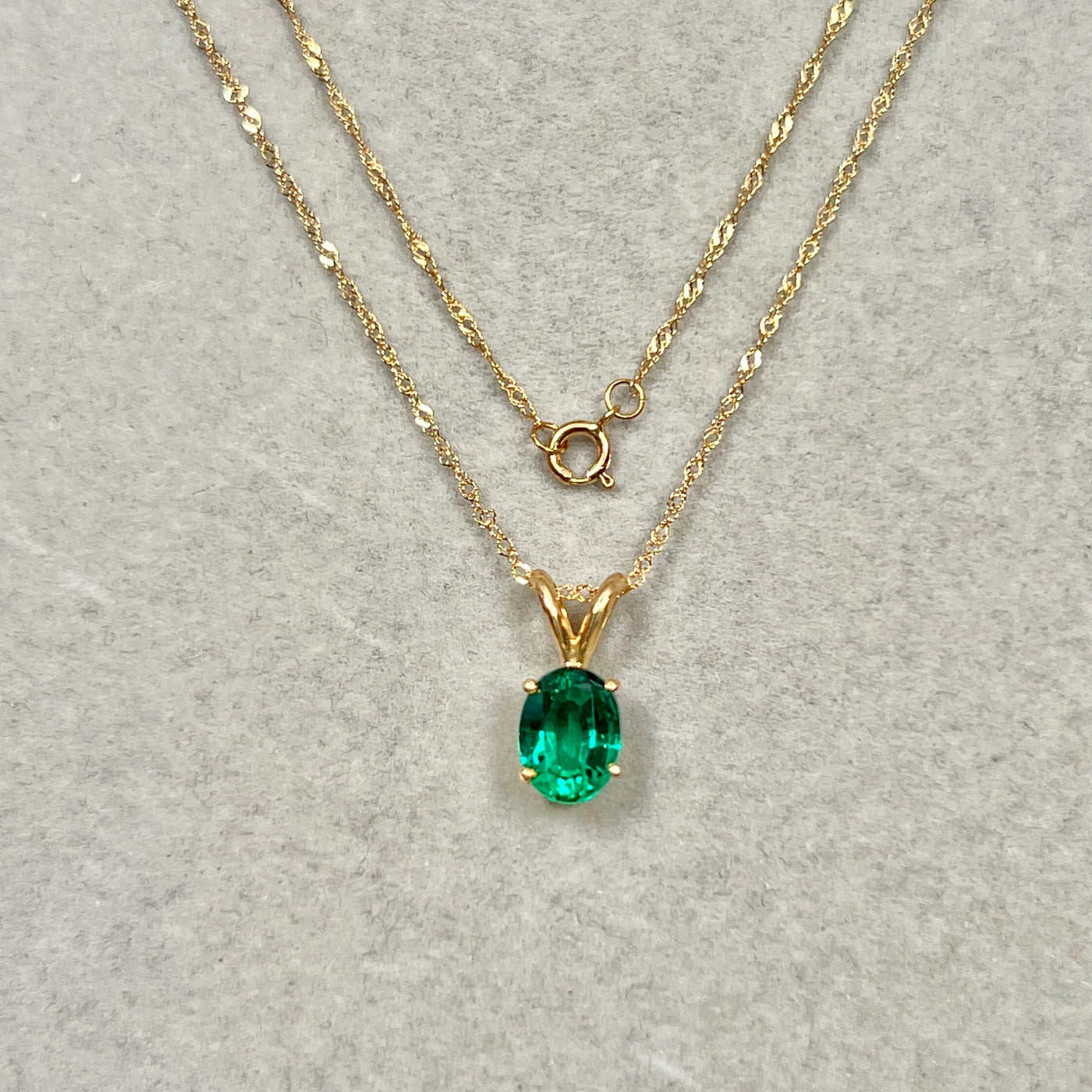 Lab Created Emerald Solitaire Pendant 8x6mm 0.98–1.28 Ct | 14K Yellow Gold Oval Emerald Necklace | AAA Green Emerald Pendant