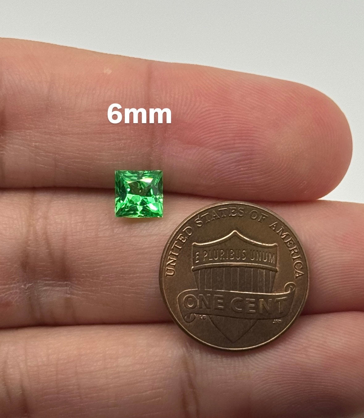 Lab Green Sapphire Princess Cut | Square 5mm–7mm Gemstone | AAA Quality Loose Stone for Rings, Earrings & Fine Jewelry Making