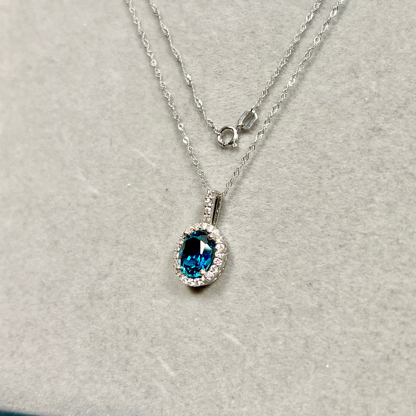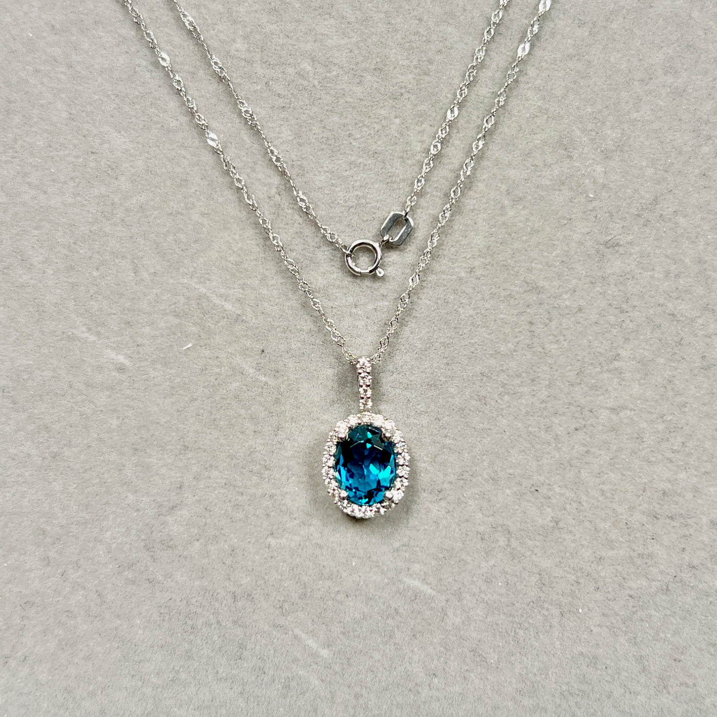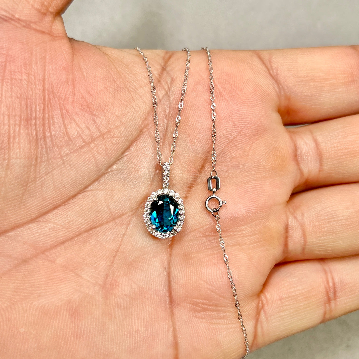 With an impressive London Blue Topaz weight of approximately 6.24 carats and 0.29 carats of natural diamonds, this pendant delivers exceptional brilliance and luxury. Finished with an 18-inch 14K white gold Singapore chain, it is ready to wear and perfect for elevating both everyday looks and formal attire.