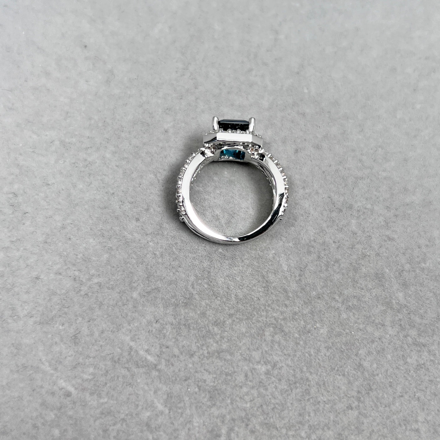 London Blue Topaz Emerald Cut 9x7mm AAA Ring 14K White Gold | 0.70ct Diamond Halo | Statement Fashion Ring | Gift for Her