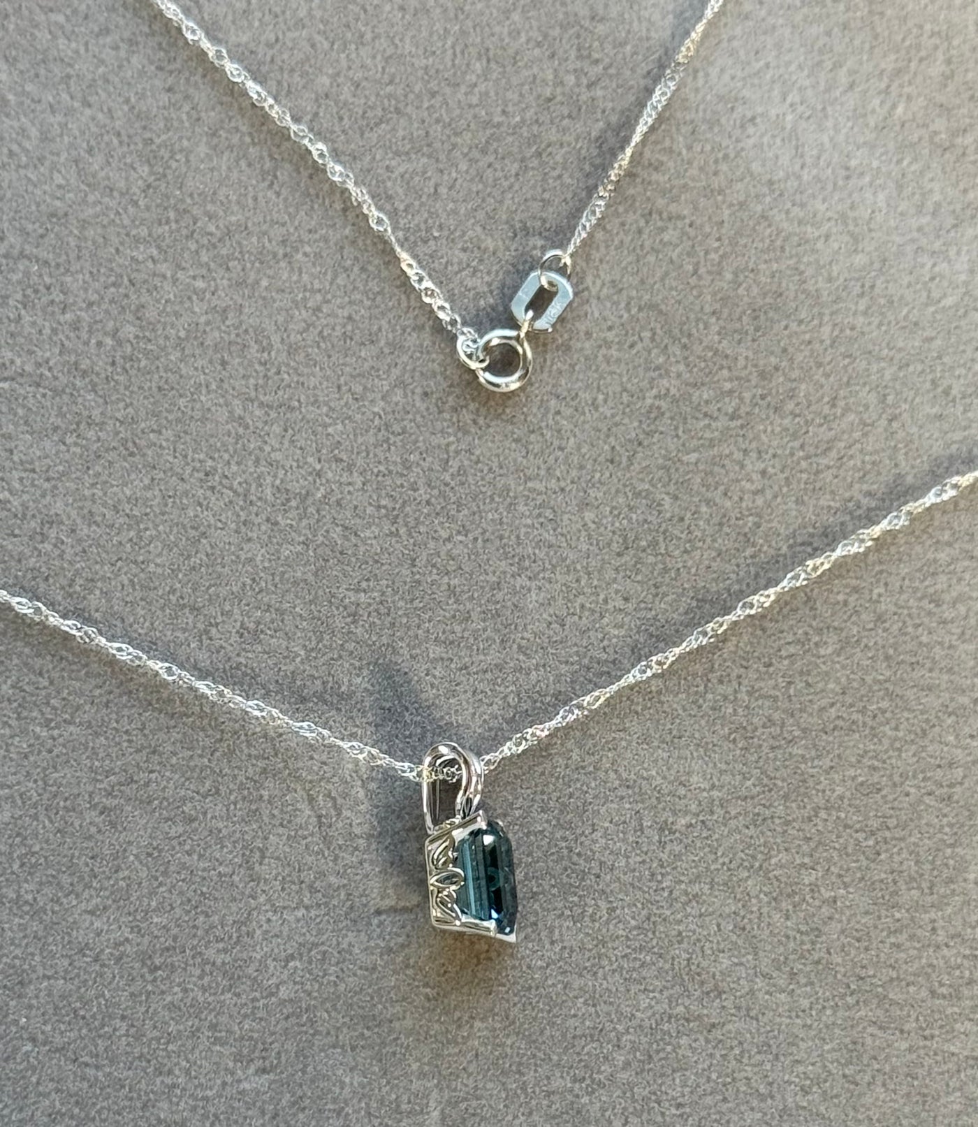 London Blue Topaz Pendant, Emerald Cut Blue Topaz Necklace, Solitaire Topaz Pendant in 18K White Gold, December Birthstone Jewelry
