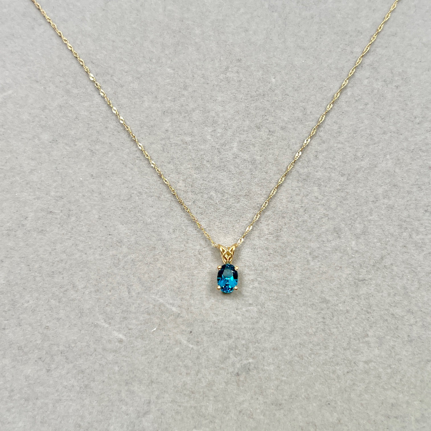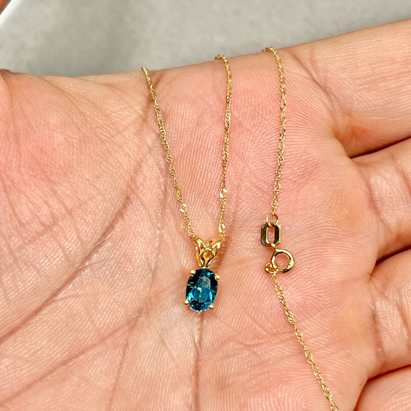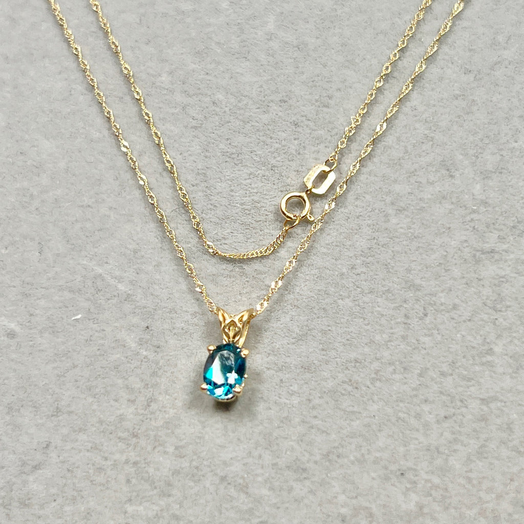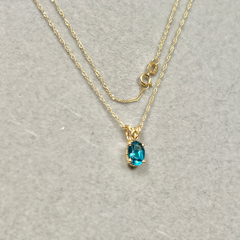 London Blue Topaz Scroll Pendant 0.81 Ct | 18K Yellow Gold Oval Topaz Necklace | AAA Dark Blue Topaz Pendant with Chain