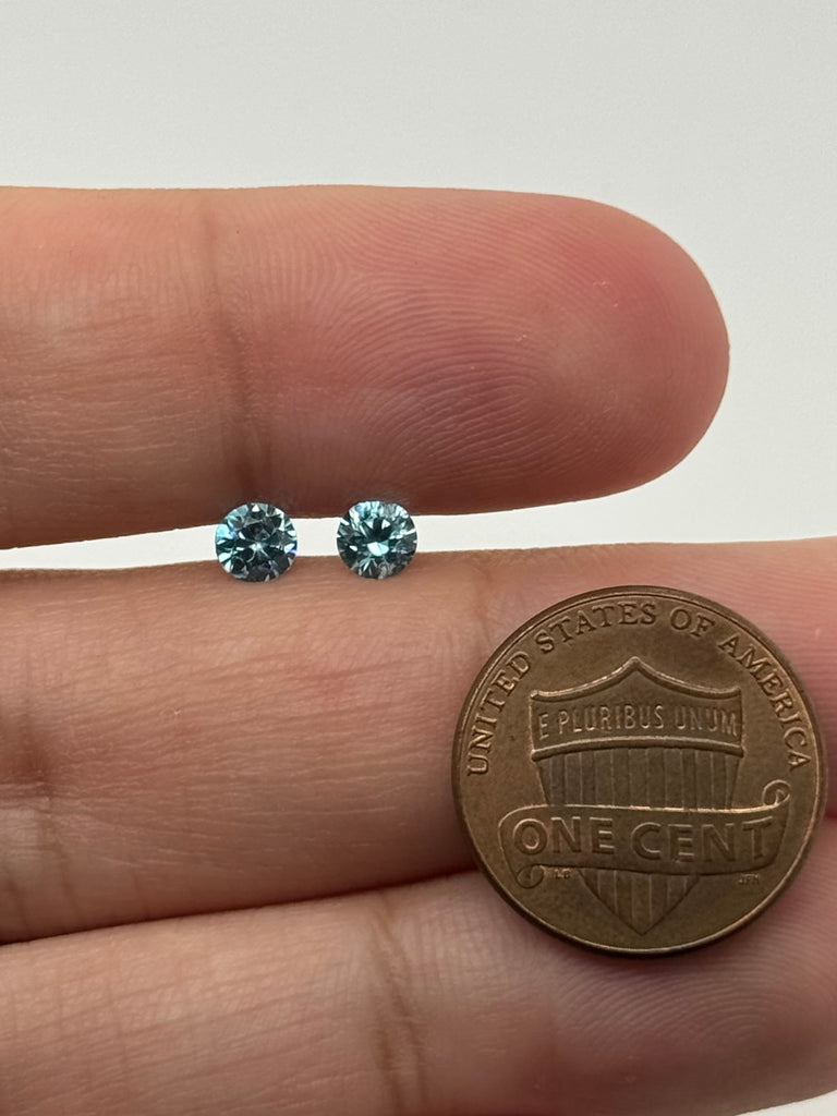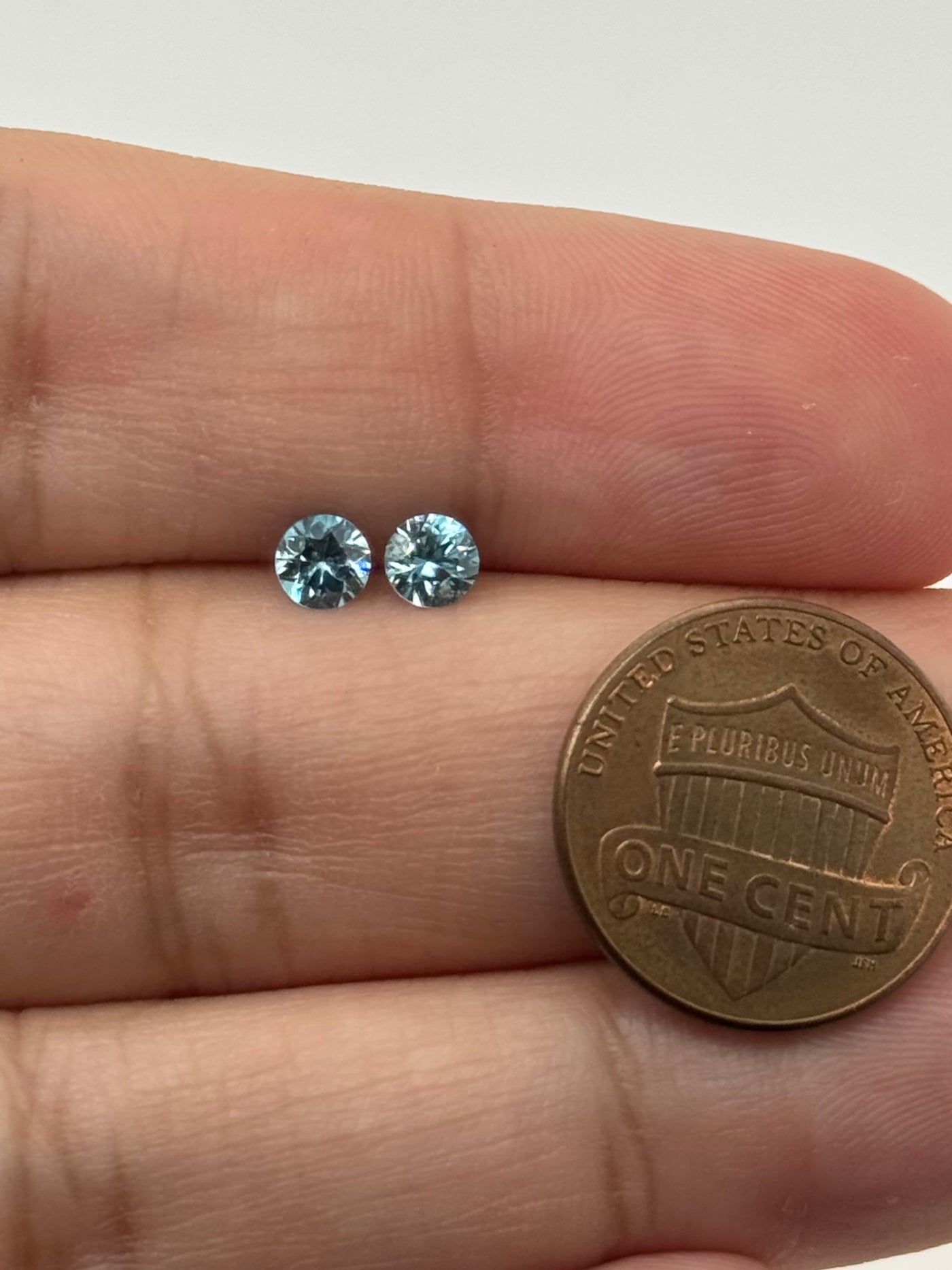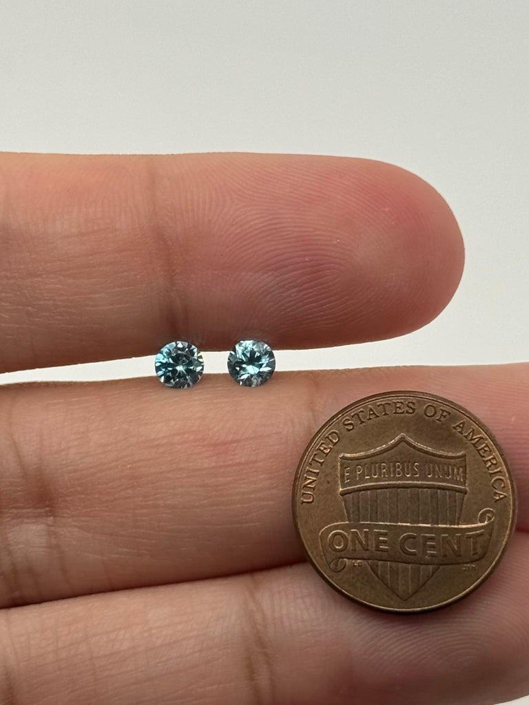Natural Blue Zircon Round Pair 0.82 CT Total (1 Pair) | 4.3mm Calibrated Size, Brilliant Luster | Loose Gemstone for Stud Earrings