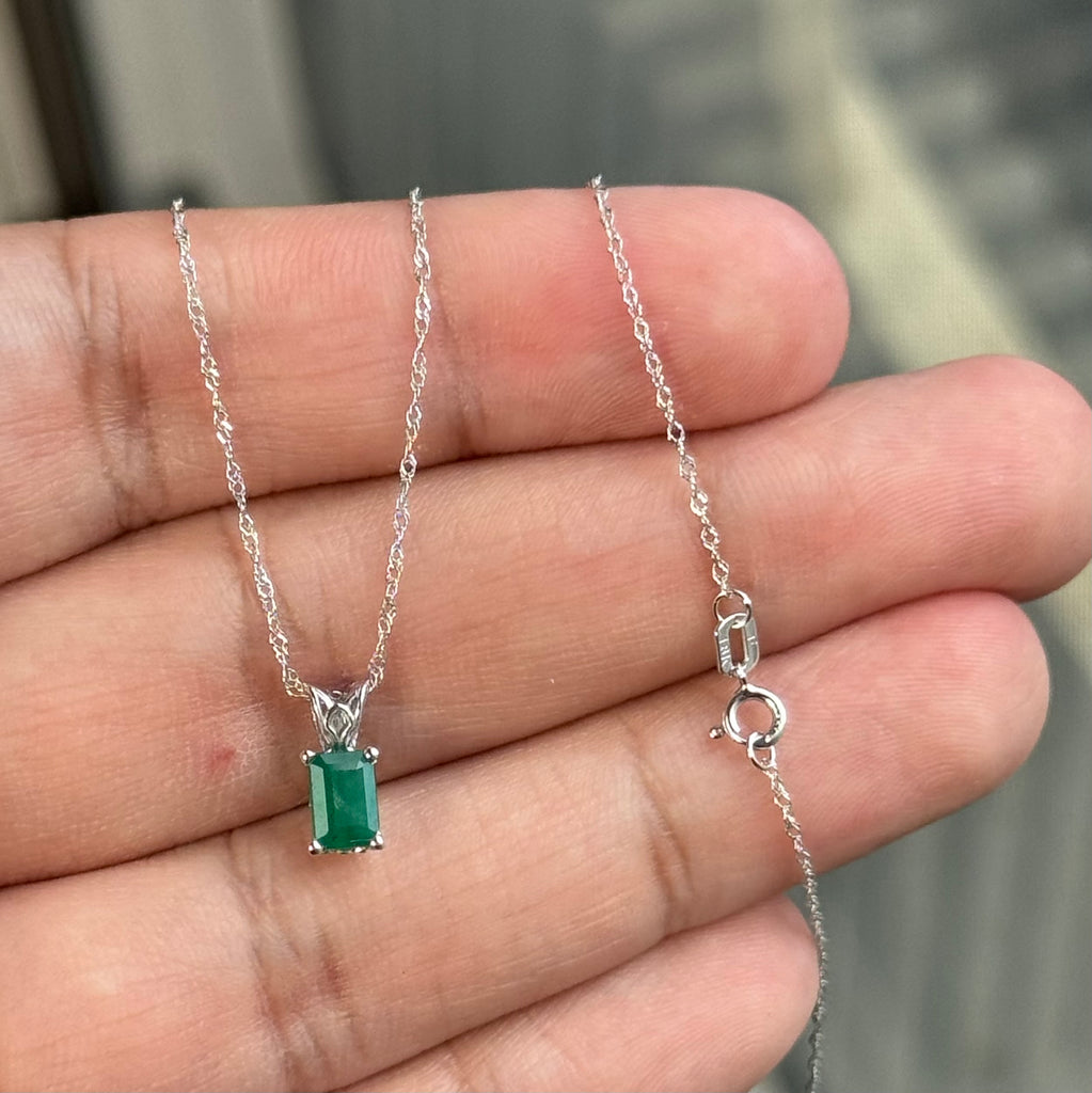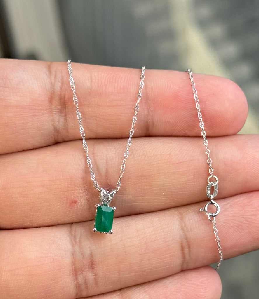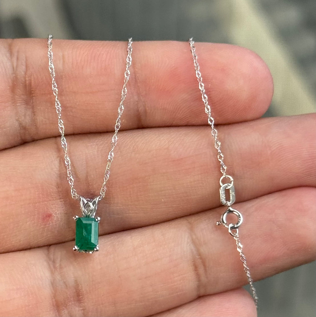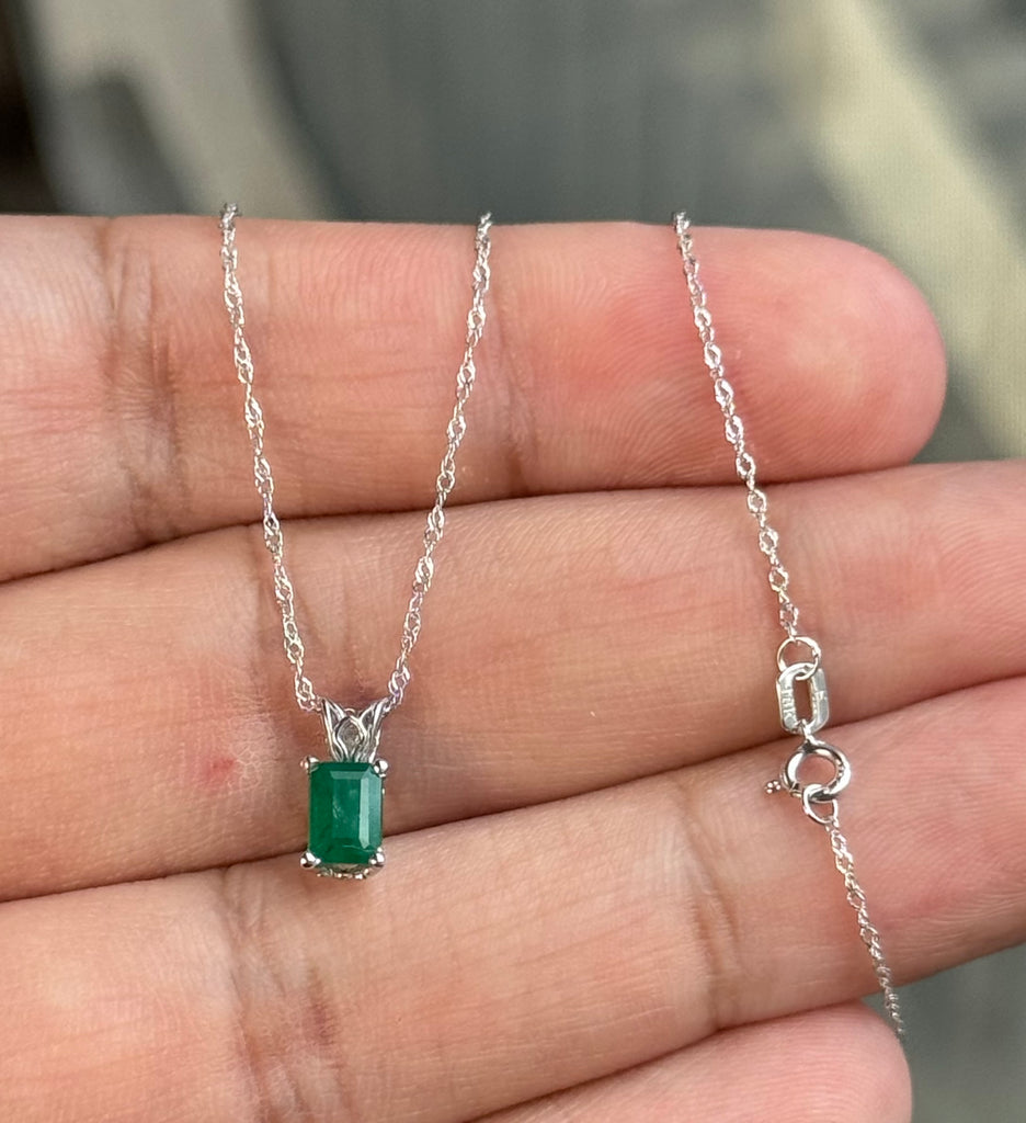 Natural Emerald Pendant 6x4mm – AA Grade Emerald Cut Scroll Solitaire in Platinum – May Birthstone Necklace – Dainty Necklace