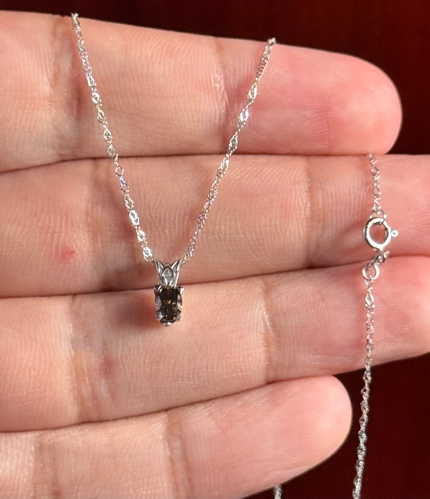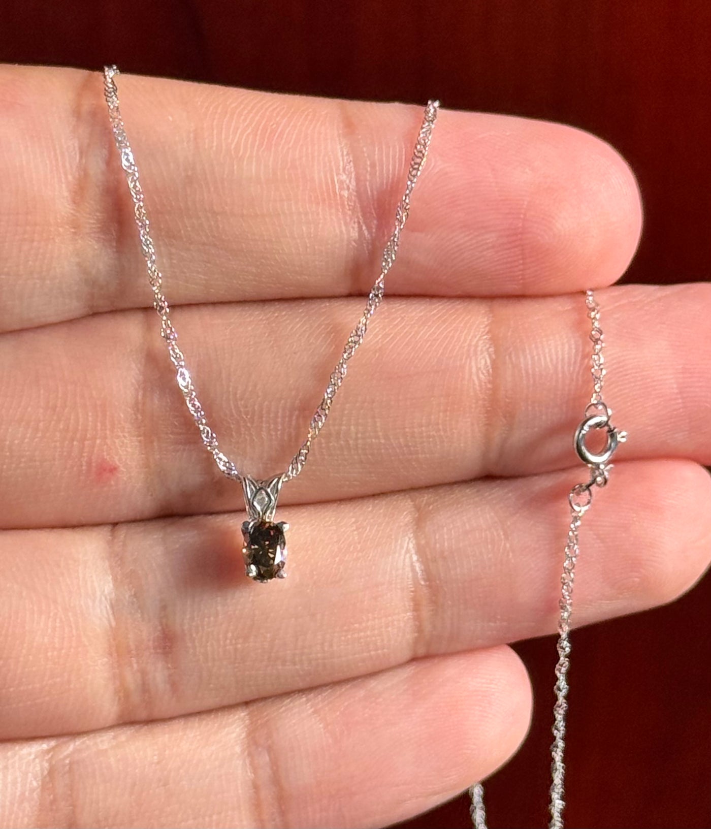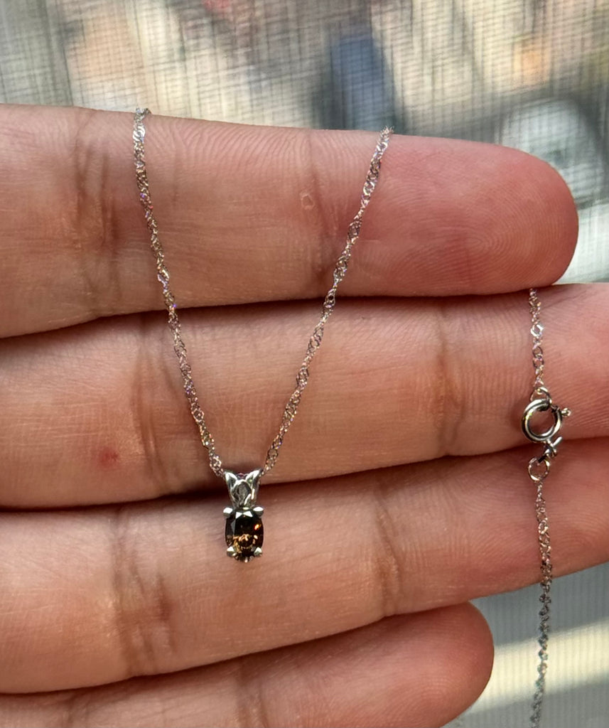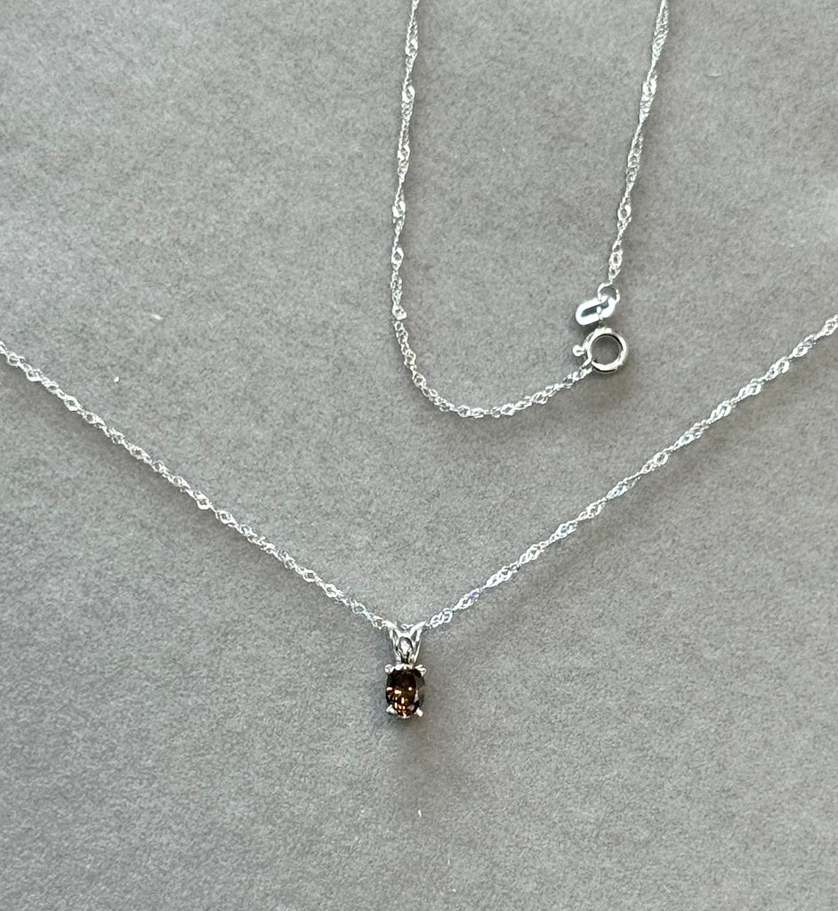 Natural Fancy Dark Orangey‑Brown Diamond Pendant 0.33 Ct SI1 Oval 4.9x3.6 mm, Platinum Scroll Solitaire, 18" 18K White Gold Singapore Chain