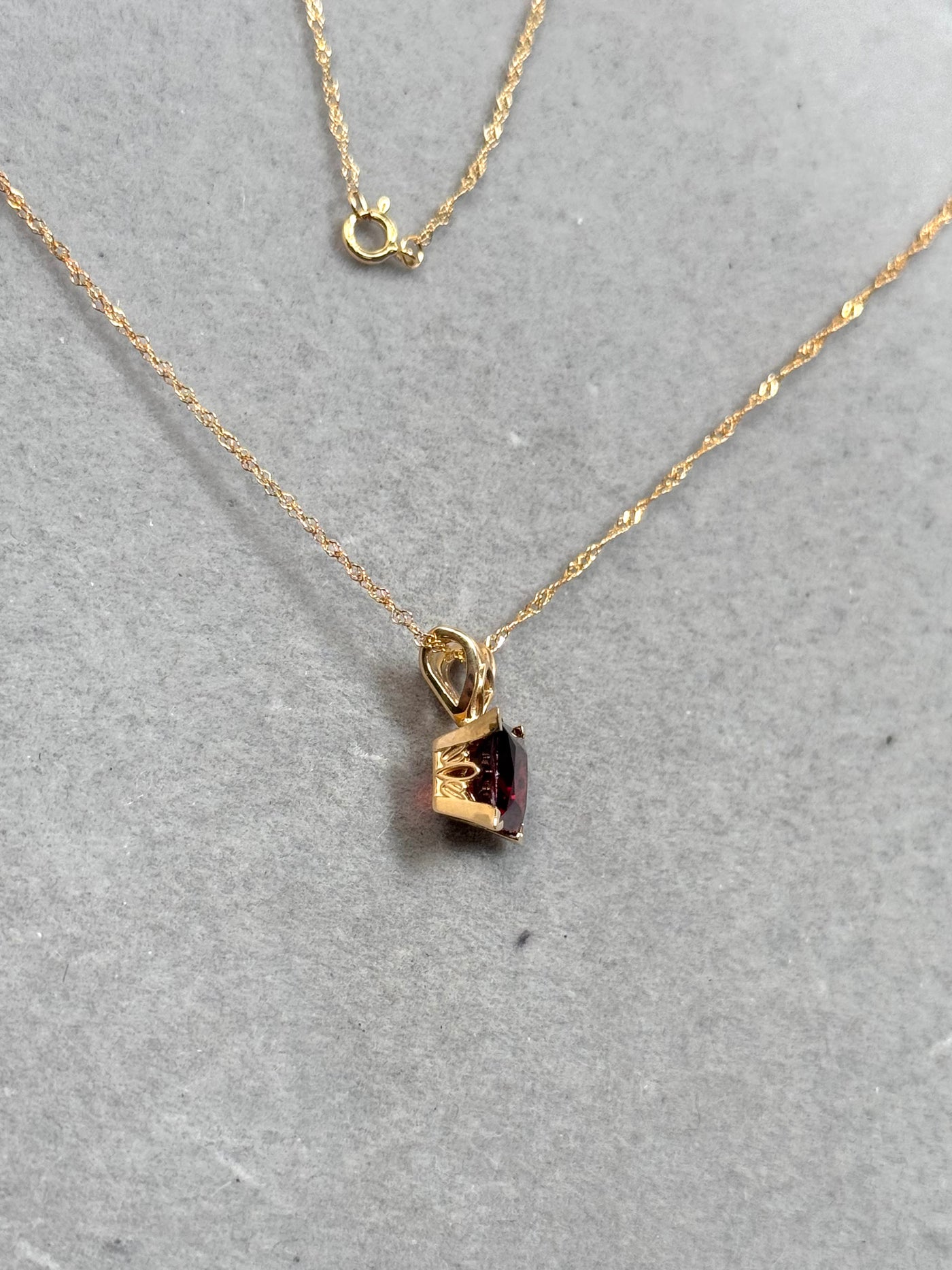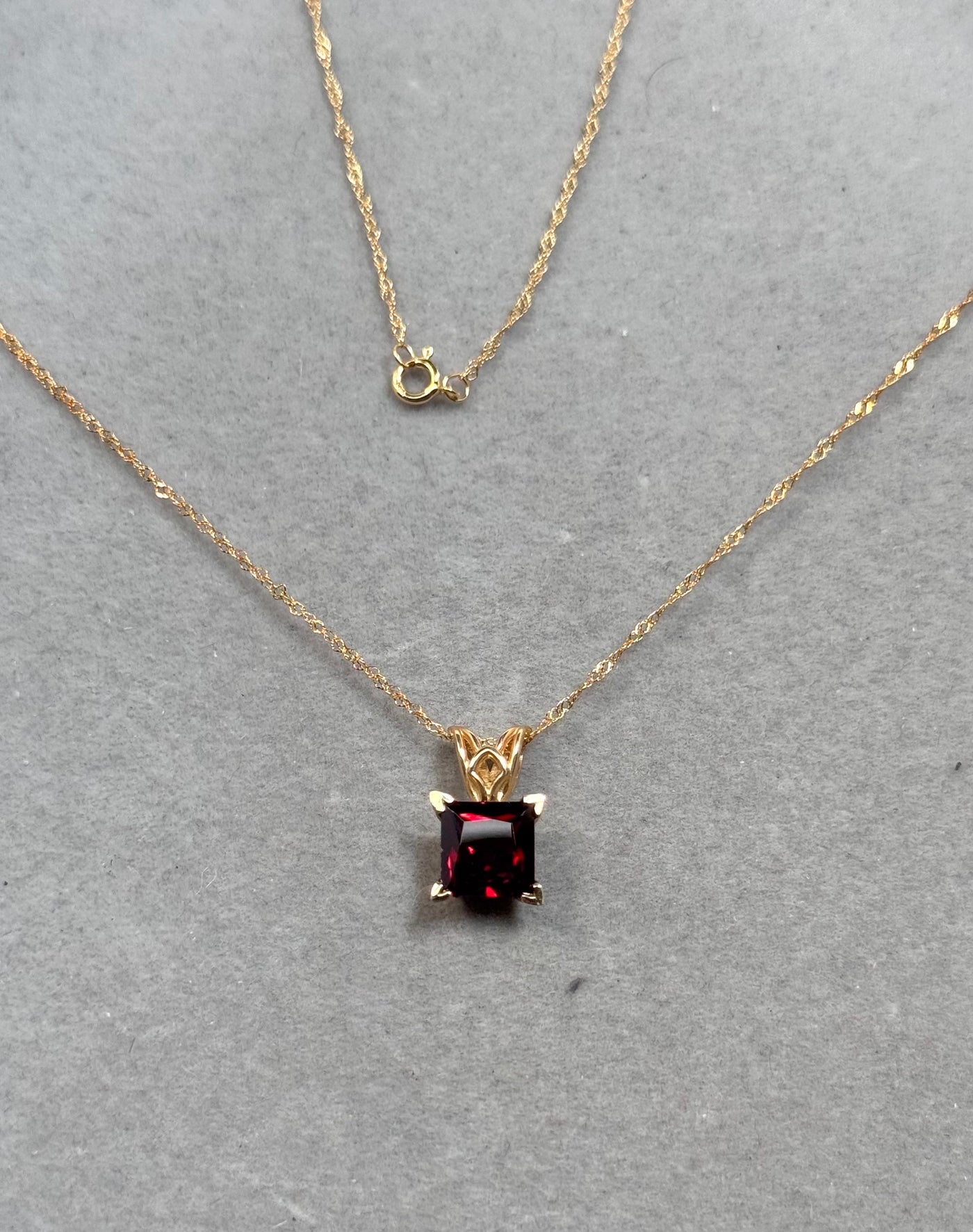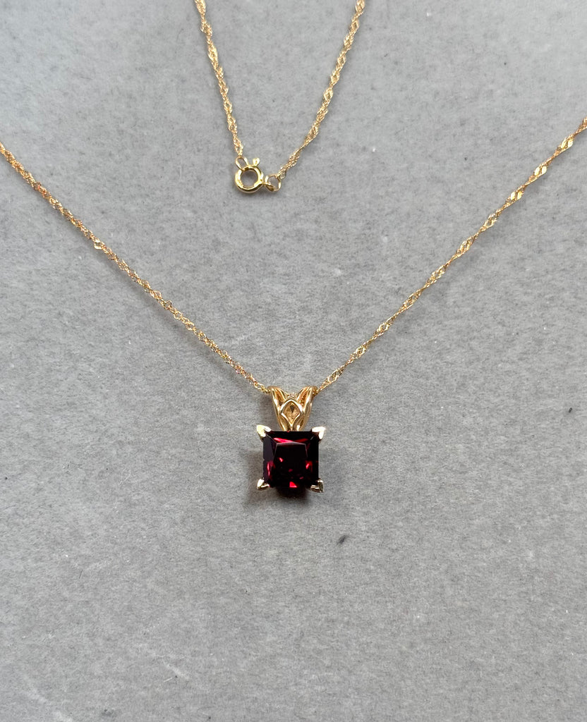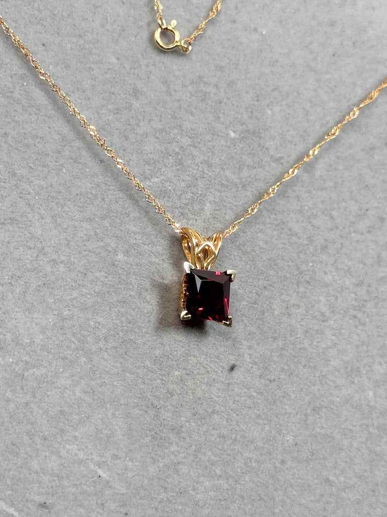 Natural Garnet Scroll Pendant 1.85–2.35 CT Princess Cut | 14K Yellow Gold Garnet Necklace | January Birthstone Jewelry