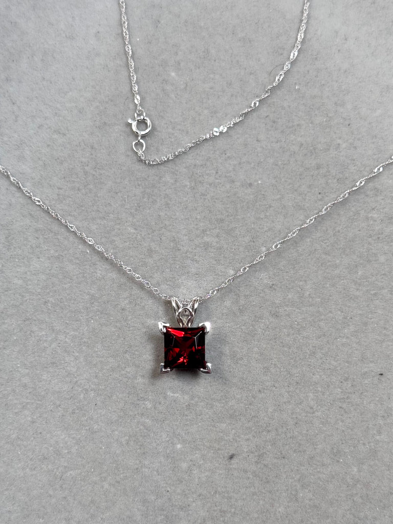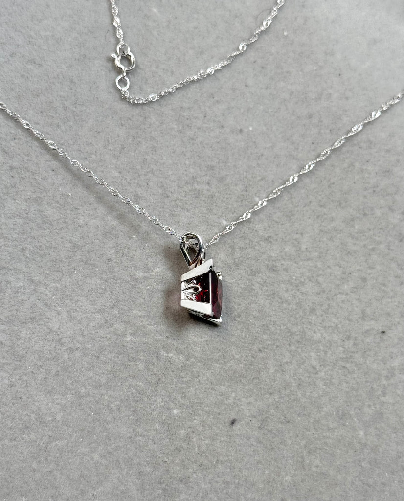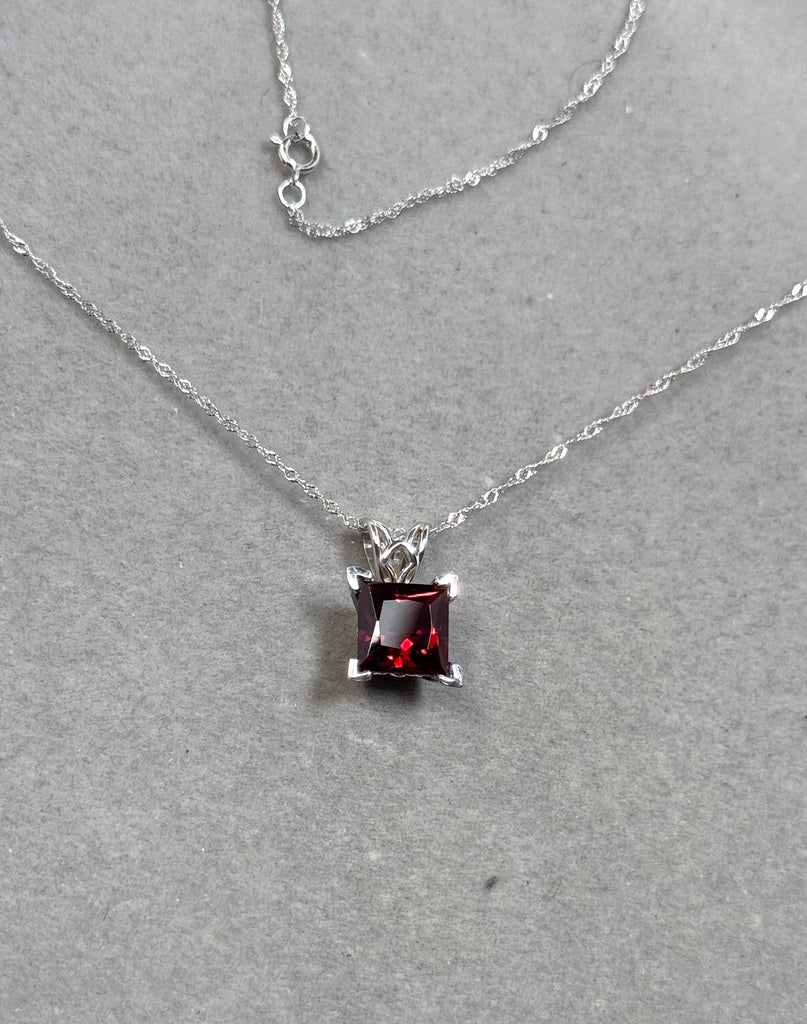 Natural Garnet Scroll Pendant 2.35–2.90 CT Princess Cut | 14K White Gold Garnet Necklace | January Birthstone Jewelry