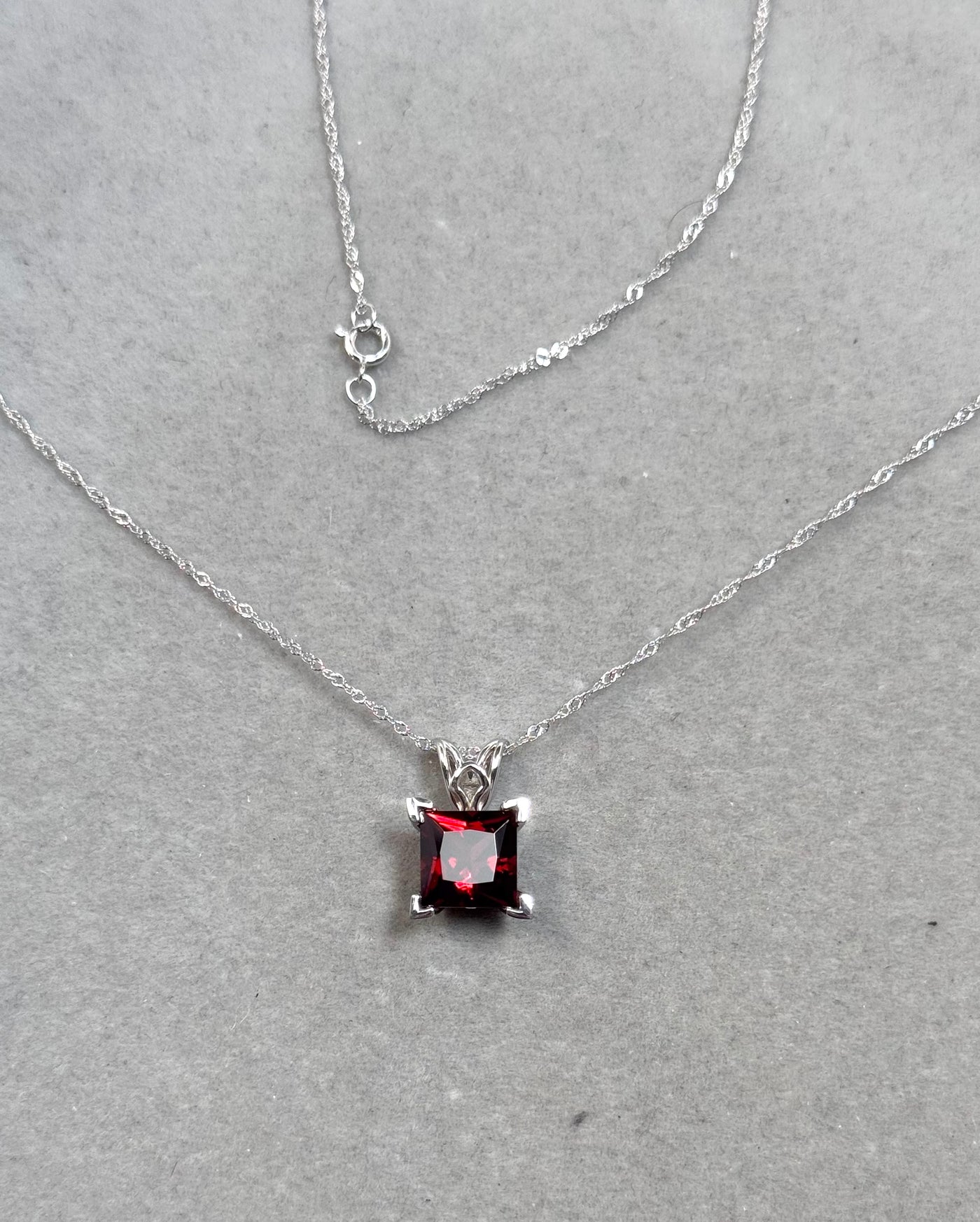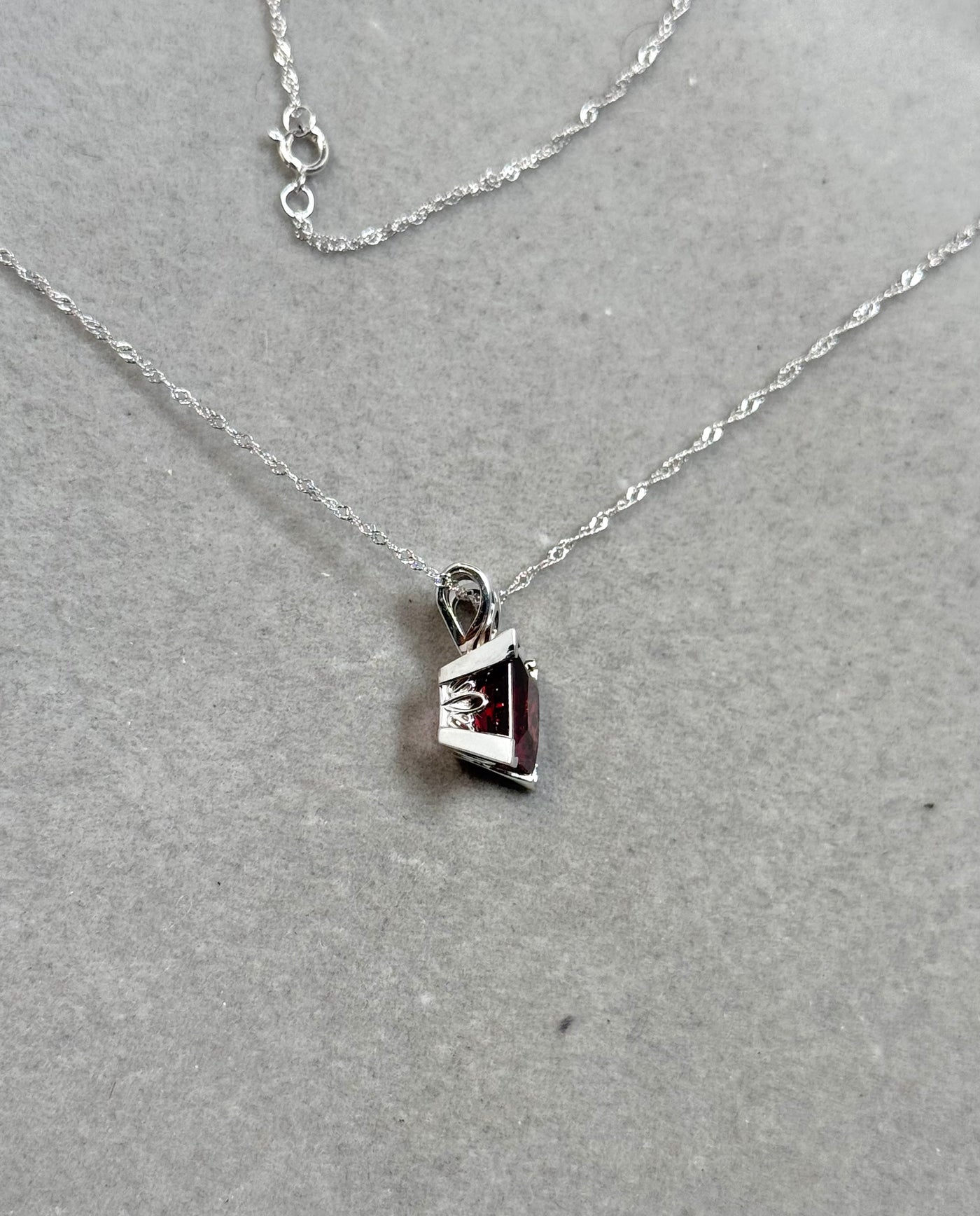 Finished with an 18-inch 14K white gold Singapore chain, this pendant delivers a clean, modern look with classic charm. A versatile piece of fine gemstone jewelry, perfect for everyday wear or special occasions, and a meaningful January birthstone necklace.