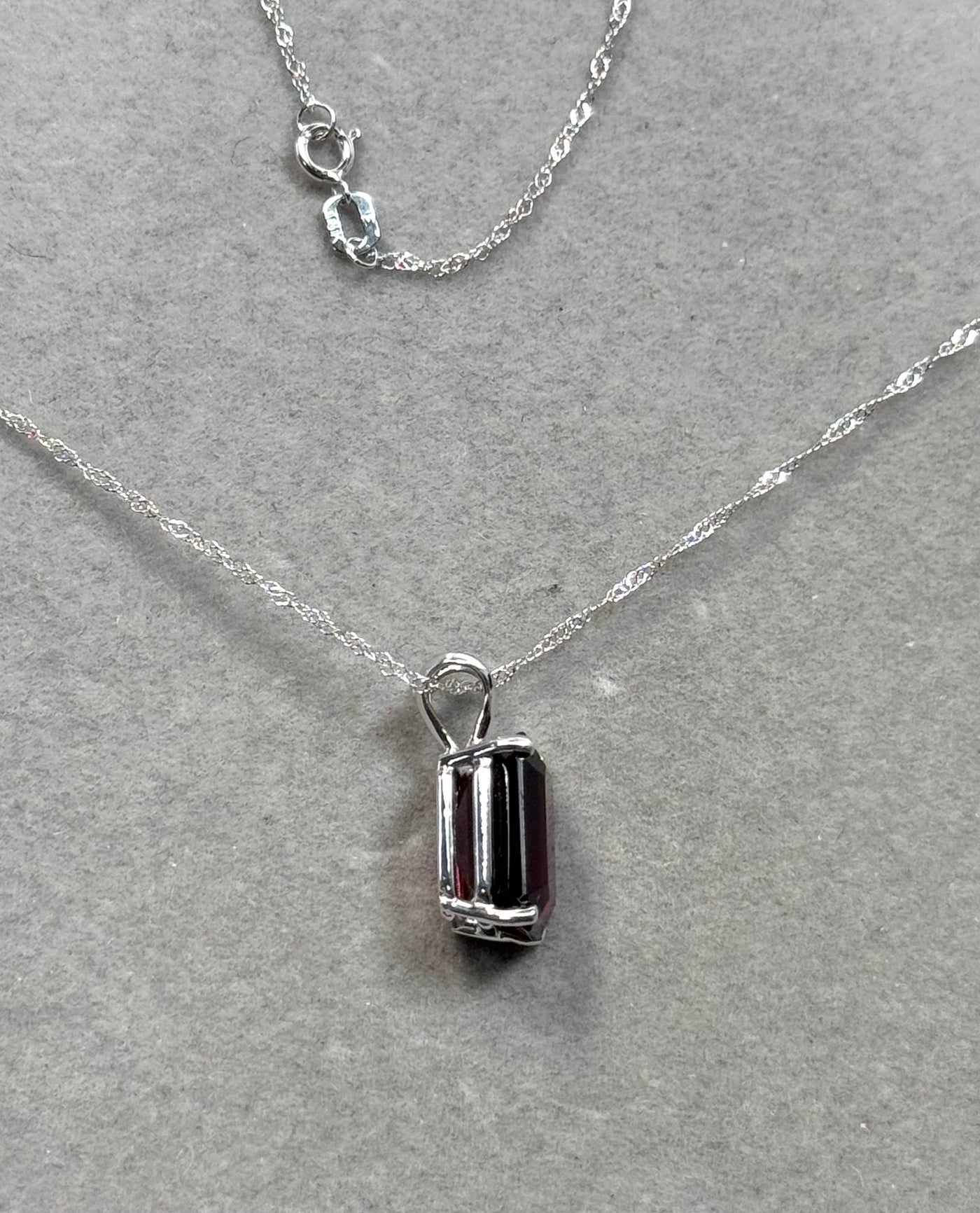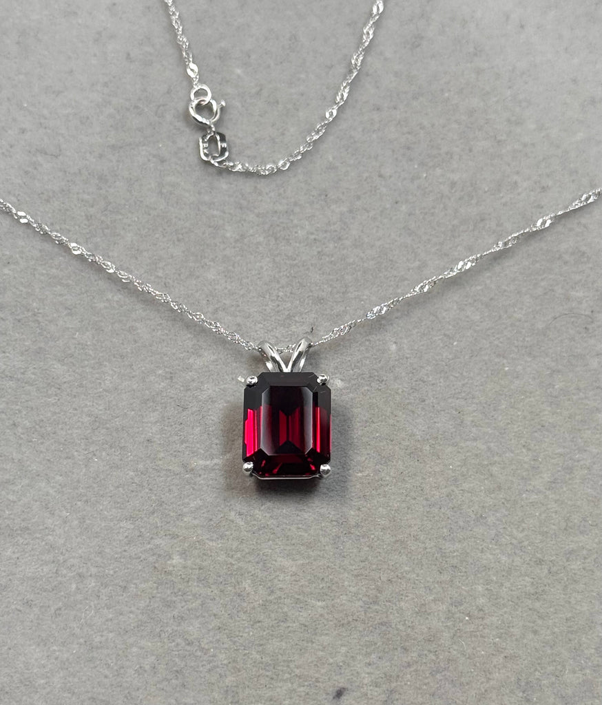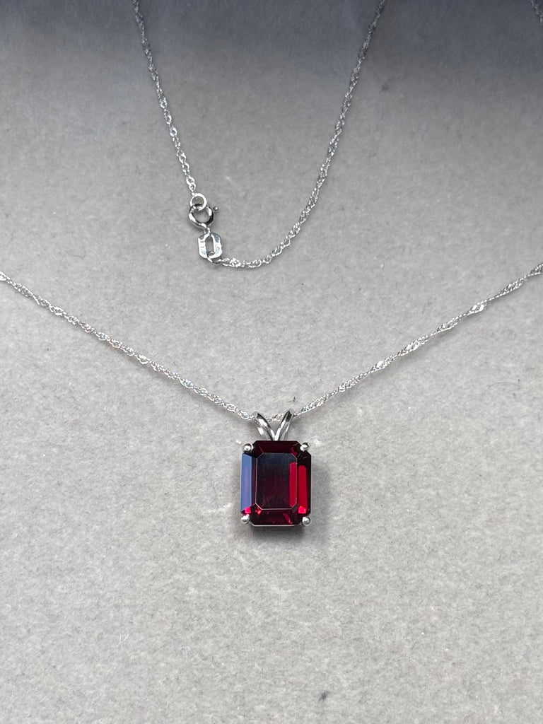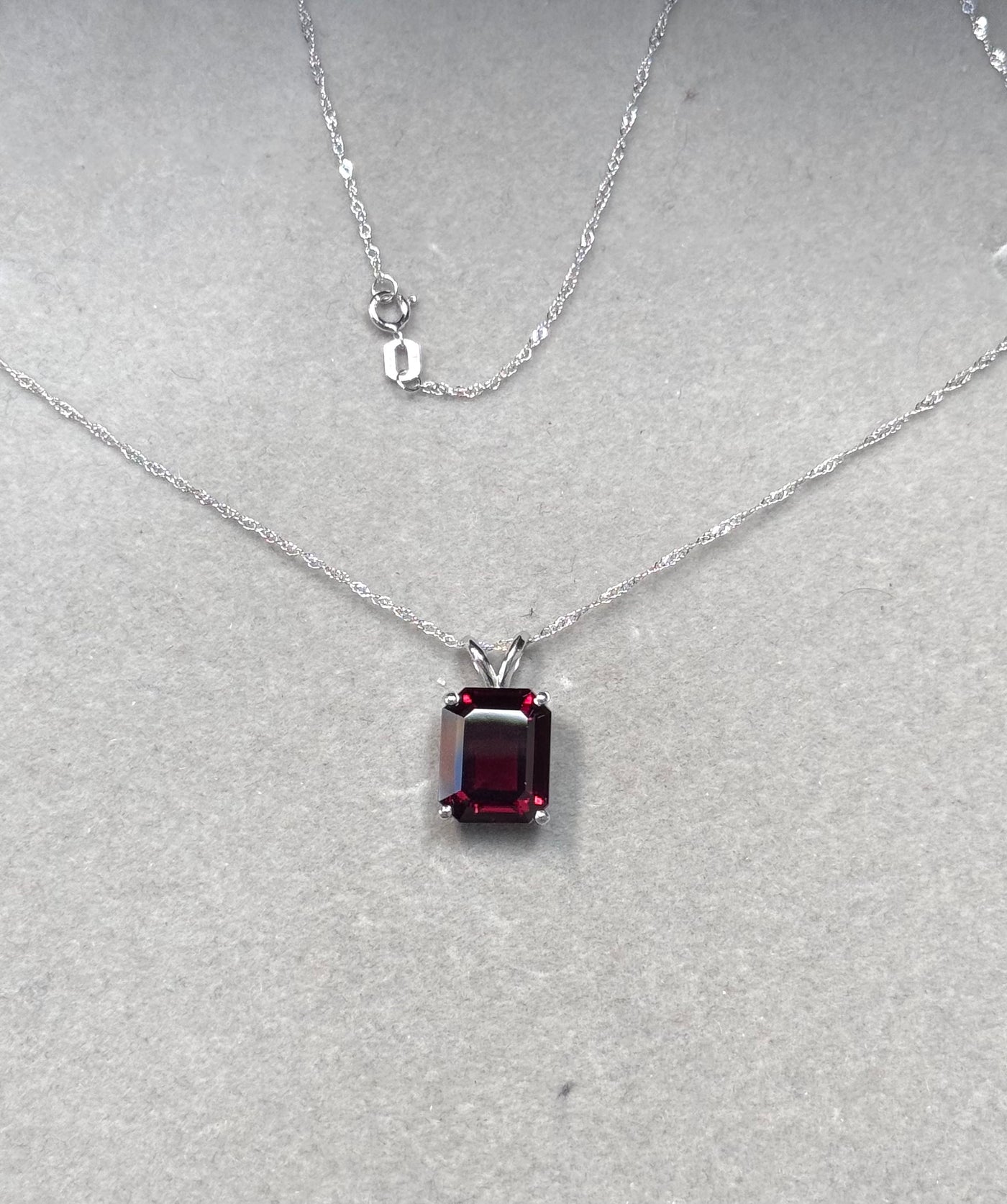Natural Garnet Solitaire Pendant 6.90 CT Emerald Cut | Platinum Garnet Necklace | January Birthstone Fine Jewelry
