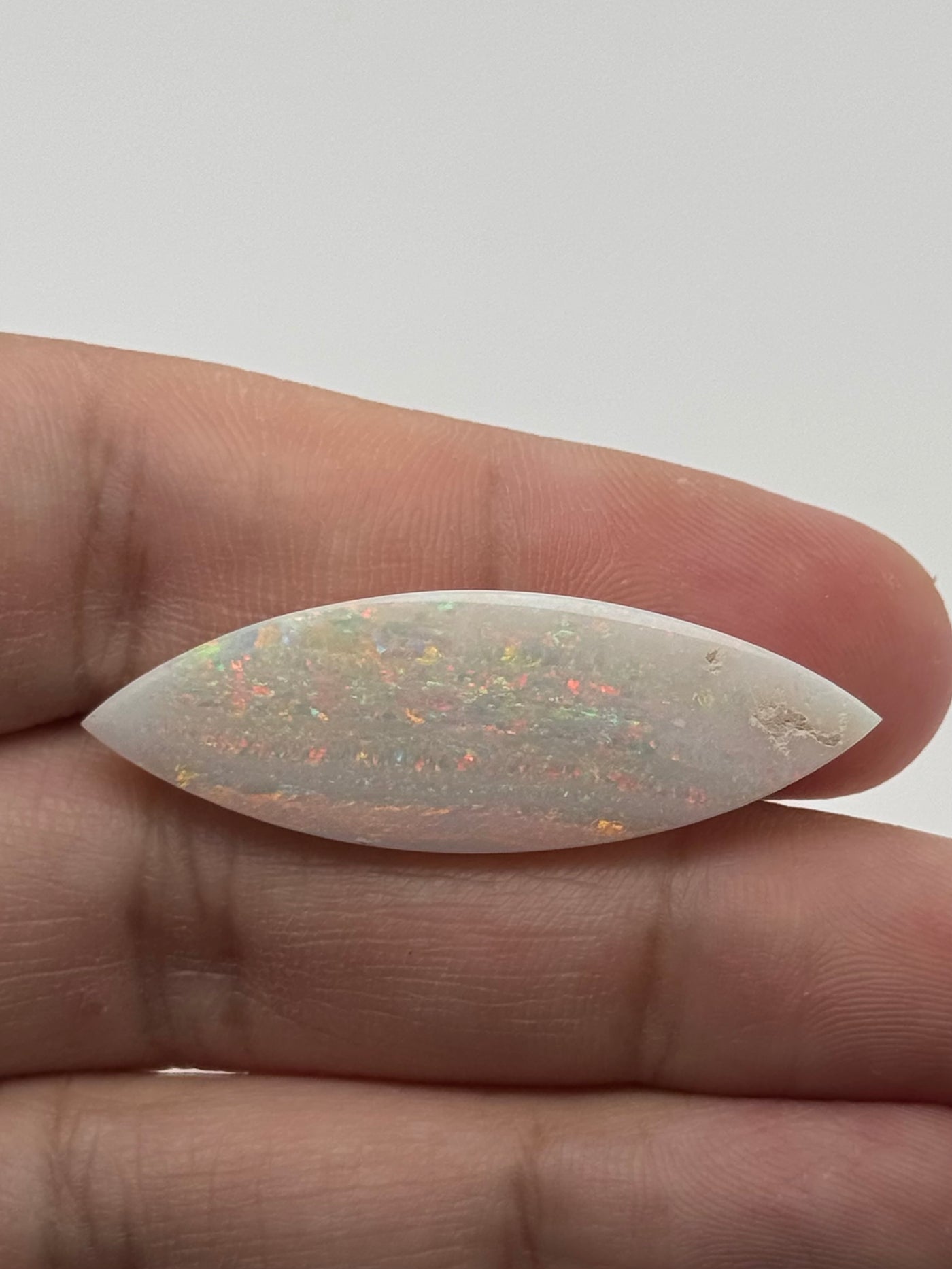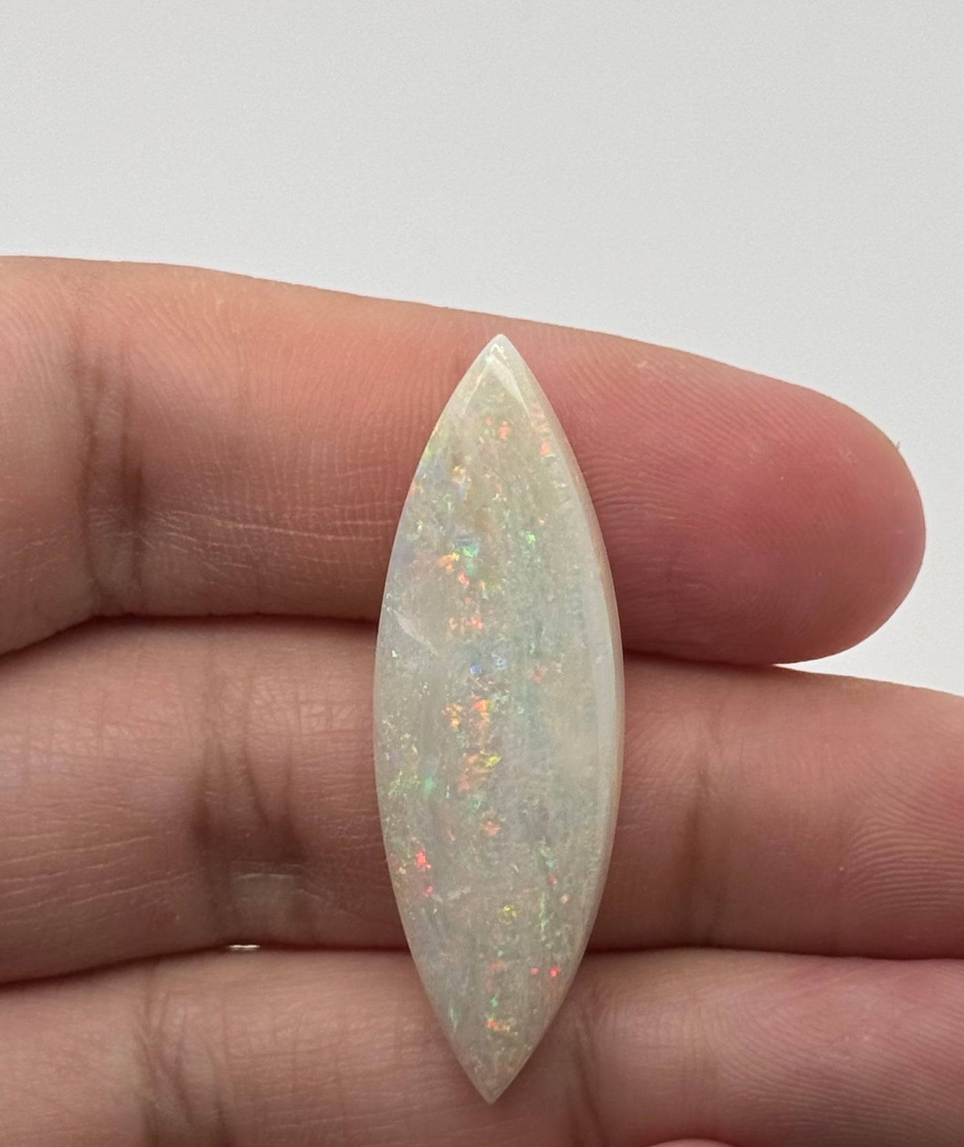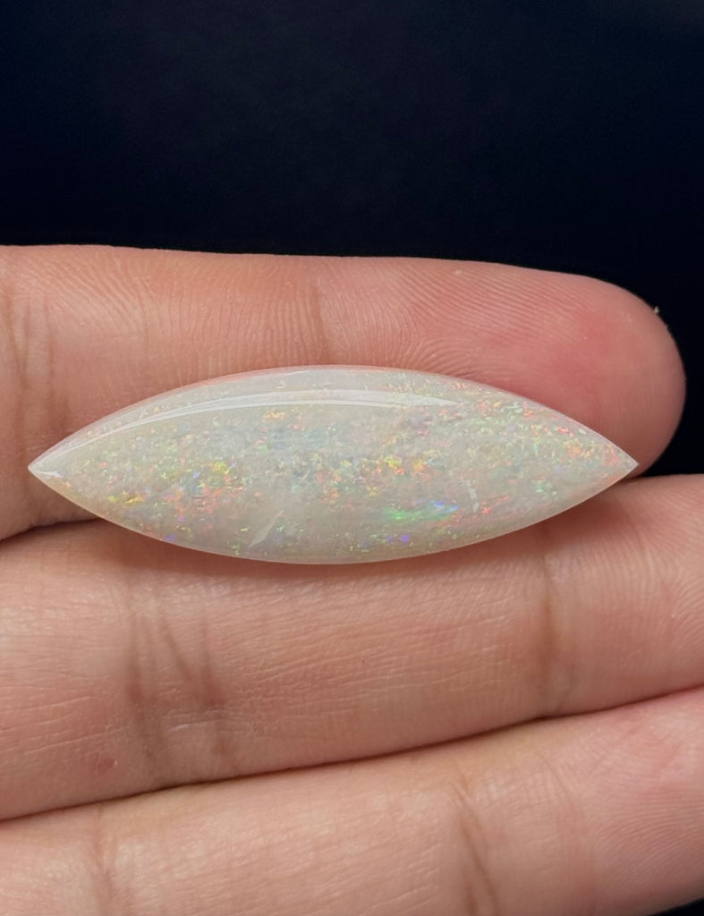 White opals are prized for their unique flashes of color and luminous appearance, making them a favorite among jewelry designers and gemstone collectors. The elongated marquise shape adds a sophisticated look, perfect for statement rings, pendants, or custom jewelry designs.