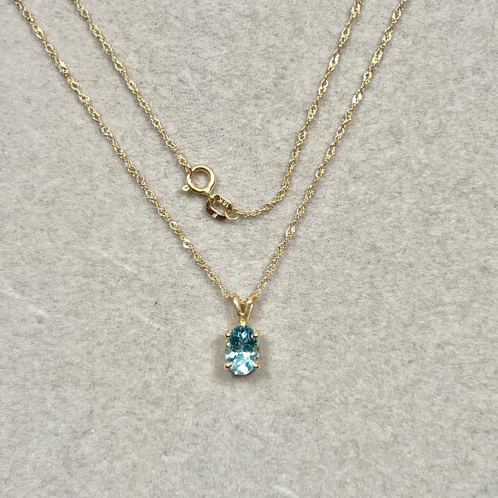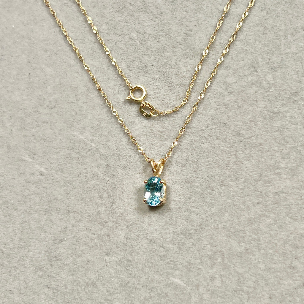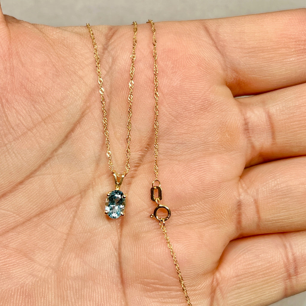 Oval Aquamarine Solitaire Pendant 7x5mm AAA | 0.52–0.78 Ct Natural Aquamarine | 18K Yellow Gold Necklace