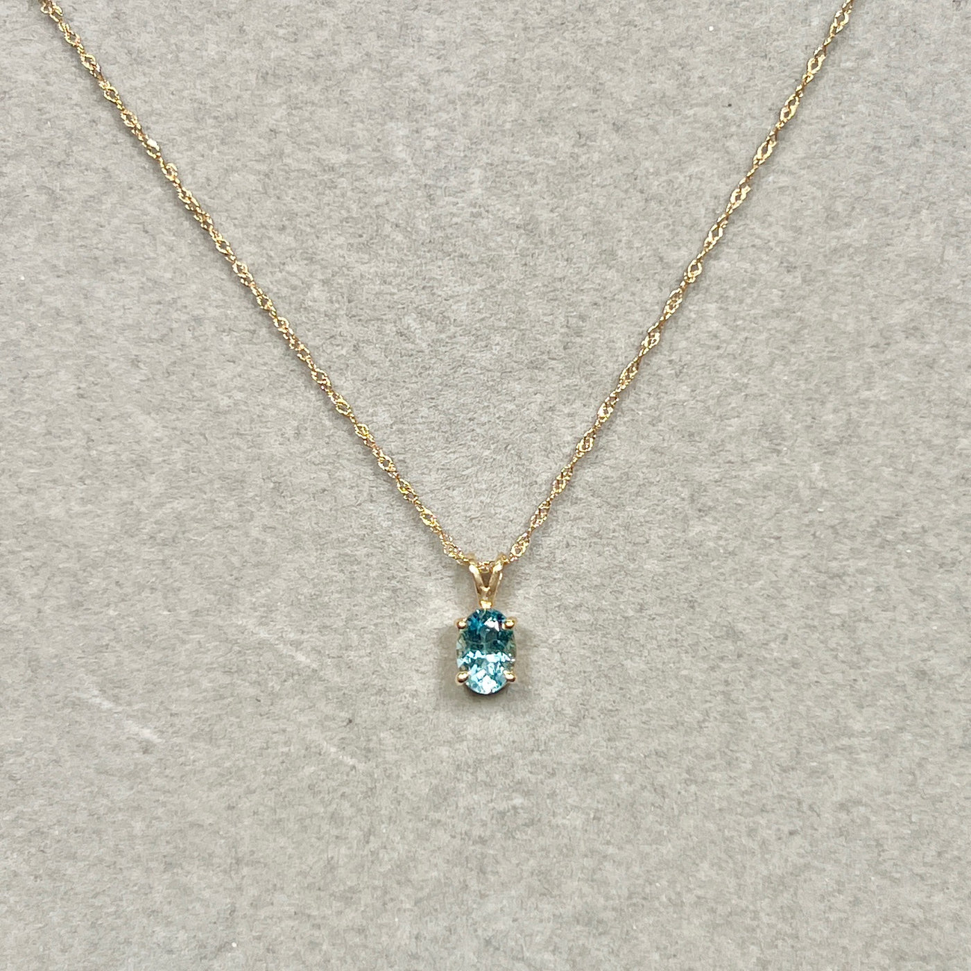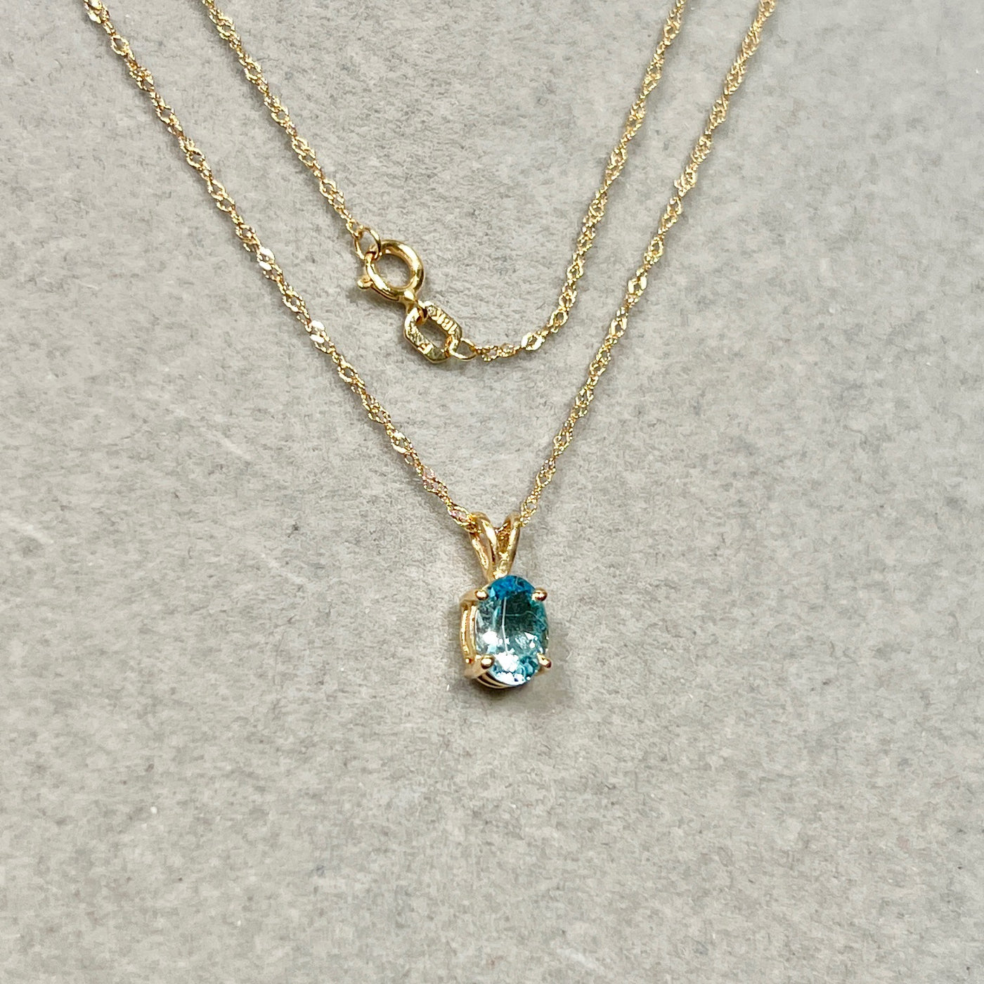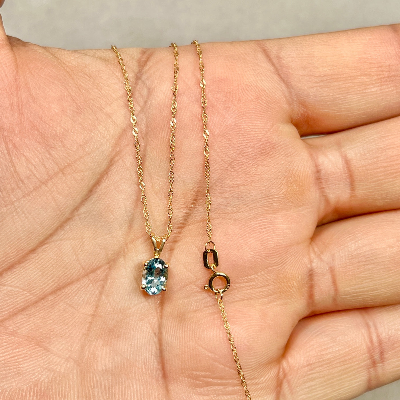 Oval Aquamarine Solitaire Pendant 7x5mm AAA | 0.52–0.78 Ct Natural Aquamarine | 18K Yellow Gold Necklace