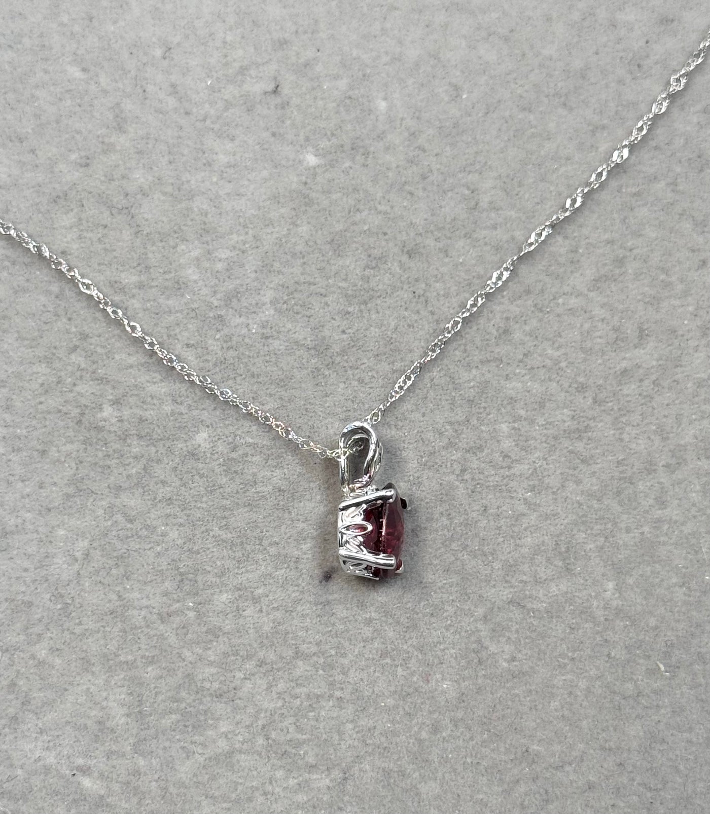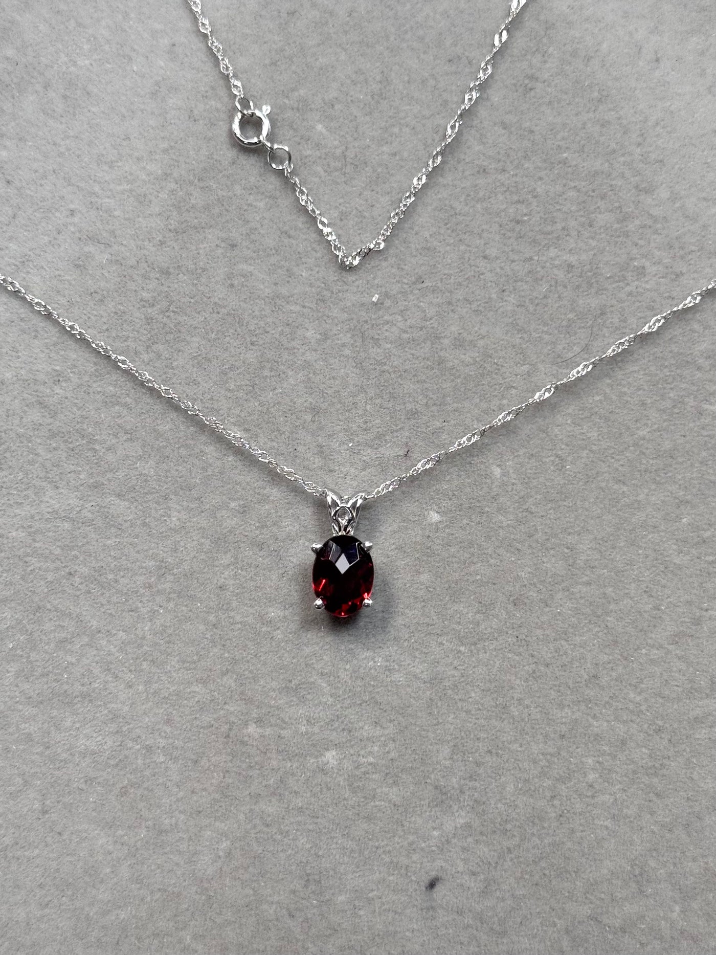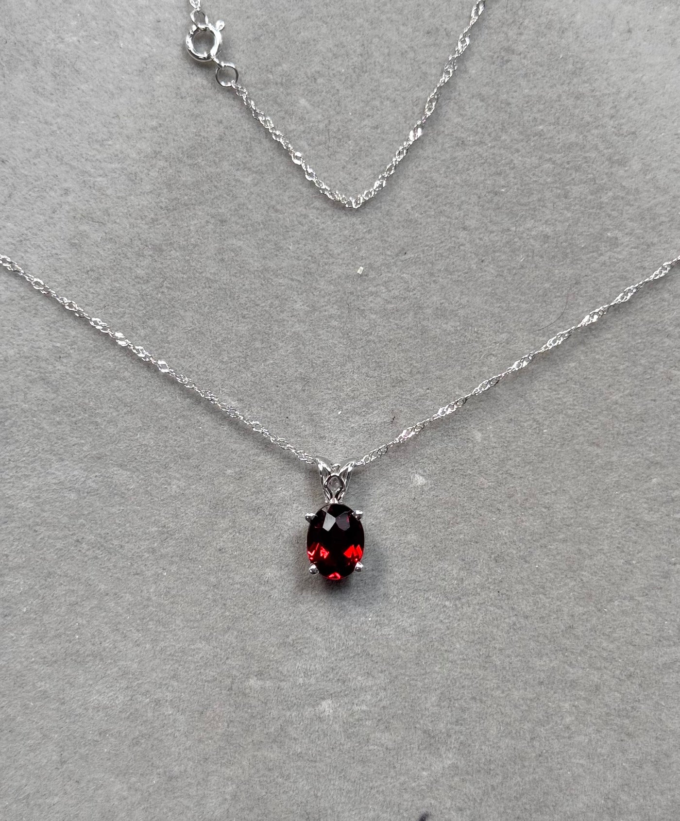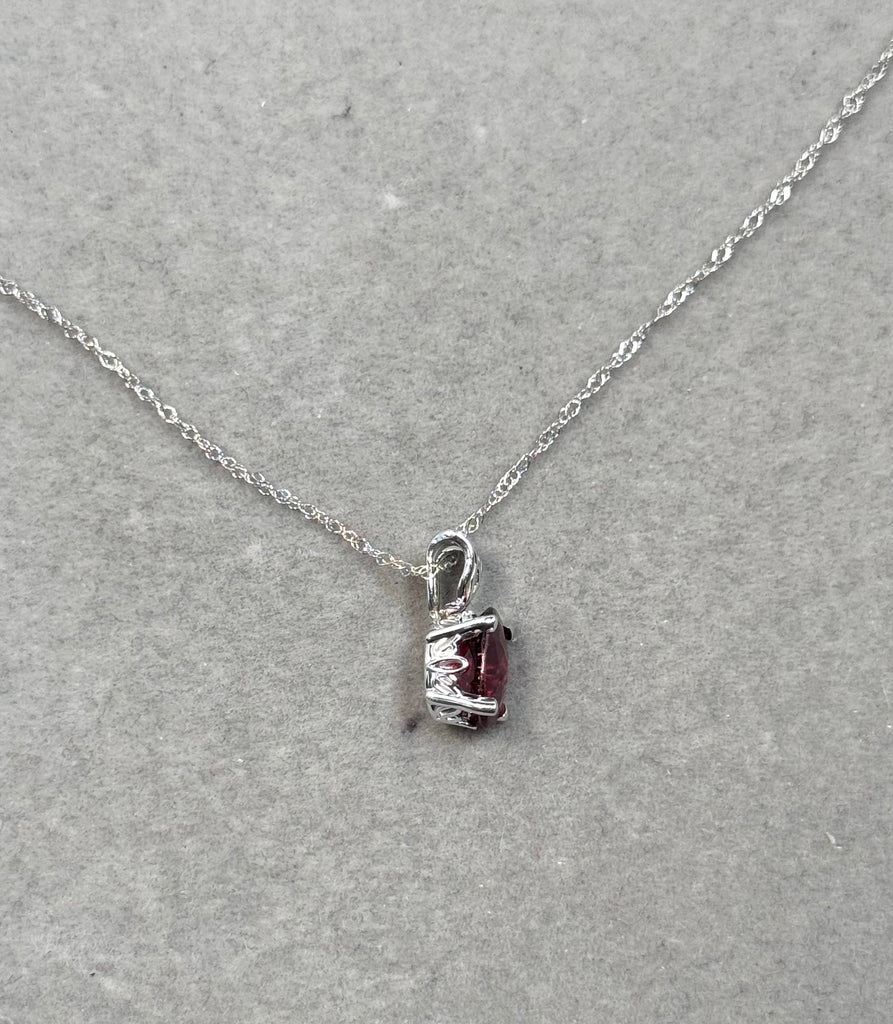 Oval Garnet Scroll Pendant 14K White Gold | AAA Red Garnet 1.35–2.15 Cts | January Birthstone Necklace Gift for Her