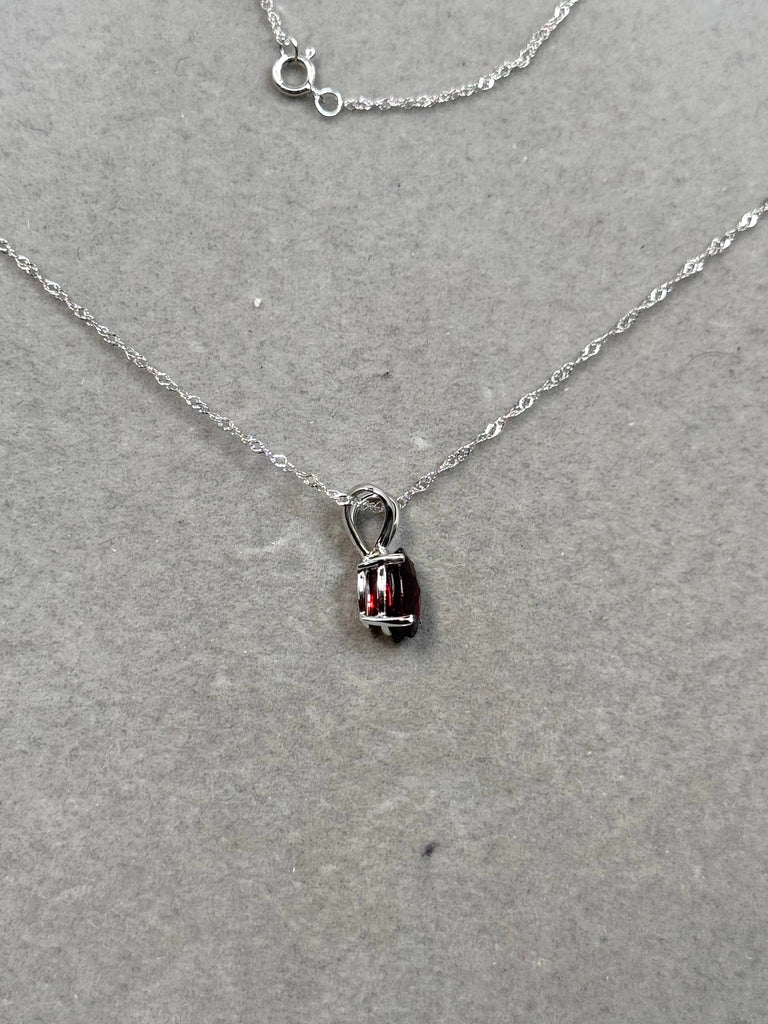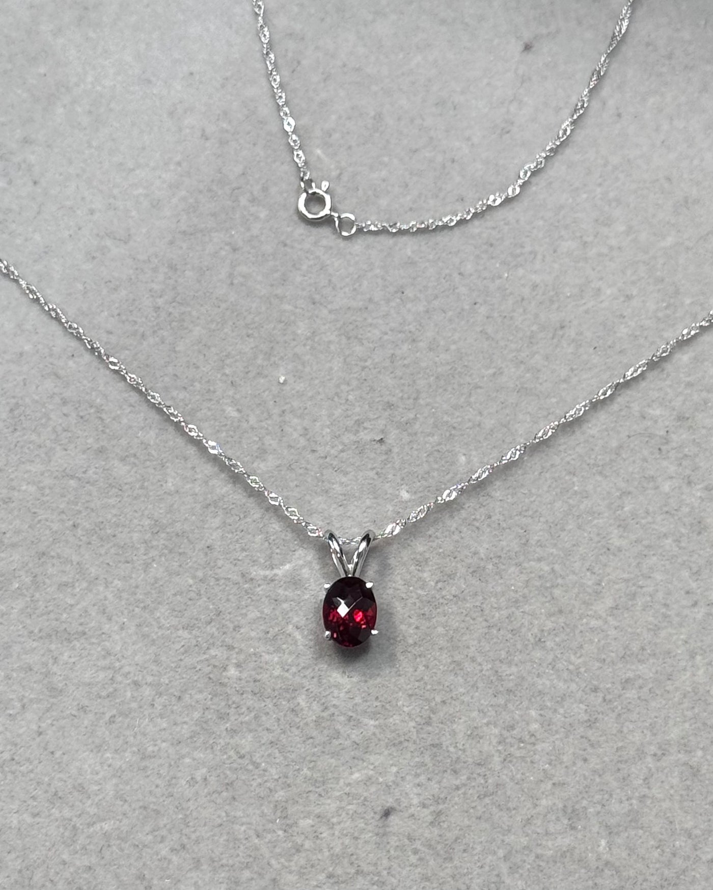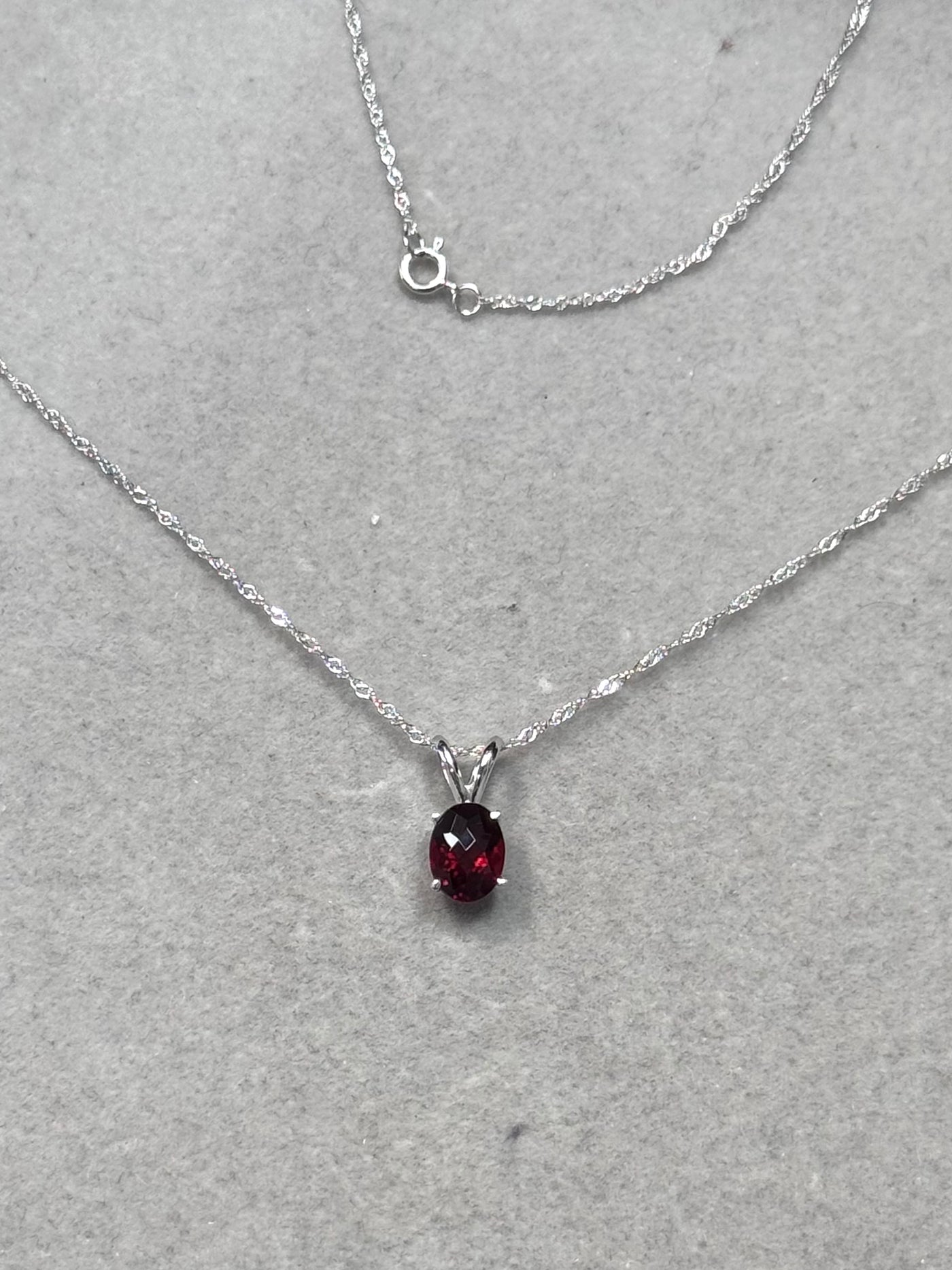 Oval Red Garnet women Solitaire Pendant 1.35–2.15 Cts AAA Natural Stone in 14K White Gold with 18 Inch Chain