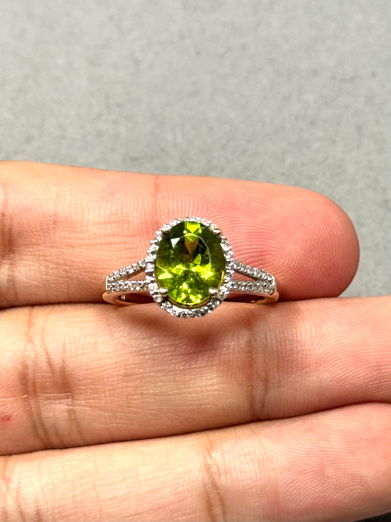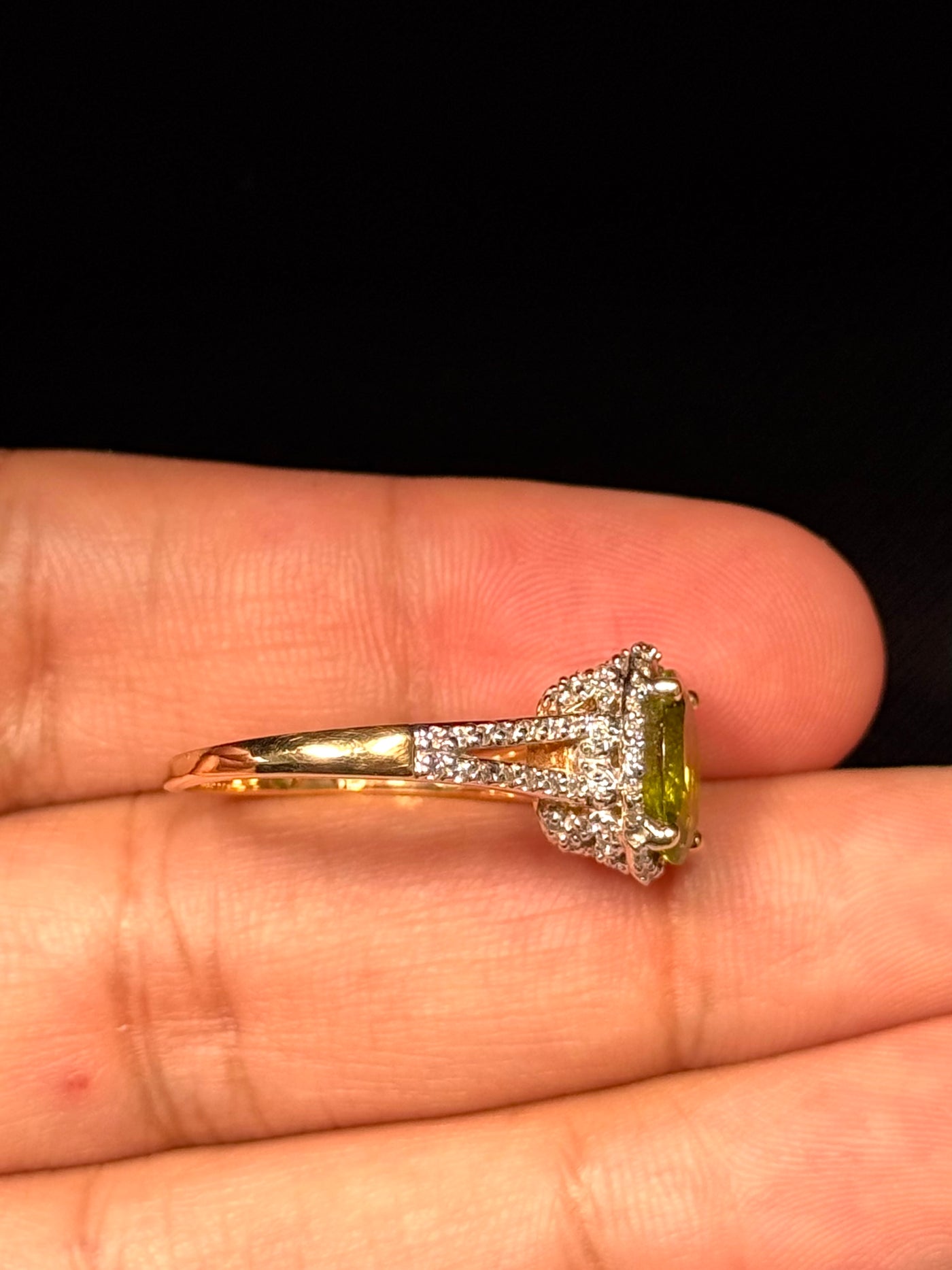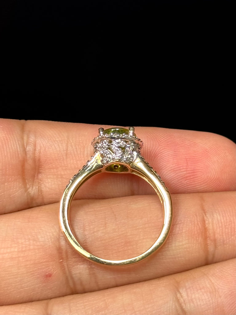 peridot halo ring, 14k gold gemstone ring, natural peridot jewelry, diamond accent ring