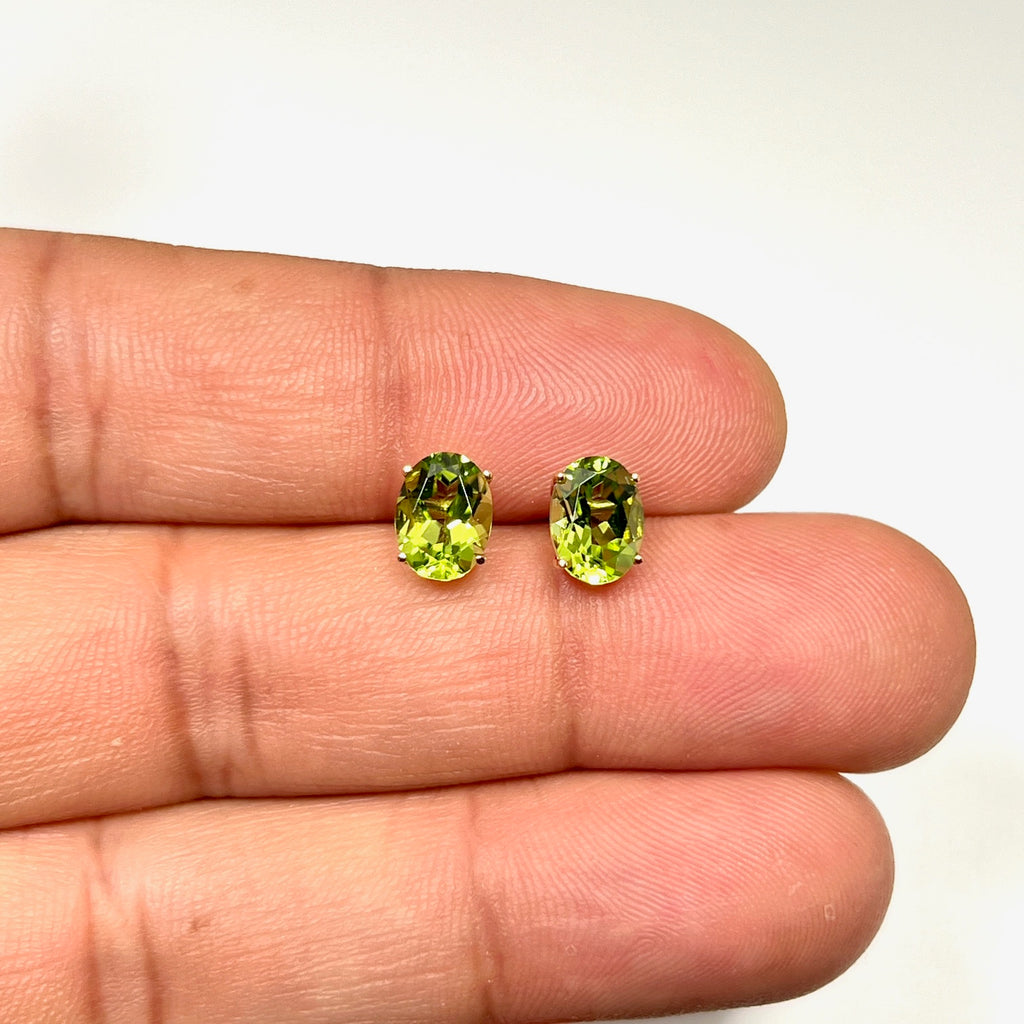 Peridot Stud Earrings 14K Yellow Gold | 8x6mm Oval AA Natural Peridot | 2.25–2.65 ct Women’s Gemstone Earrings Gift