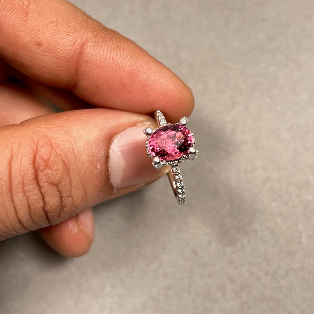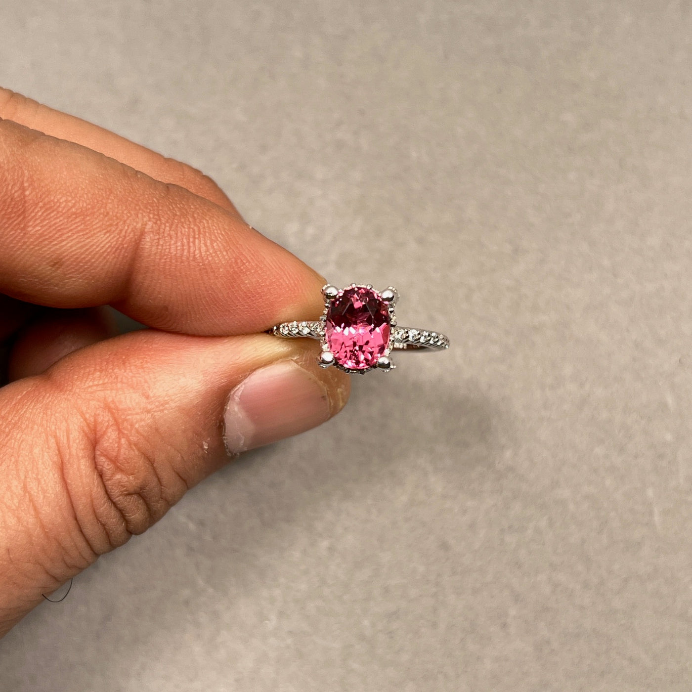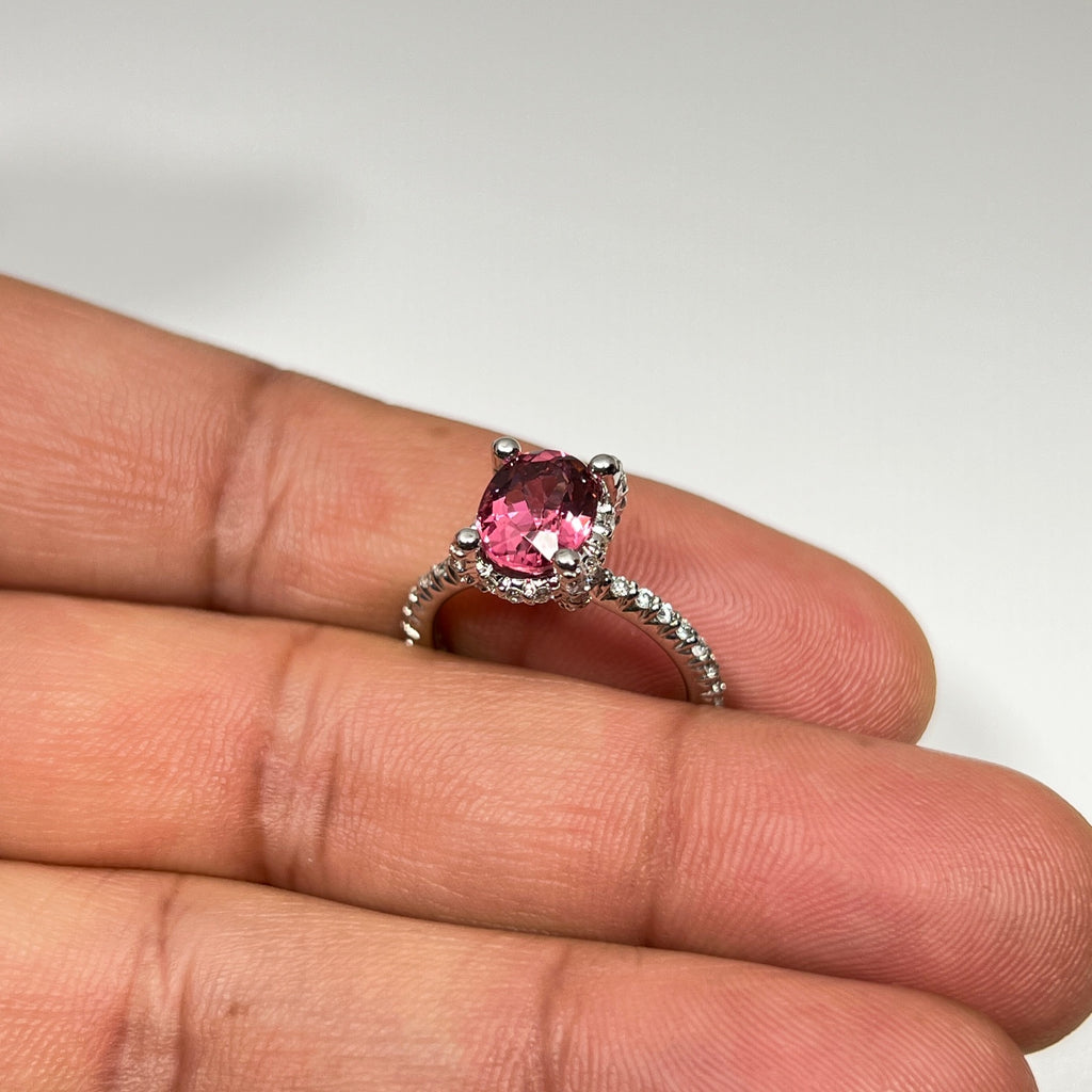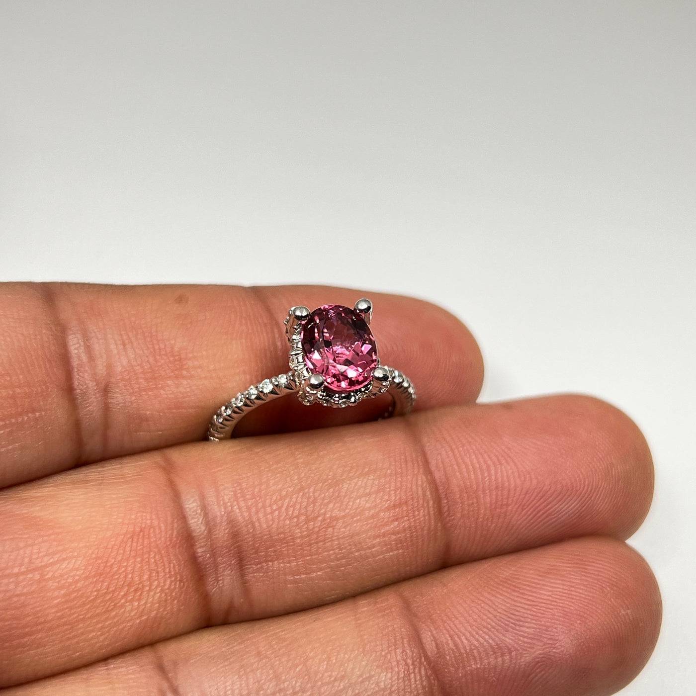 Pink Tourmaline & Diamond Ring 14K White Gold | 1.50 ct Tourmaline + 0.50 ct Diamonds | Natural Gemstone Women’s Fine Jewelry