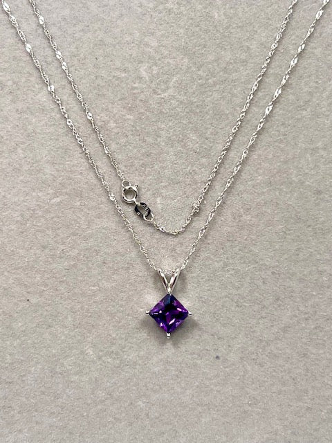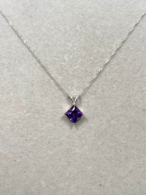 Platinum Amethyst Pendant – 1.40-1.75 Ct 7mm AAA Princess-Cut Purple Solitaire Necklace – Genuine February Birthstone Jewelry Gift