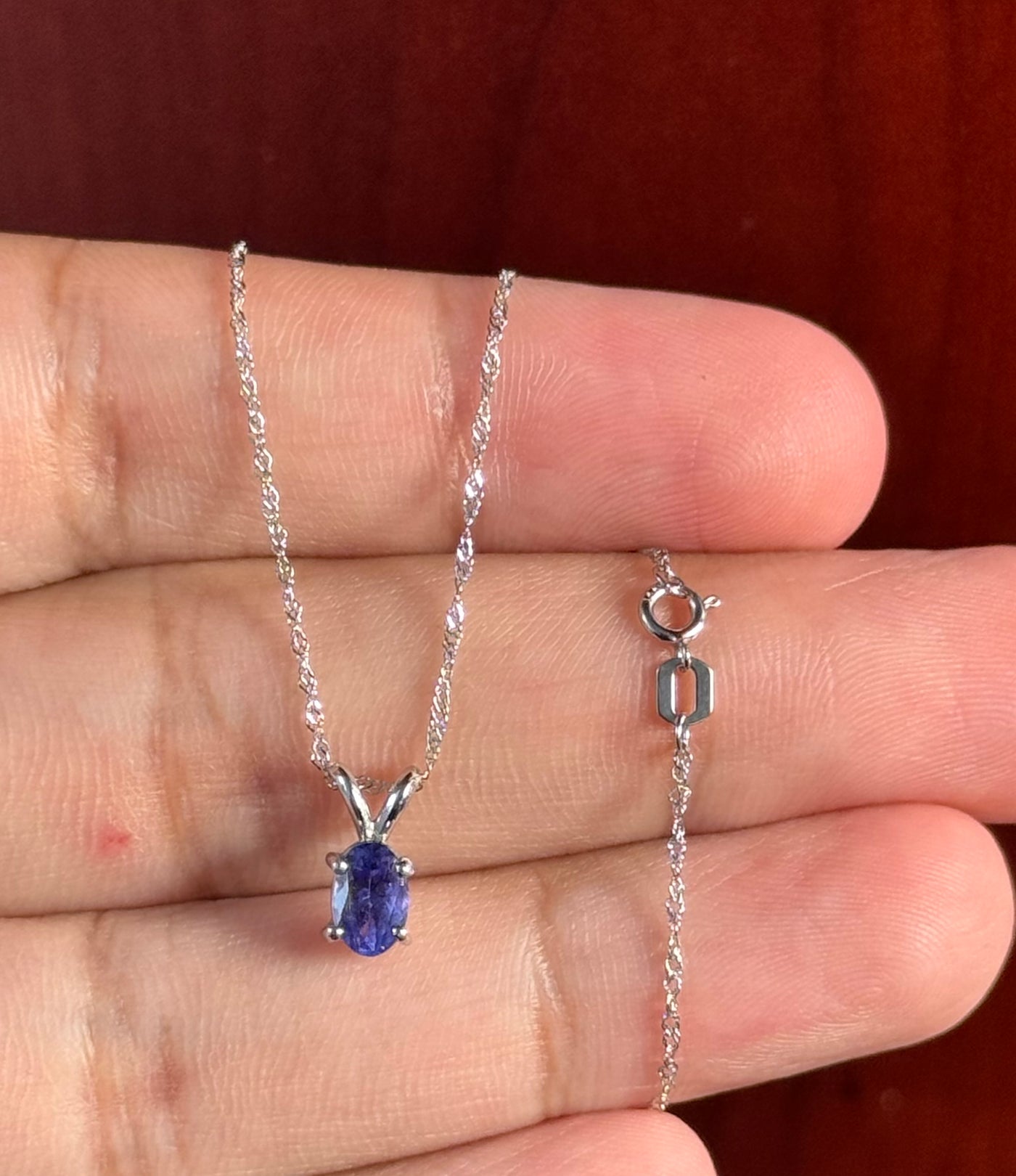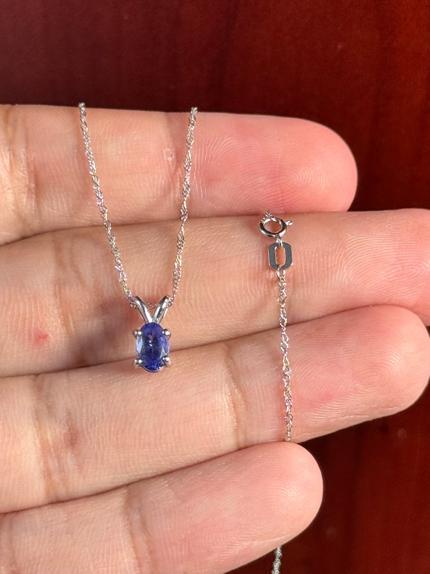 Tanzanite Pendant AA Oval 6.5x4.5 mm, ~0.60 Ct, Platinum Solitaire, 18" 18K White Gold Singapore Chain