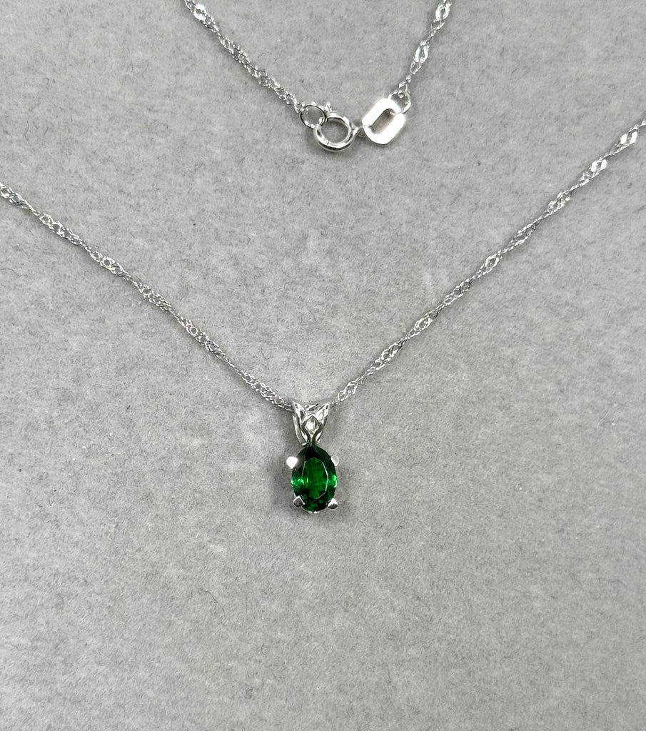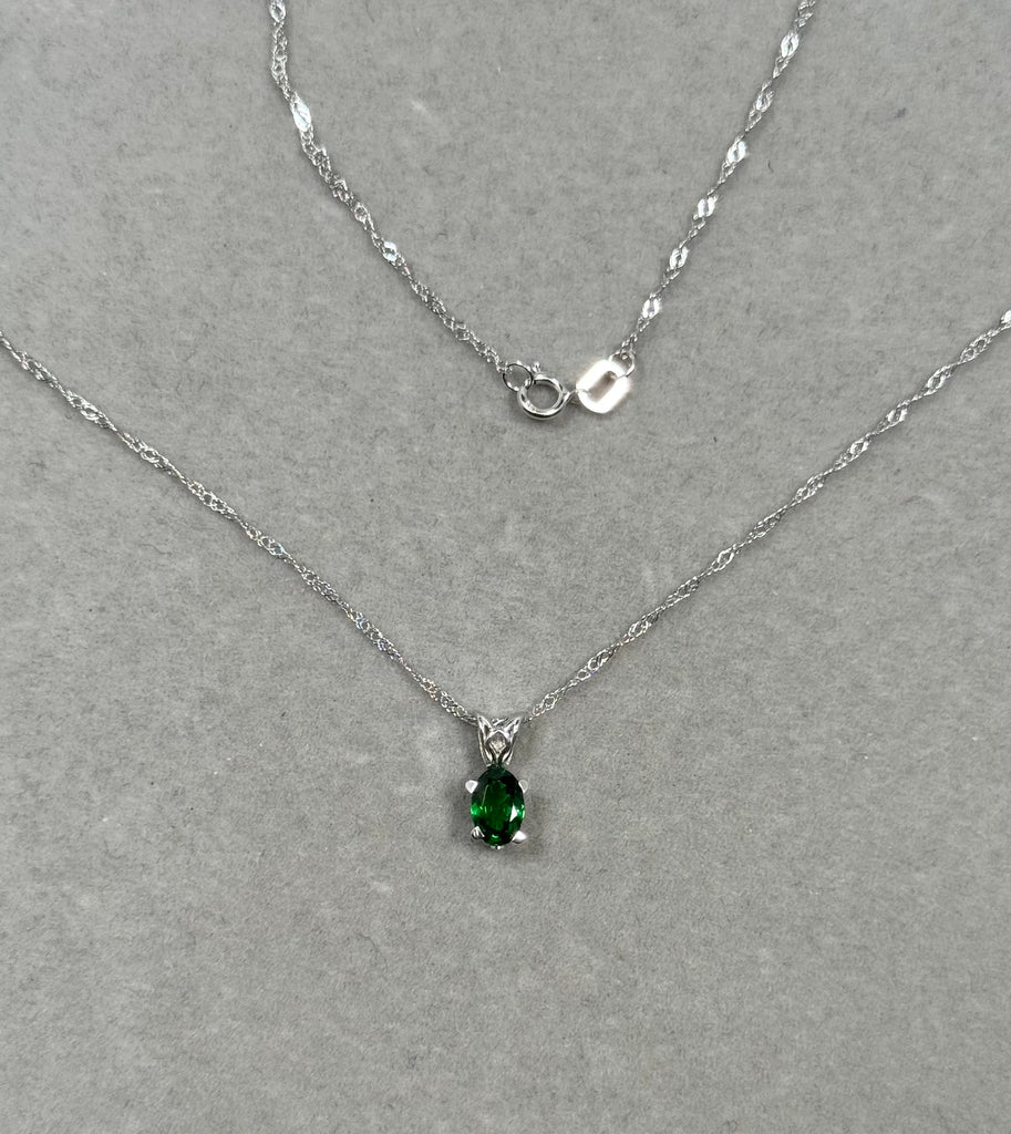 Platinum Tsavorite Garnet Pendant – 0.40-0.55 Ct 6x4mm AAA Oval Green Scroll Solitaire Necklace – Genuine Rare Garnet Jewelry Gift