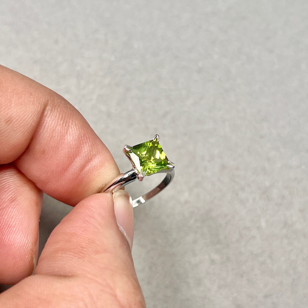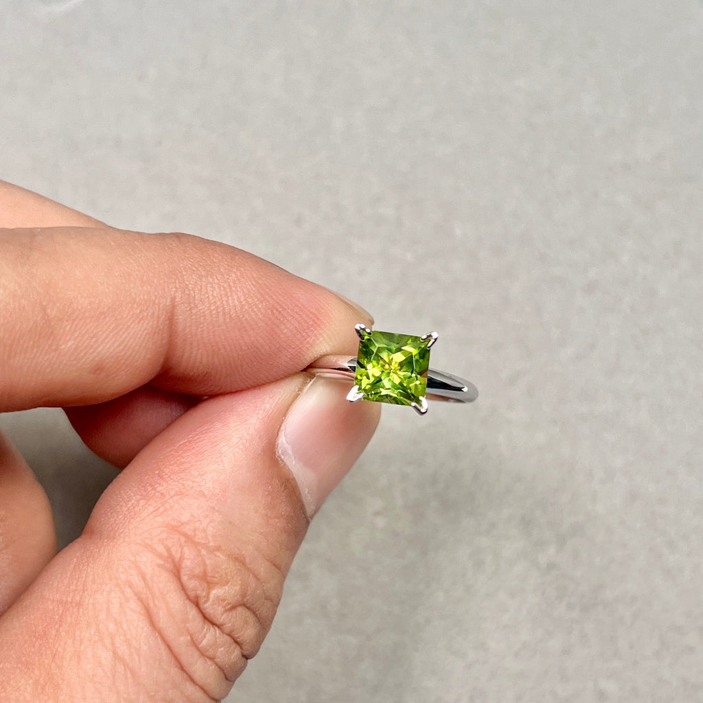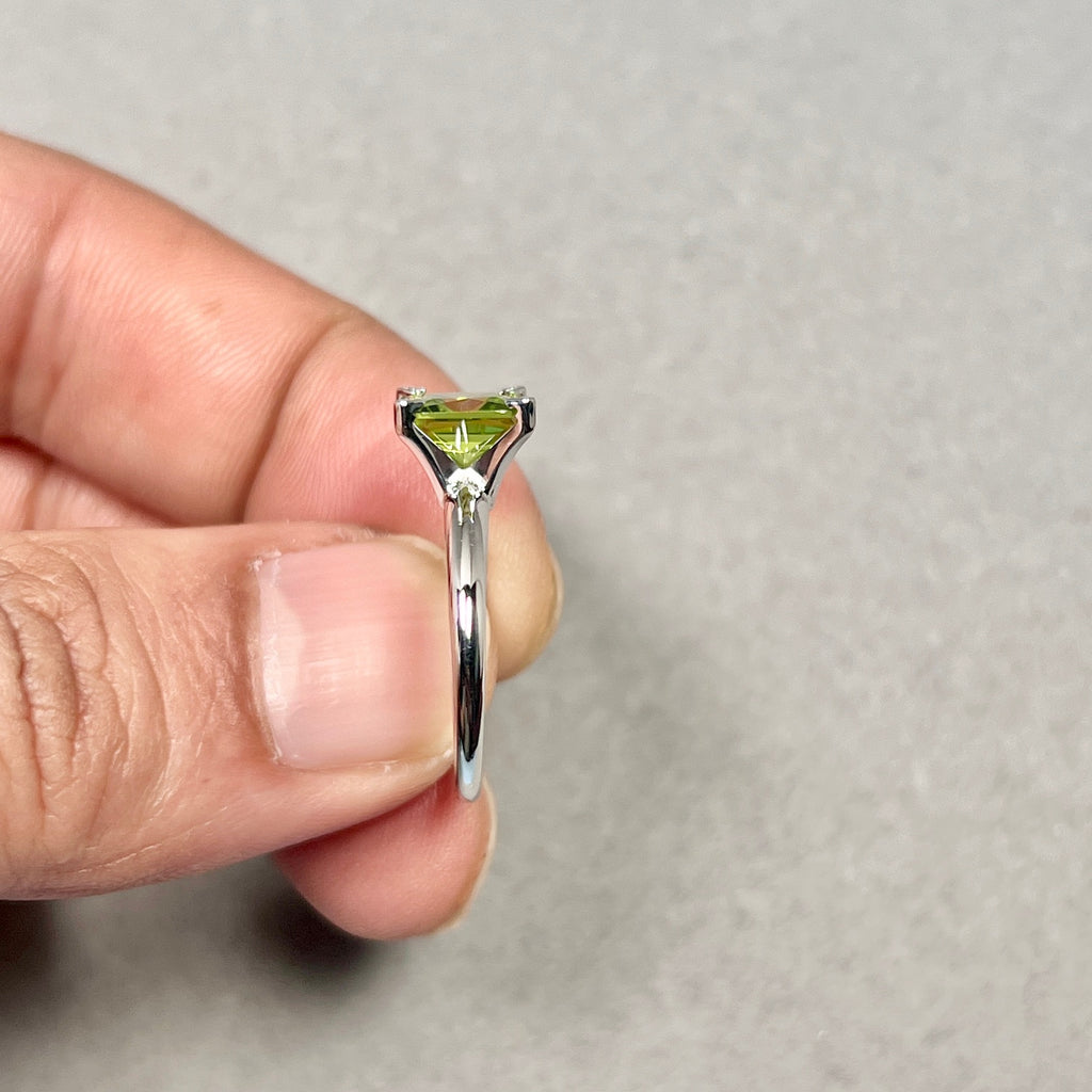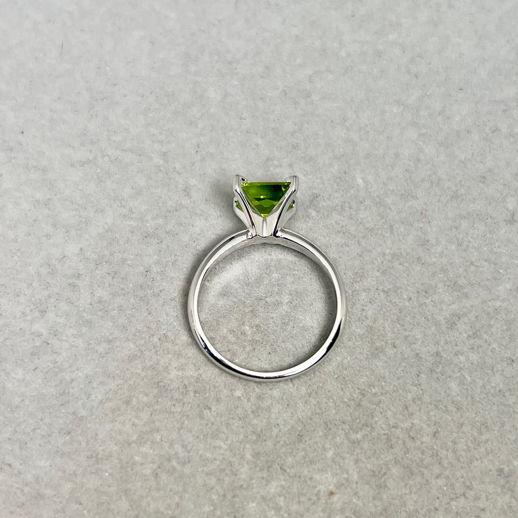 Princess Cut Peridot Ring | 14K White Gold Solitaire — August Birthstone Gift for Her