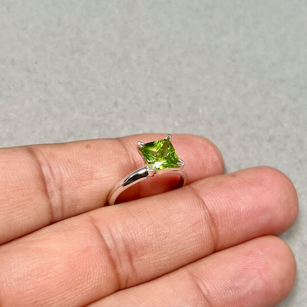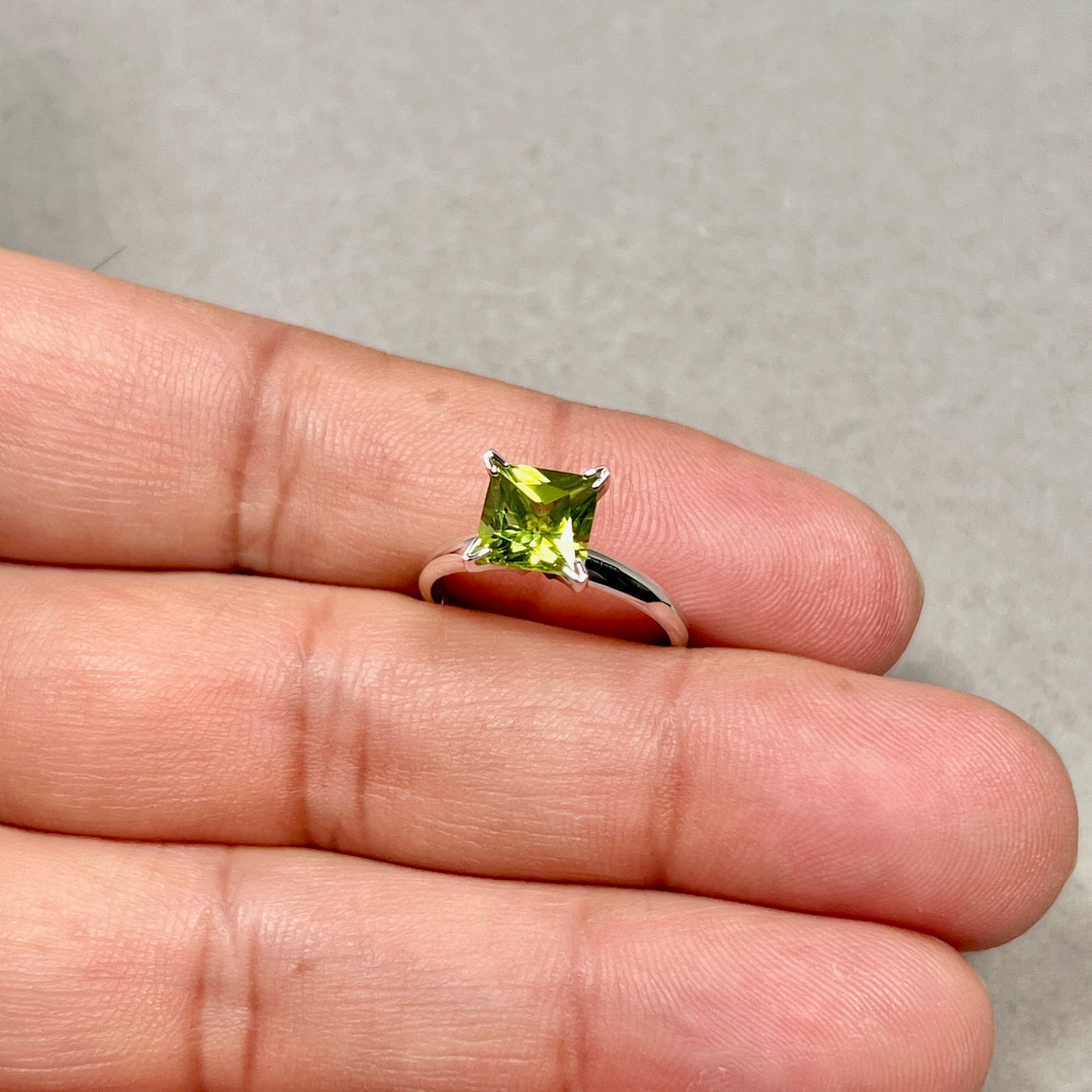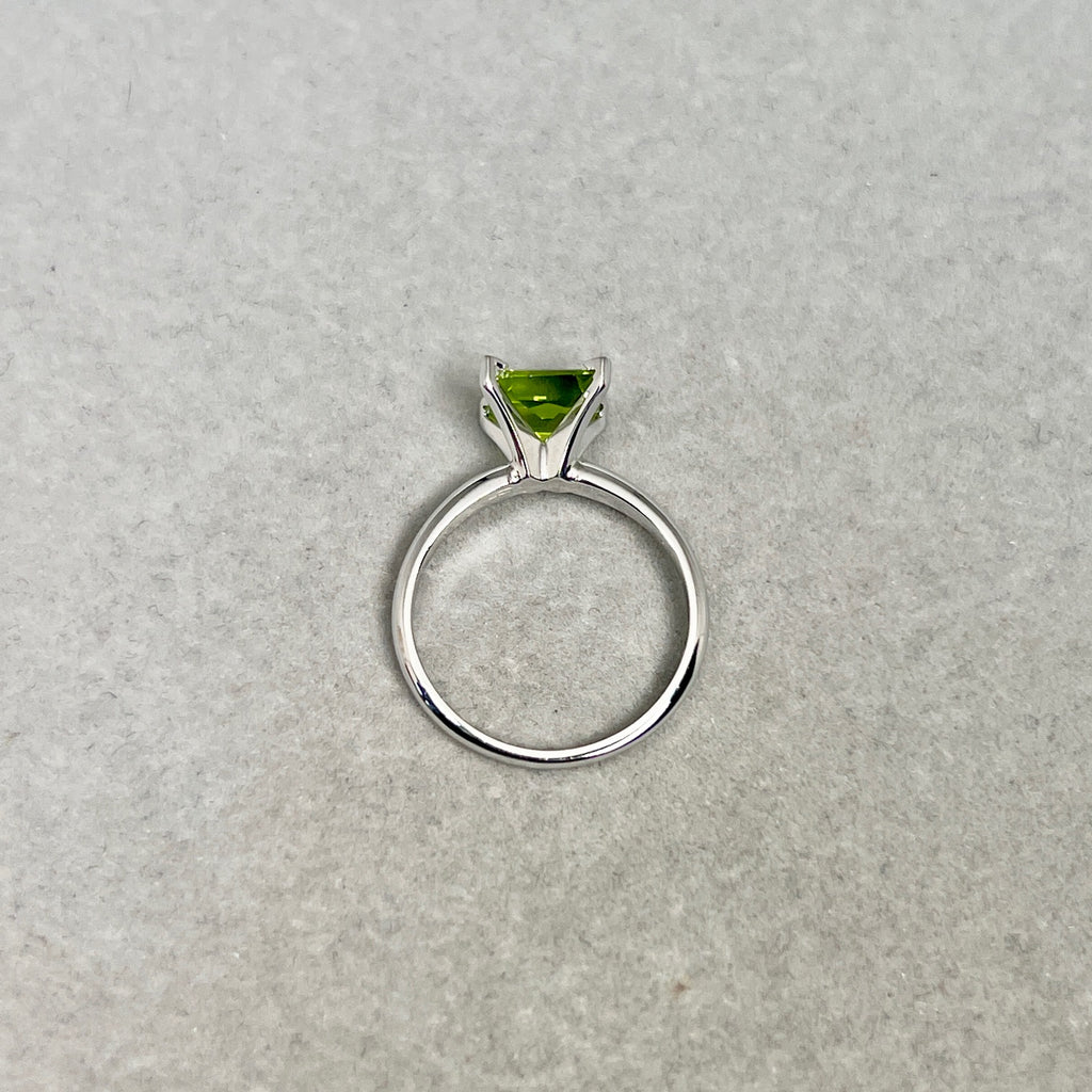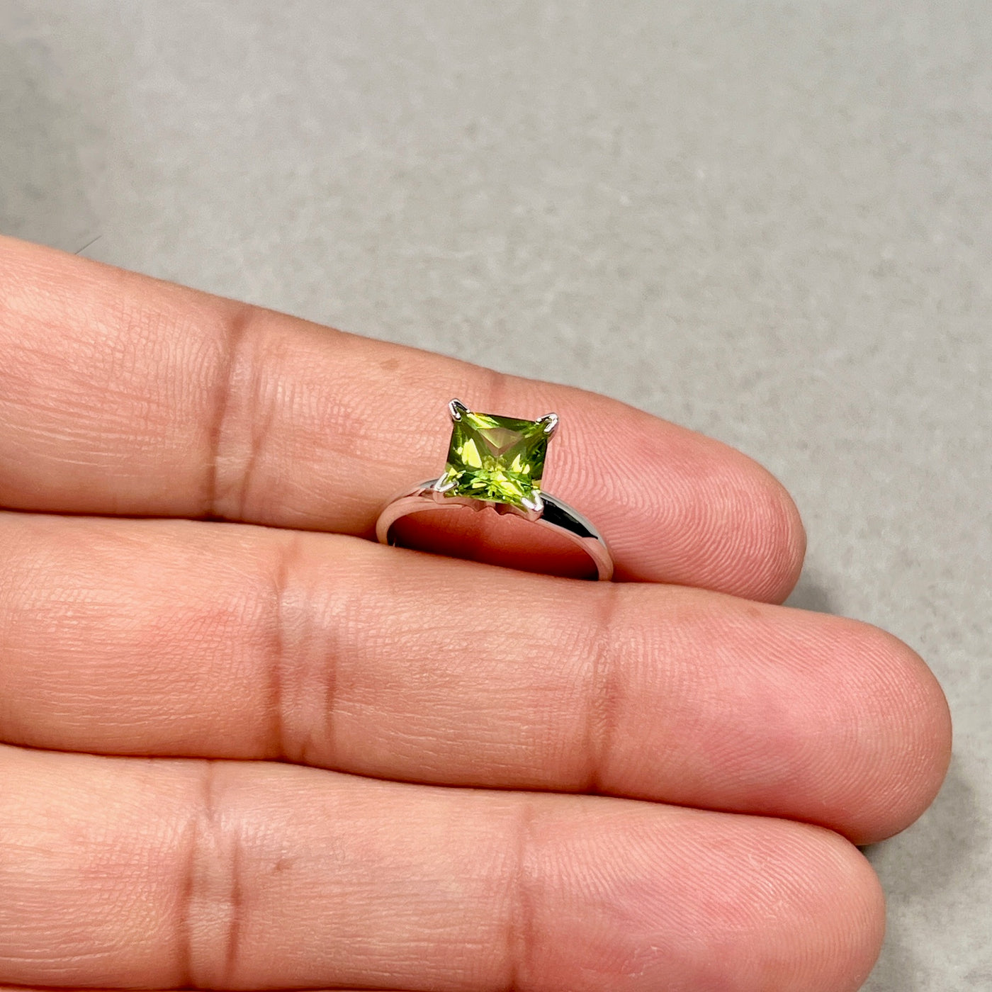 Princess Cut Peridot Ring | 14K White Gold Solitaire — August Birthstone Gift for Her