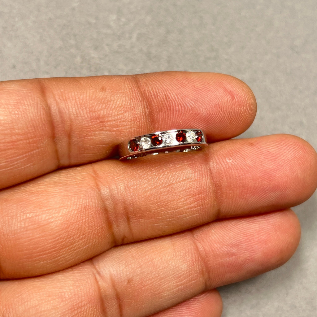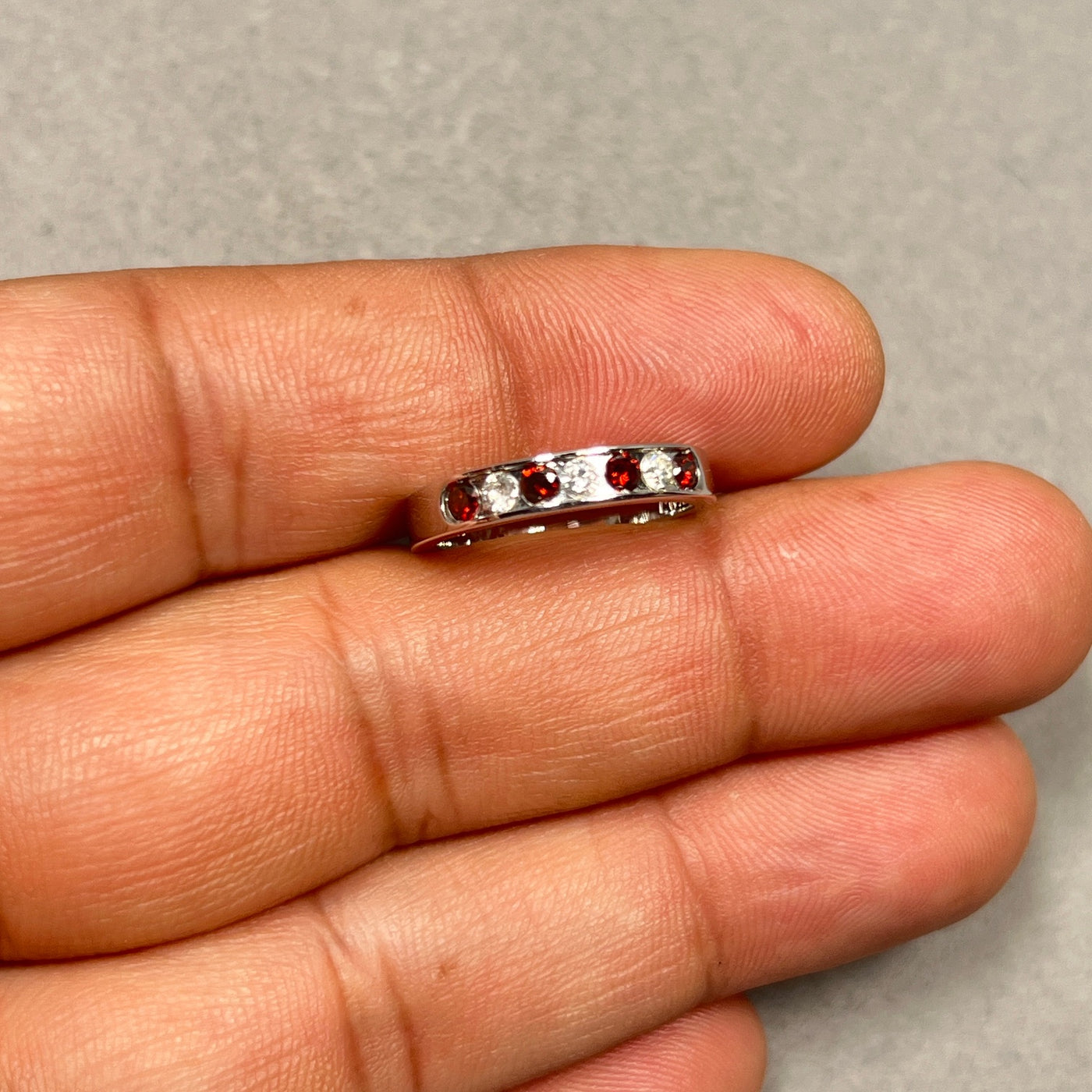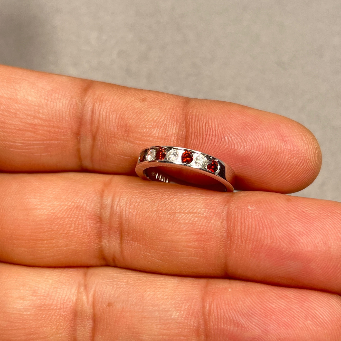 Red & White Diamond Wedding Band 14K White Gold | 0.42 ct Total | Channel Set Natural Diamonds | 3–4mm Band