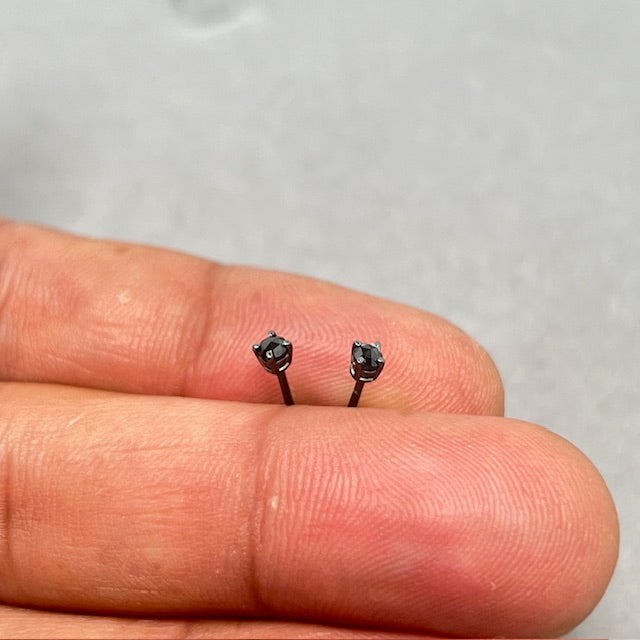 Rose Cut Black Diamond Stud Earrings in 14K Blackened White Gold for women | AA Round 2.5–3.0 mm