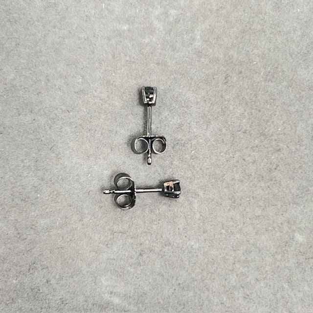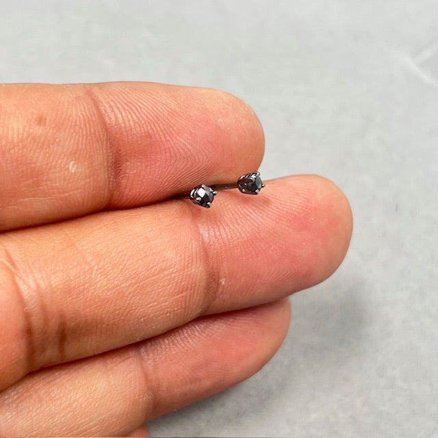 These splendid Black Diamond Stud Earrings showcase timeless elegance with a bold twist. Each earring features an AA-quality round rose cut Black Diamond, expertly set in a four-prong design. Crafted in 14K Blackened White Gold with rhodium finish, the deep black diamonds (2.50–3.00 mm, approx. 0.09–0.12 carats) radiate a striking brilliance that enhances any style. The secure push back closure ensures comfortable, all-day wear, making these studs perfect for both everyday elegance and special occasions. Their dainty yet luxurious design adds a touch of sophistication, whether worn solo or paired with other fine jewellery. A versatile and thoughtful gift choice for anniversaries, birthdays, or simply celebrating timeless beauty, these earrings are made to elevate your jewellery collection with lasting sparkle and craftsmanship.