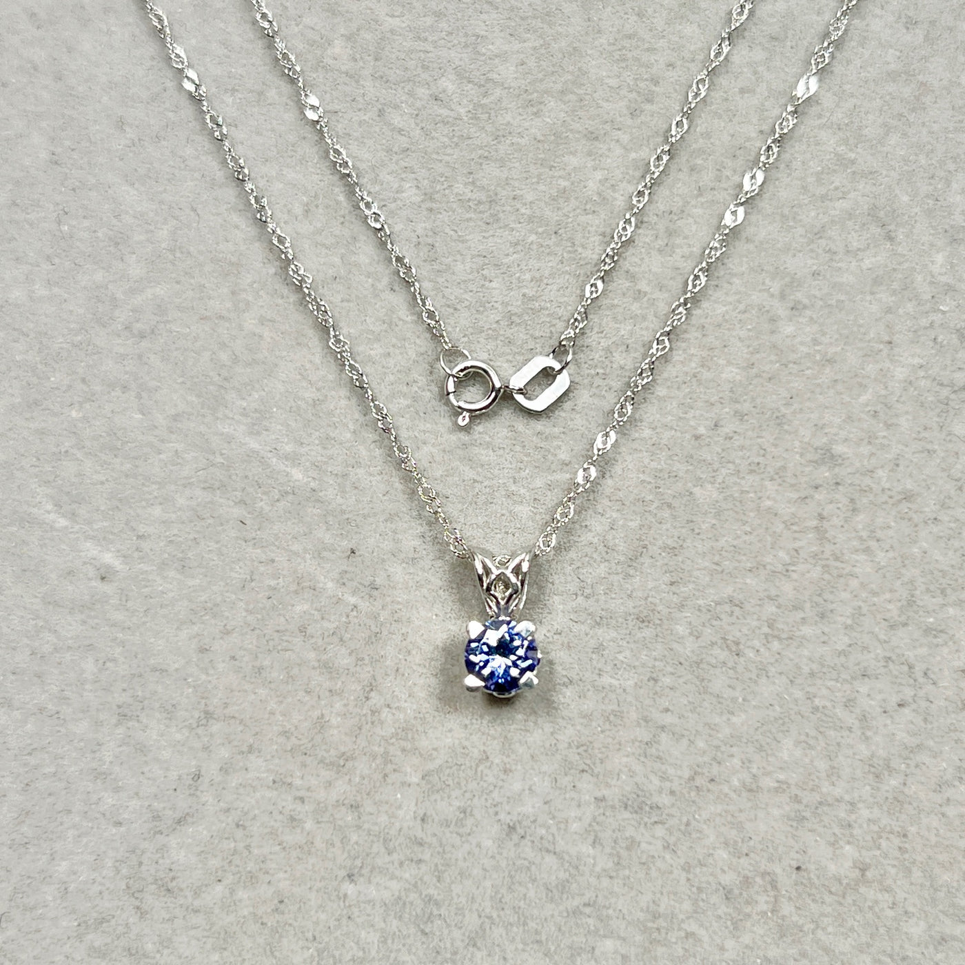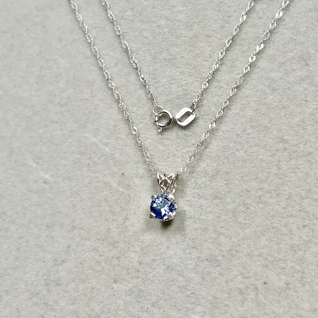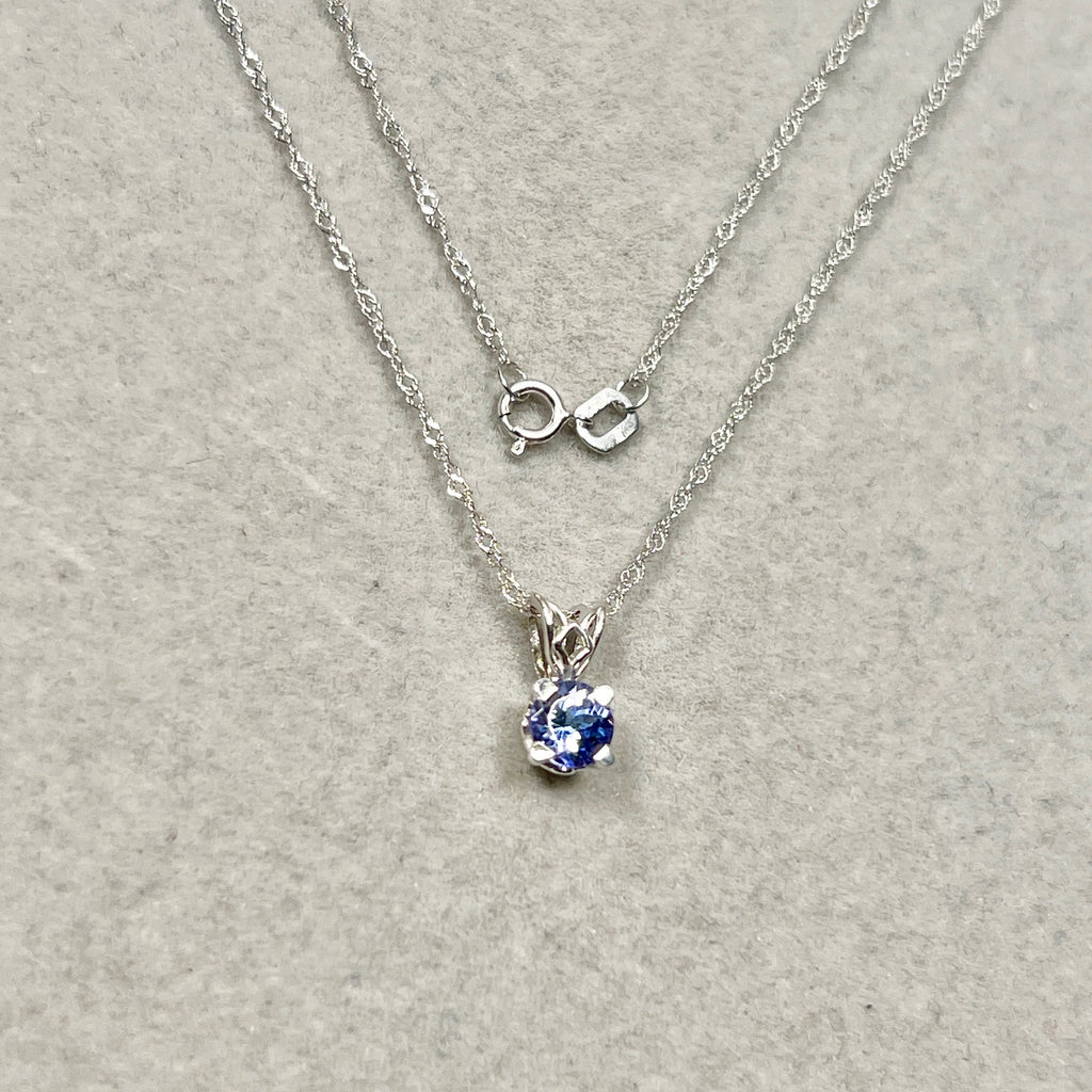 Round Tanzanite Scroll Solitaire Pendant 5mm AA | 0.46–0.61 Ct Natural Tanzanite | Platinum Pendant with 18K Chain