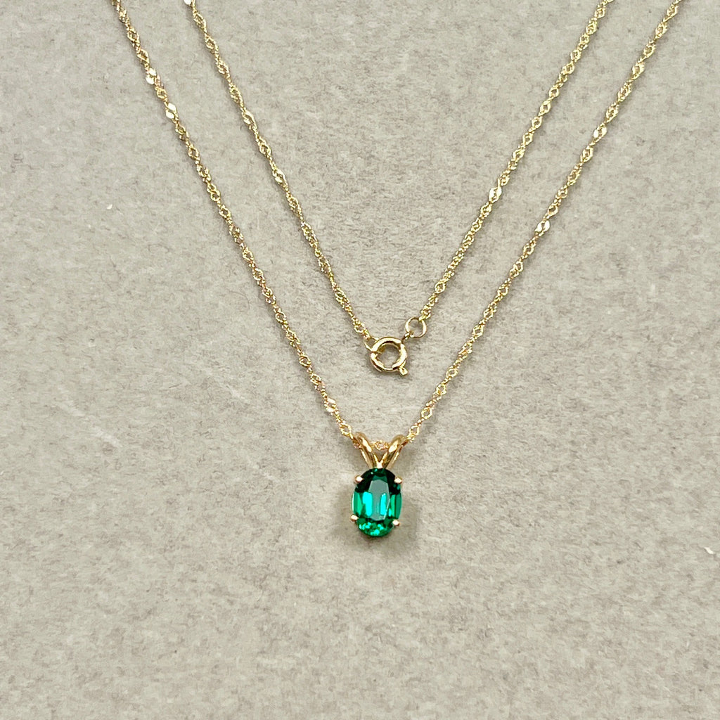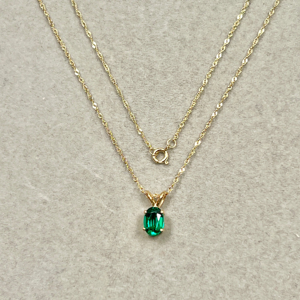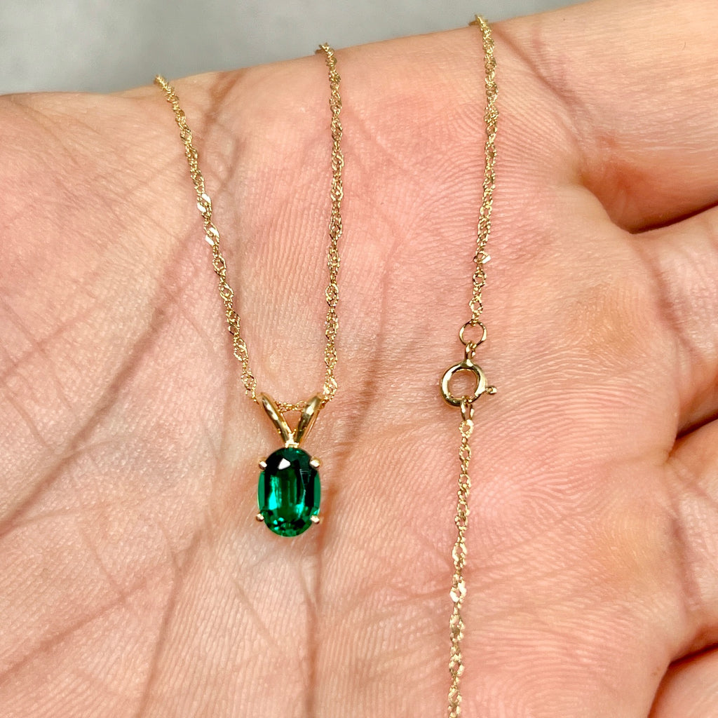 Soft-structured emerald necklace for women 0.72–0.83 Cts set in 14K yellow gold with Modern Heirloom character
