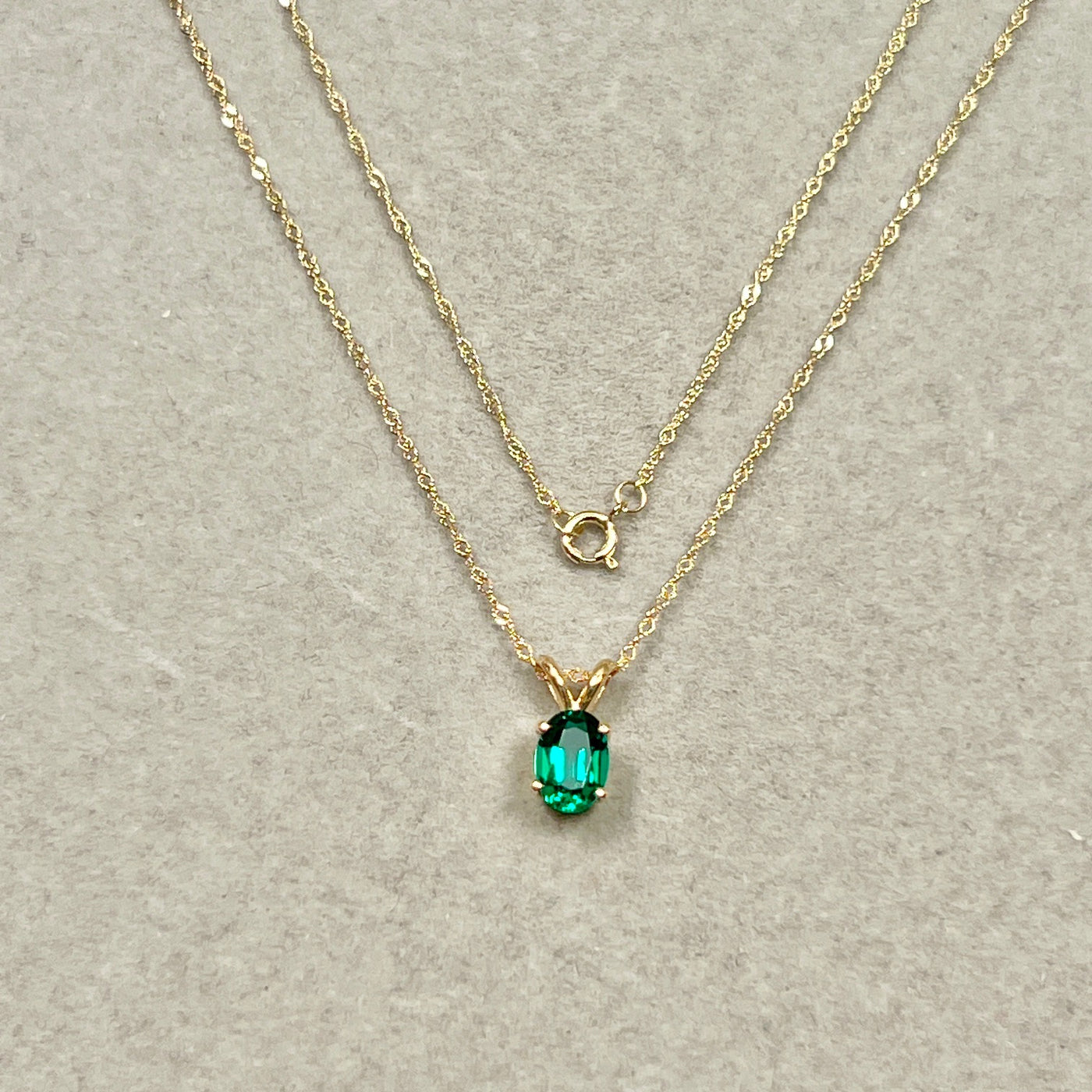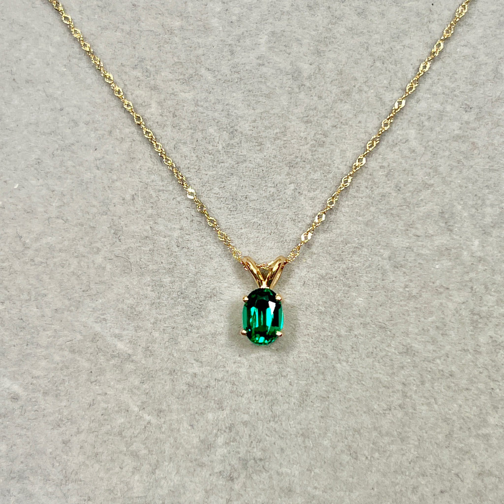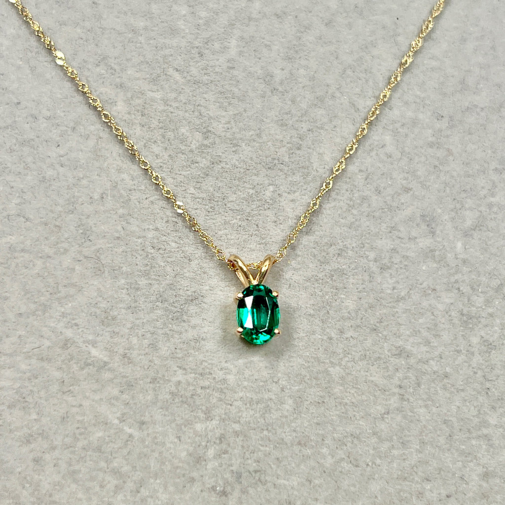 Soft-structured emerald necklace for women 0.72–0.83 Cts set in 14K yellow gold with Modern Heirloom character