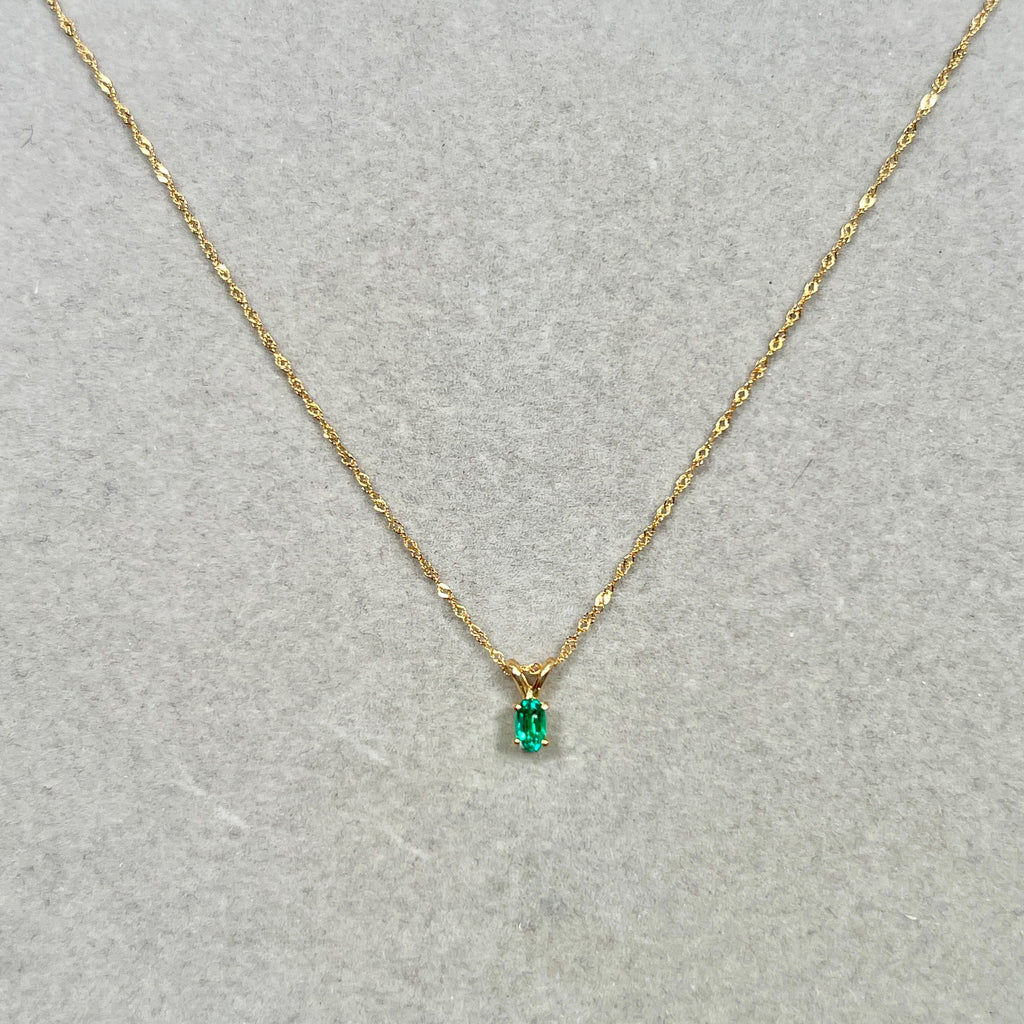Subtle green emerald pendant 0.18–0.26 Cts in 14K yellow gold with clean oval solitaire form