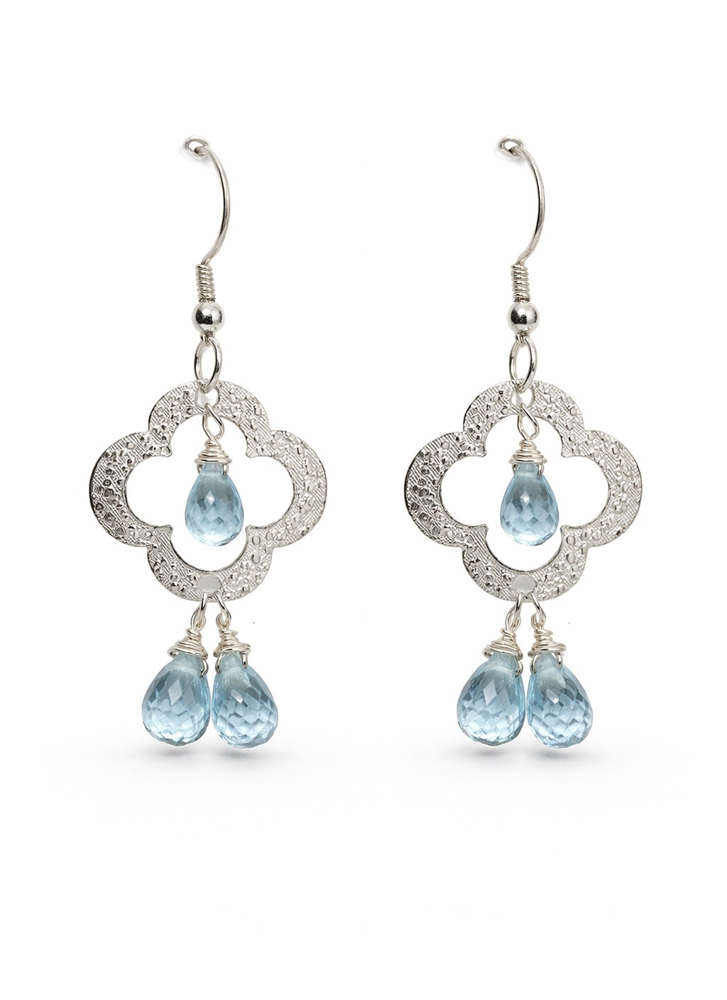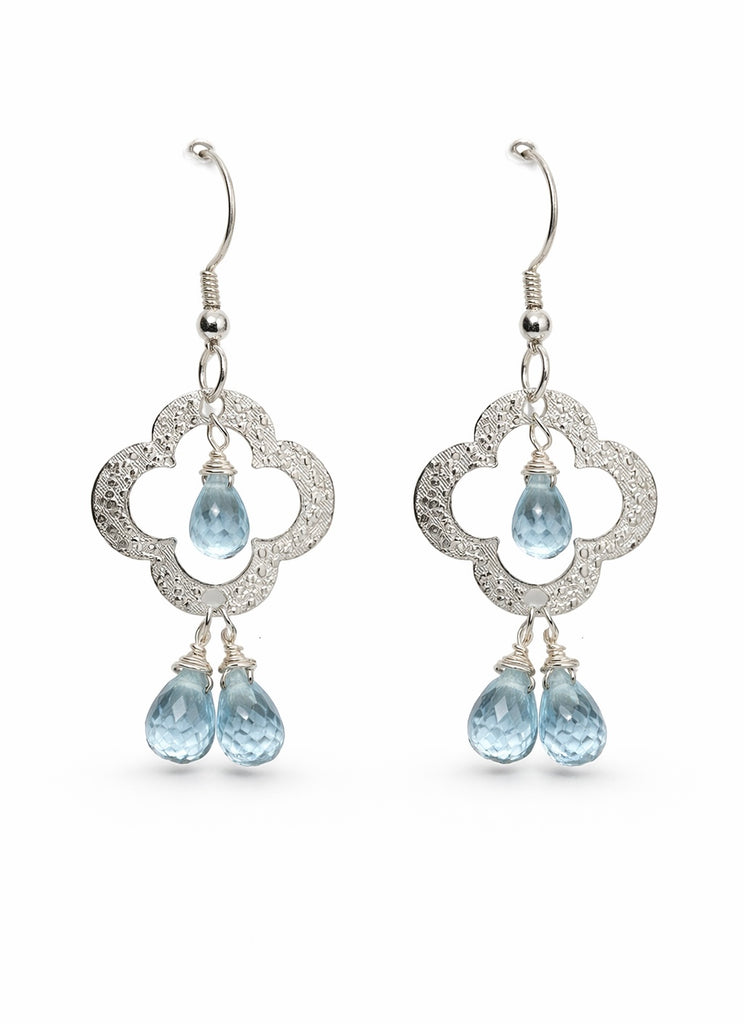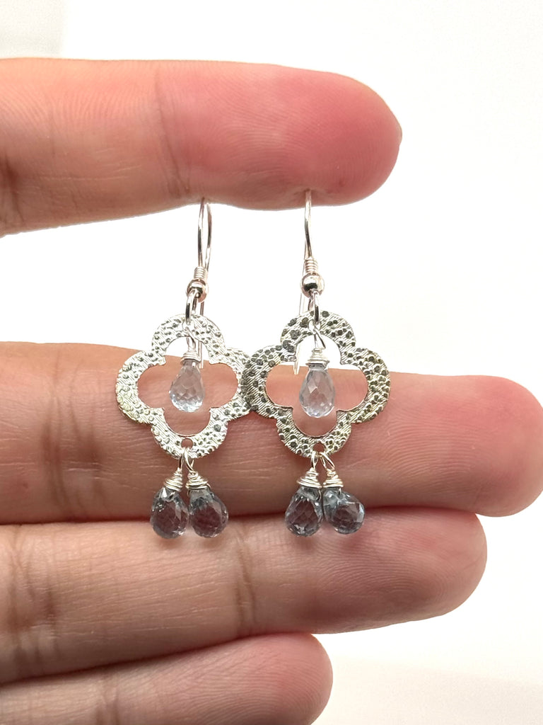 Swiss Blue Topaz Clover Dangle Earrings Sterling Silver | 3–4 Ct Briolette Topaz Earrings | Blue Gemstone Drop Earrings | Statement Jewelry