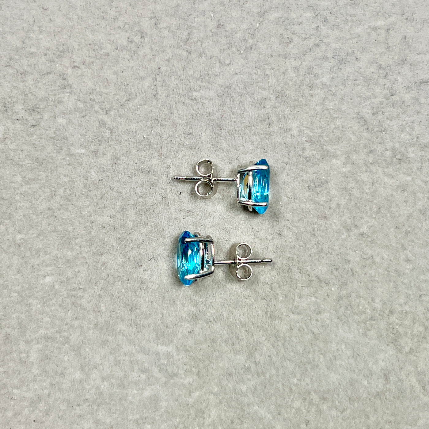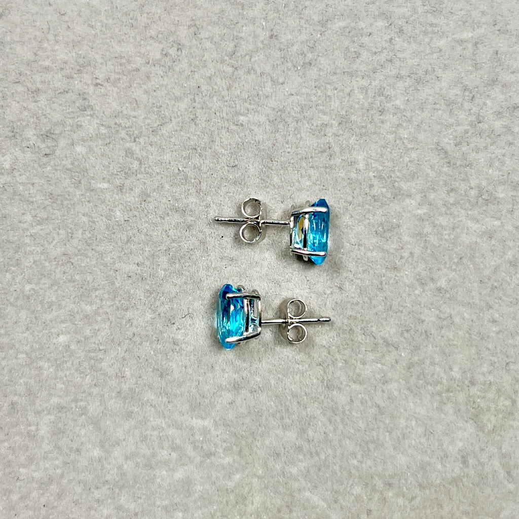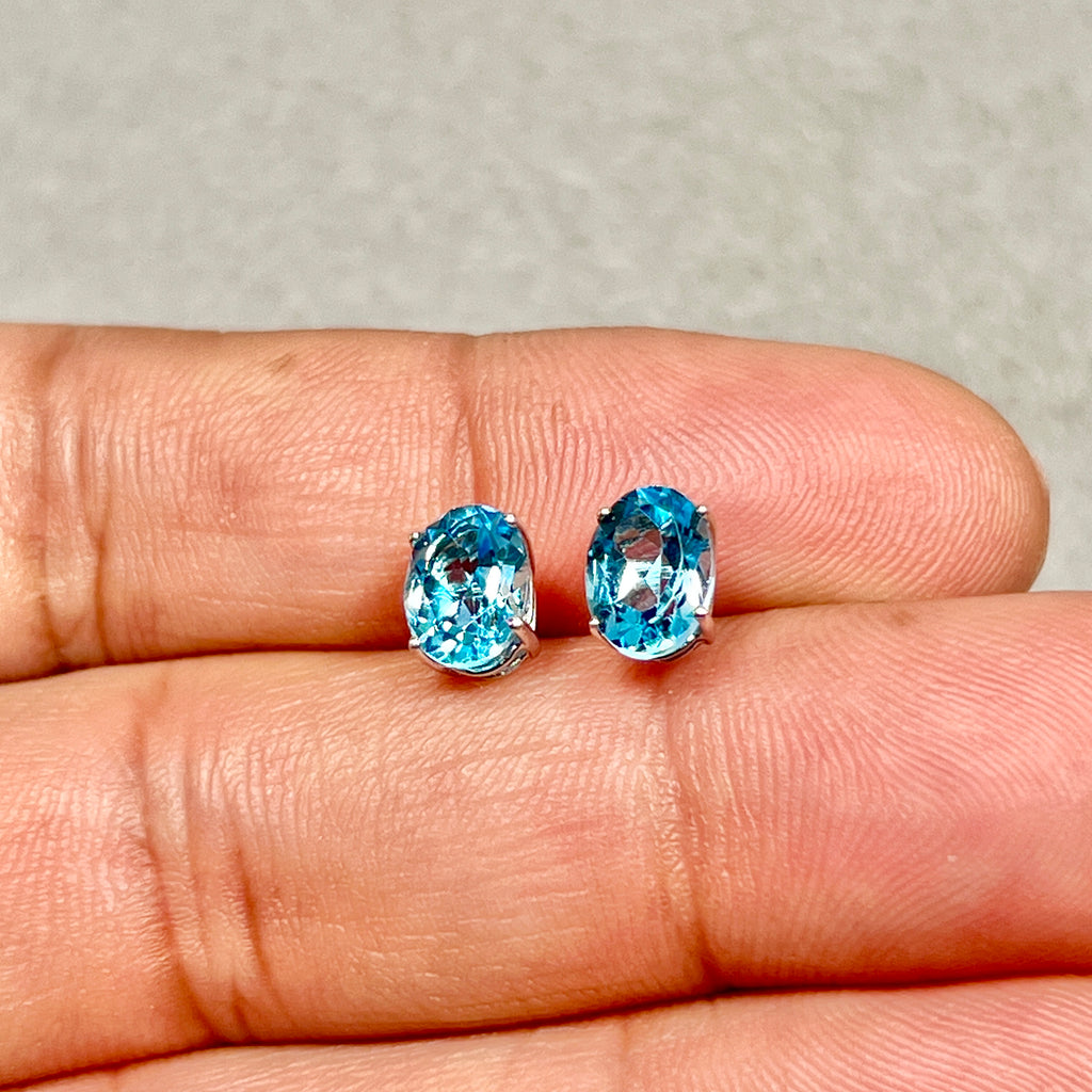 A refined pair of oval Swiss Blue Topaz studs set in cool white gold, designed for clean lines and contemporary wear.