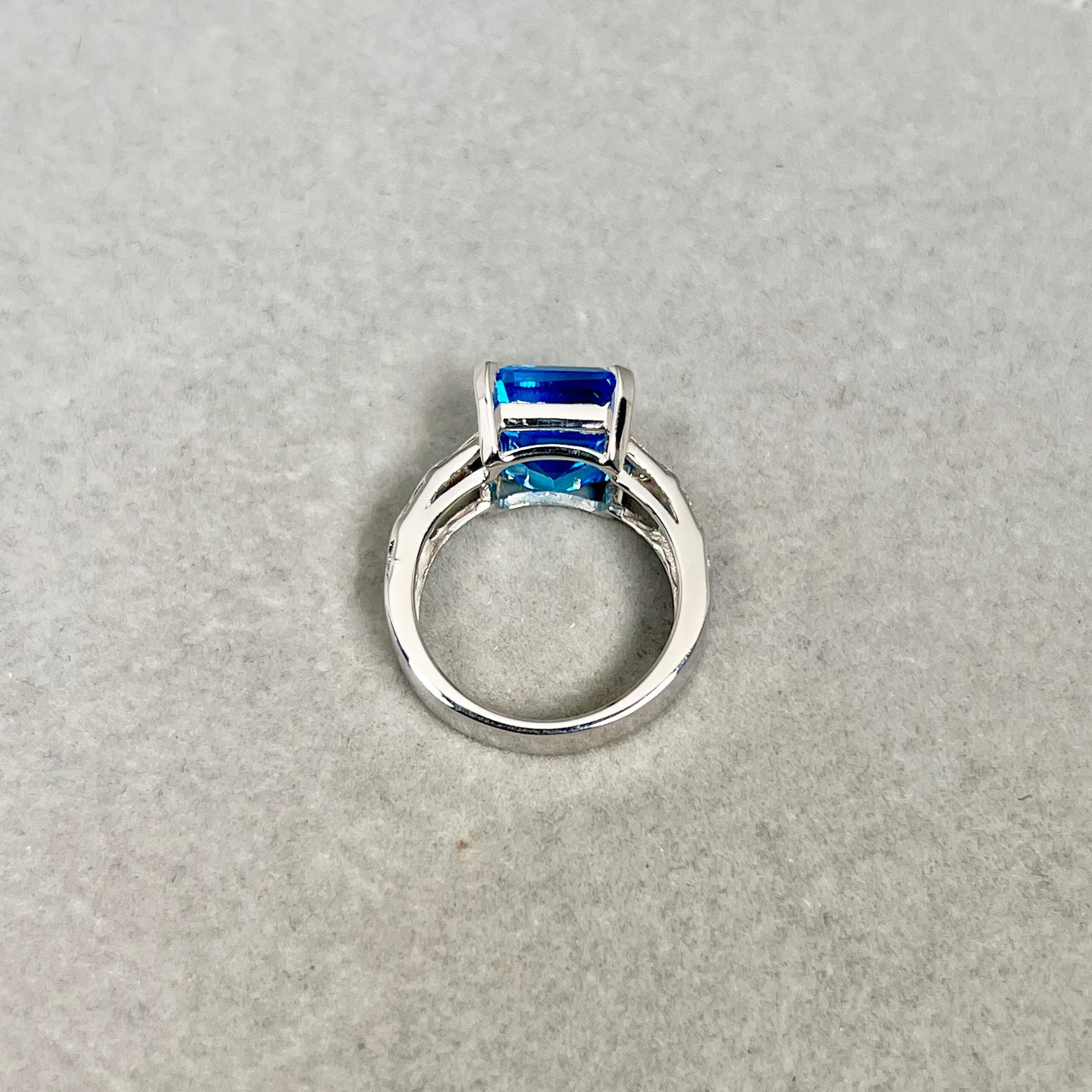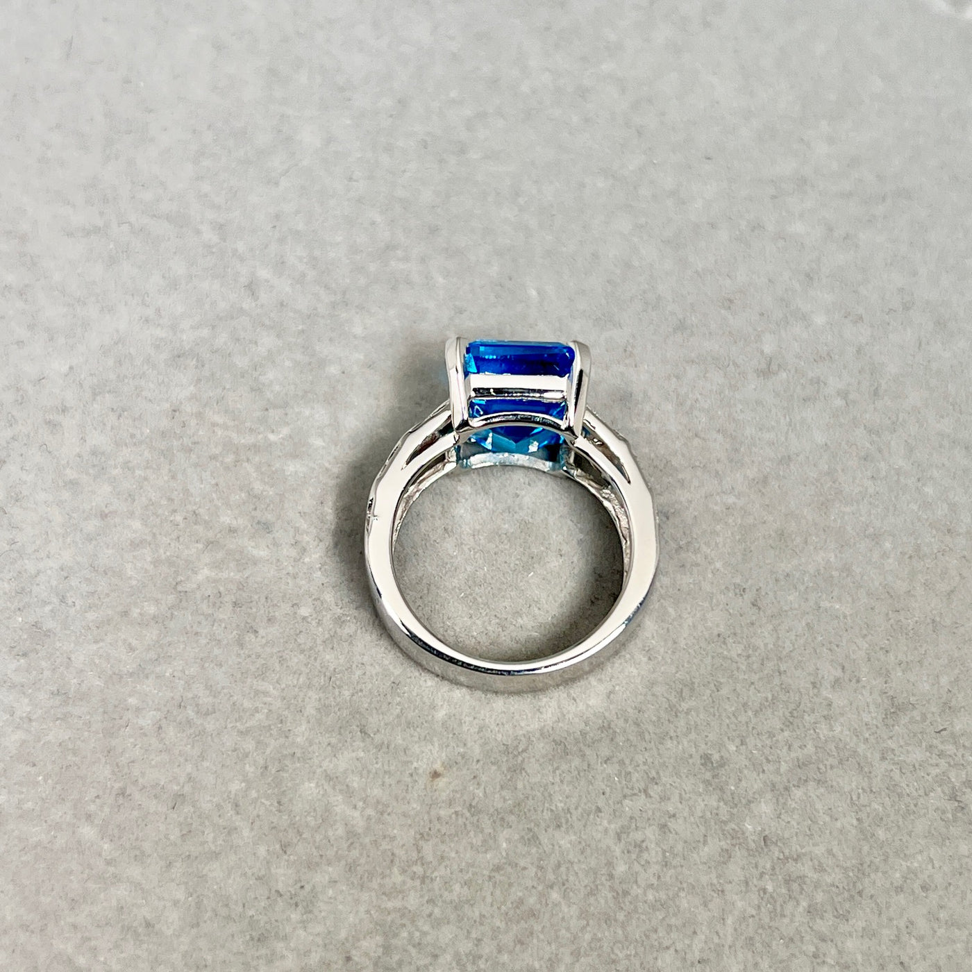 Swiss Blue Topaz Ring | 14K White Gold Emerald Cut — Statement Cocktail Jewelry Gift for Her Ring Size 7