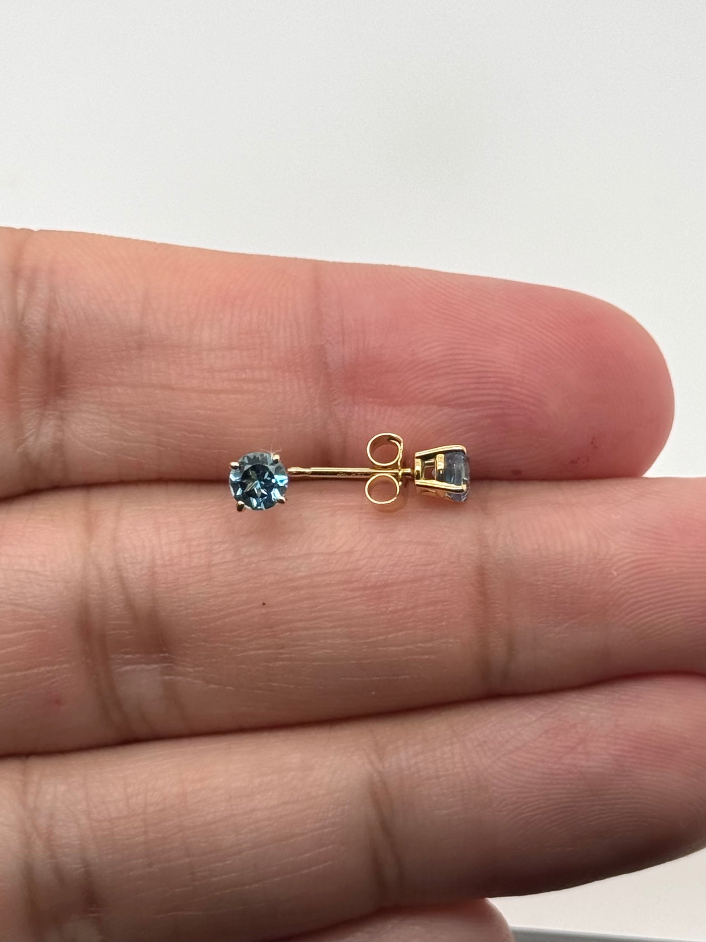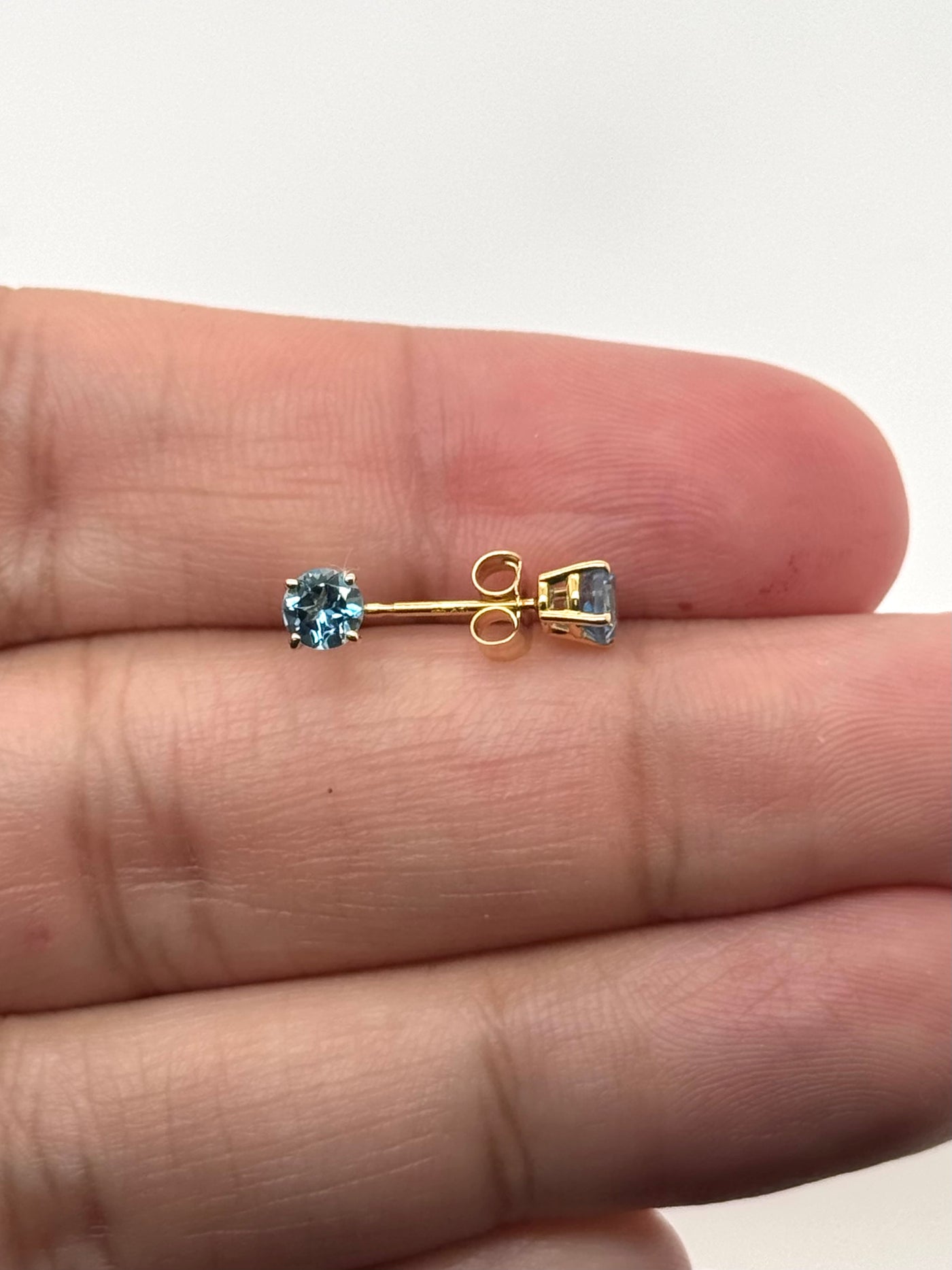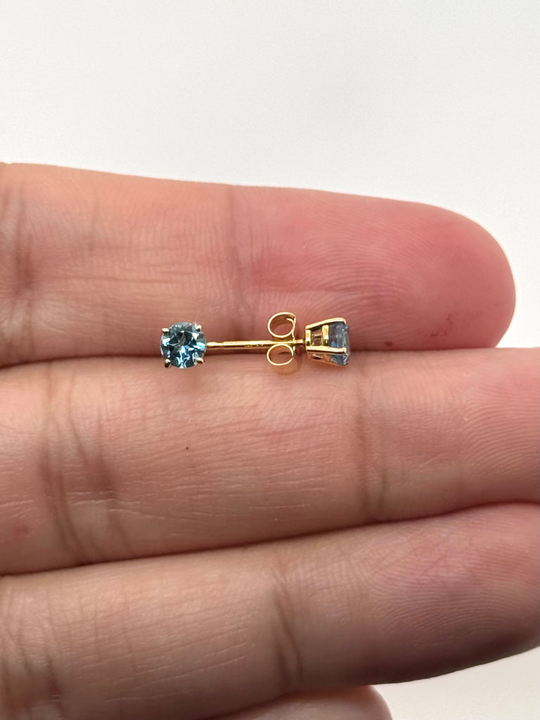 Swiss Blue Topaz Stud Earrings 14K Yellow Gold | 4mm Round Blue Topaz Earrings | AA Topaz Studs | December Birthstone | Minimalist Jewelry