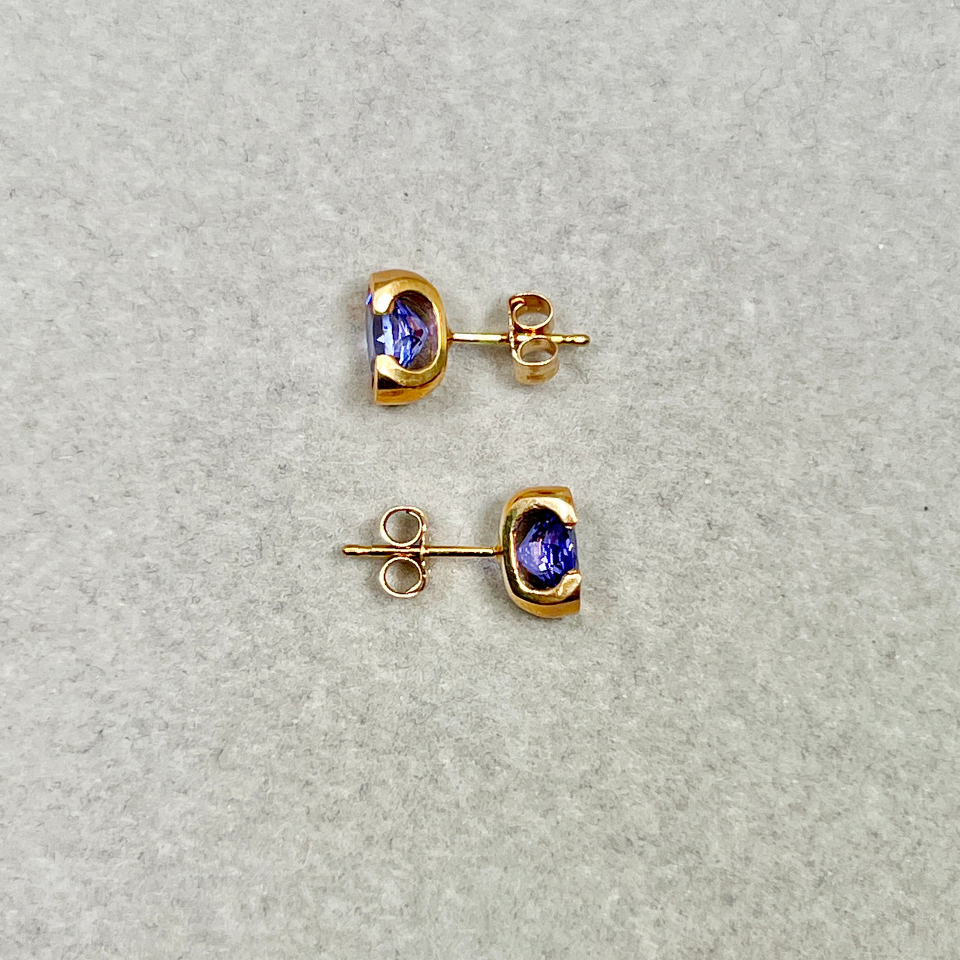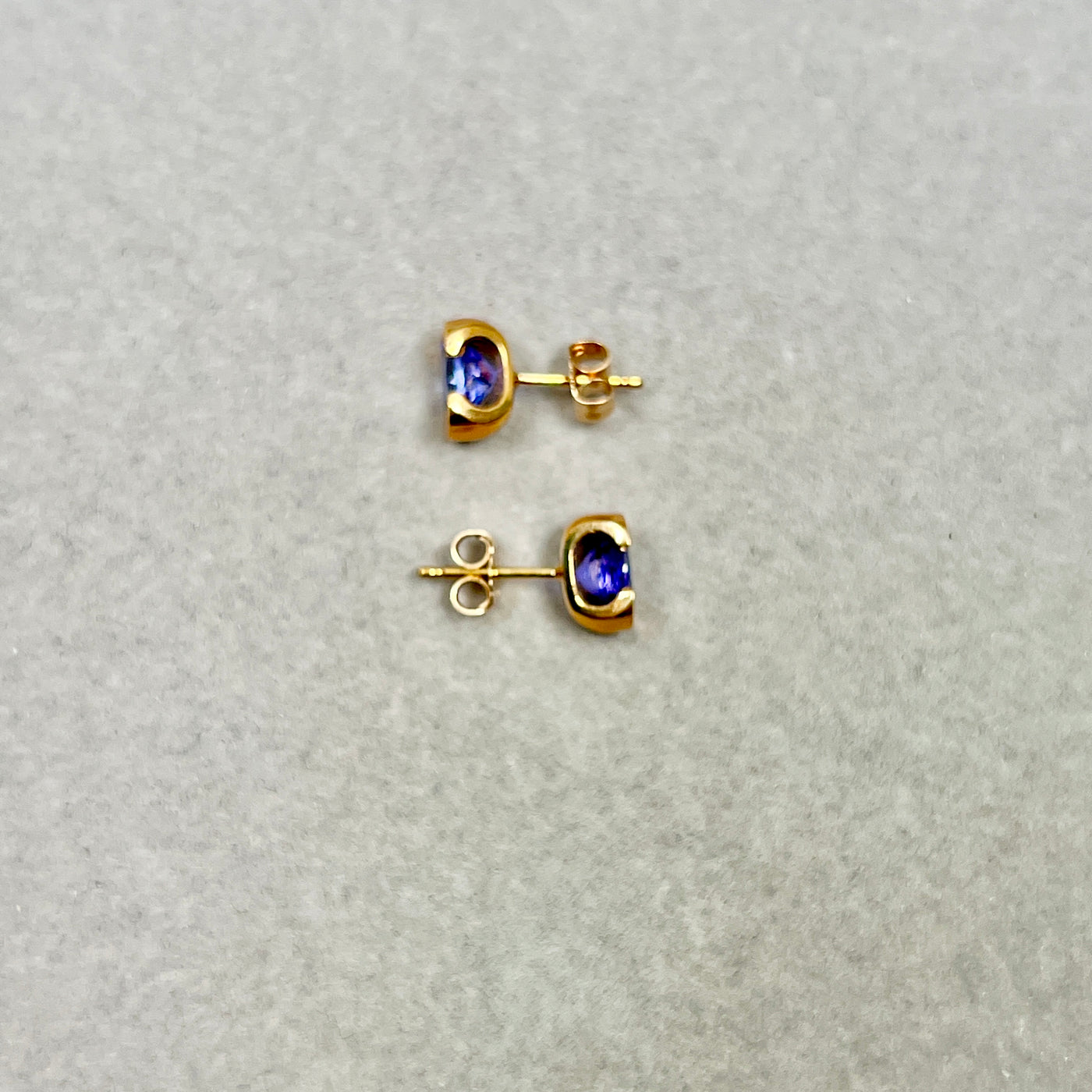 Tanzanite Stud Earrings 1.50 Ct | 14K Yellow Gold Oval Tanzanite Earrings 7x5mm | AA Quality Blue Violet Studs
