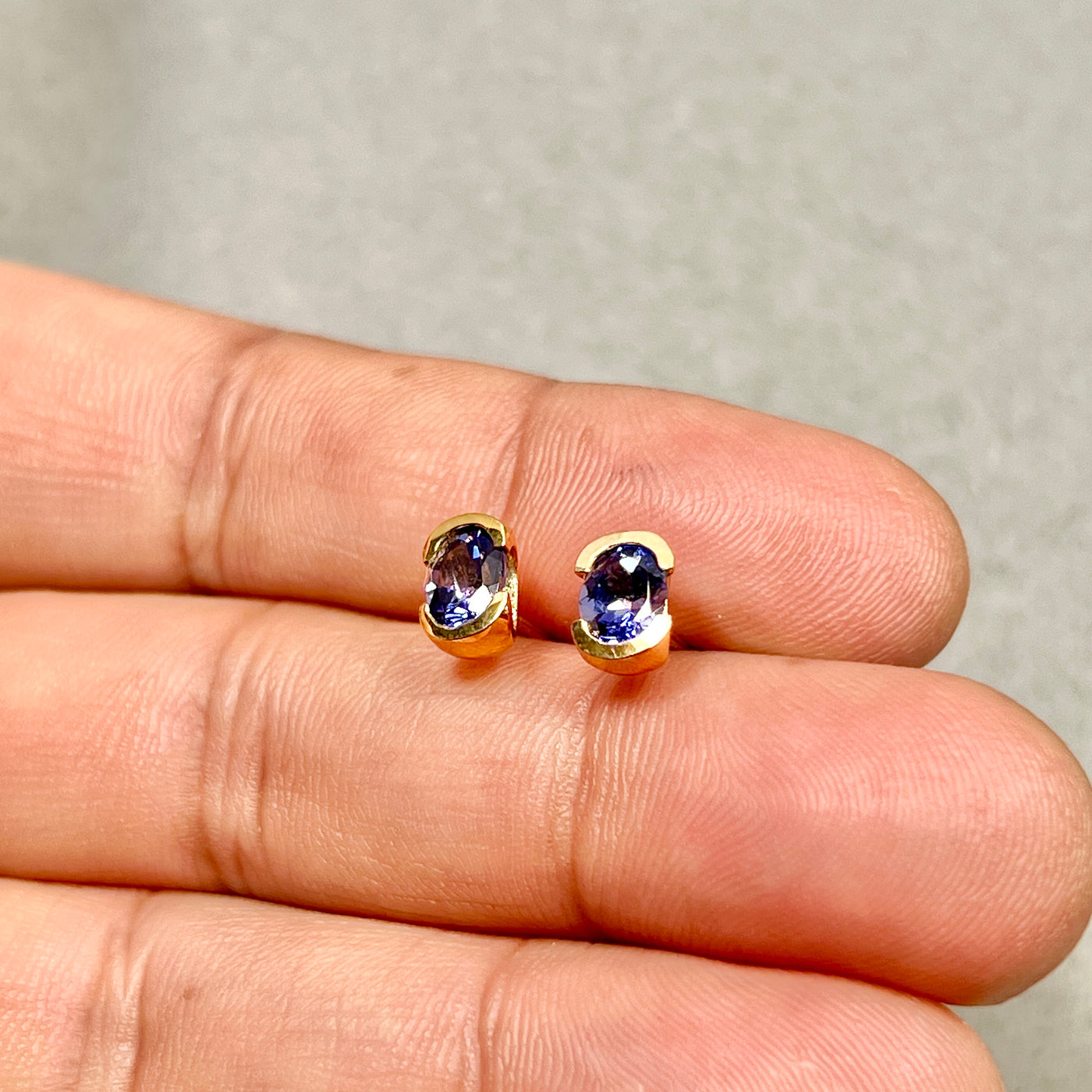 Add understated elegance to your jewelry collection with these beautiful Oval Tanzanite Stud Earrings, expertly crafted in solid 14K Yellow Gold. Each earring features an AA quality 7 Γ— 5 mm oval natural tanzanite, securely set to highlight its captivating blue-violet hue and natural brilliance.